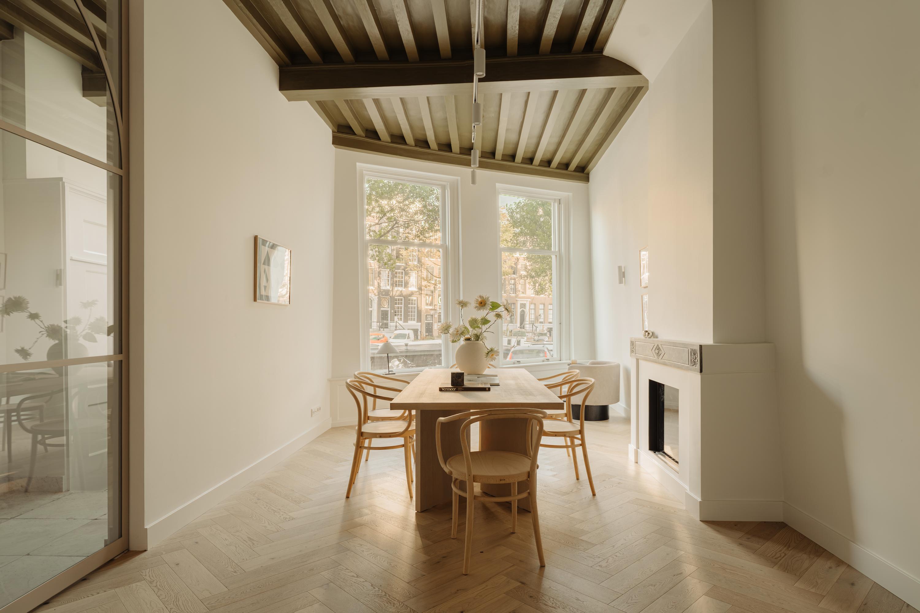 Canal House Amsterdam Singel 29 es un referente de patrimonio y refinado confort en el corazón de uno de los canales más antiguos de la ciudad. Esta propiedad ofrece aproximadamente 342 m² de superficie habitable distribuidos en cinco plantas, complementados por una casa de jardín independiente de 41 m², reflejo de la arquitectura atemporal del cinturón de canales de Ámsterdam. Minuciosamente renovada con respeto por su carácter monumental, la casa canalera presenta interiores amplios con vigas originales a la vista, techos altos y grandes ventanales que inundan de luz natural los espacios y evocan la historia del edificio.