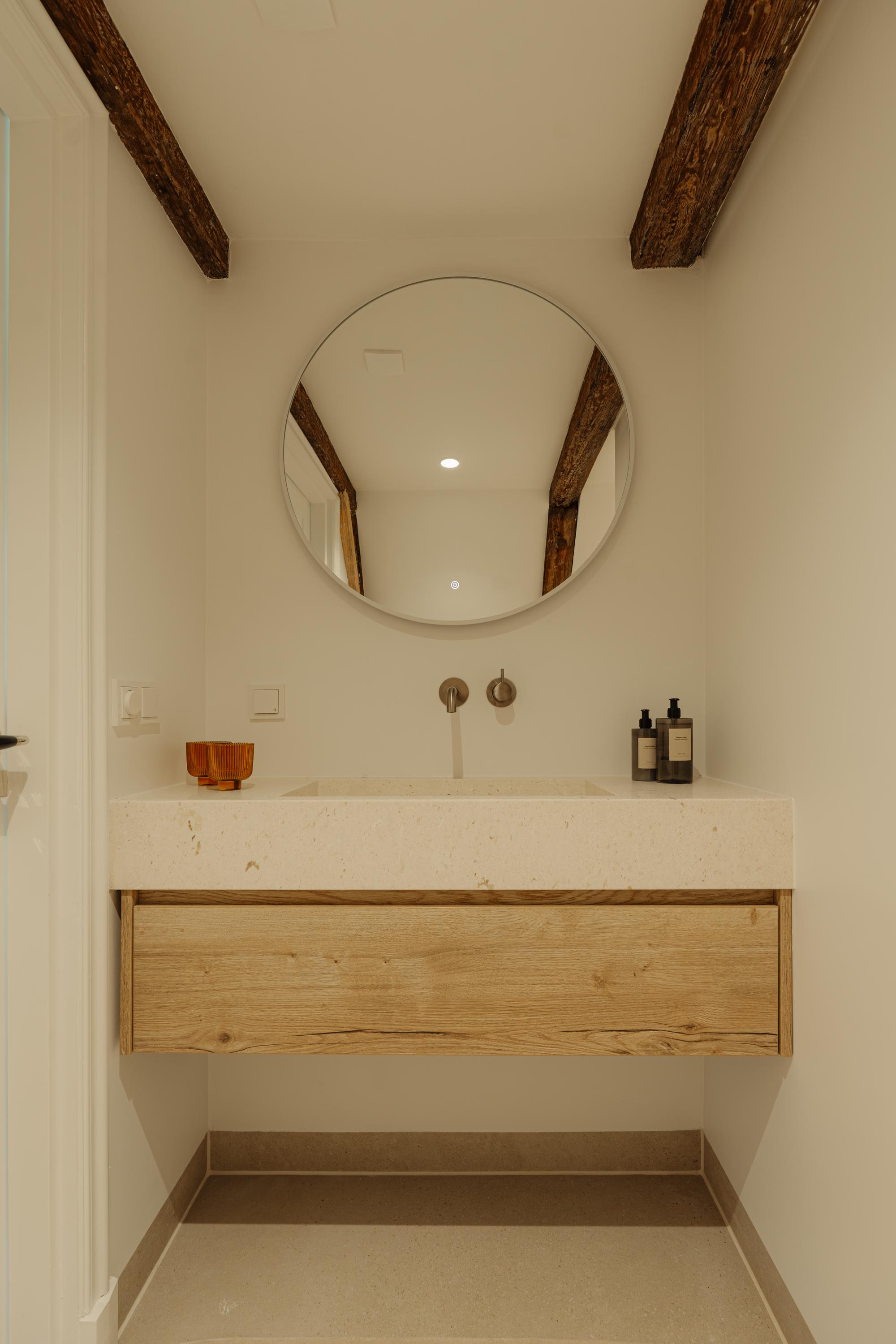El primer y segundo piso albergan una serie de dormitorios, todos acabados con materiales serenos y armarios a medida. La suite principal da al canal, incorpora un balcón francés, bañera exenta y un baño en suite elaborado en piedra natural y madera. Otros dormitorios miran a los jardines interiores, adecuados para invitados o para una distribución flexible. La tercera planta incluye dos habitaciones adicionales; la trasera permite el acceso a la azotea con vistas al skyline histórico de la ciudad.