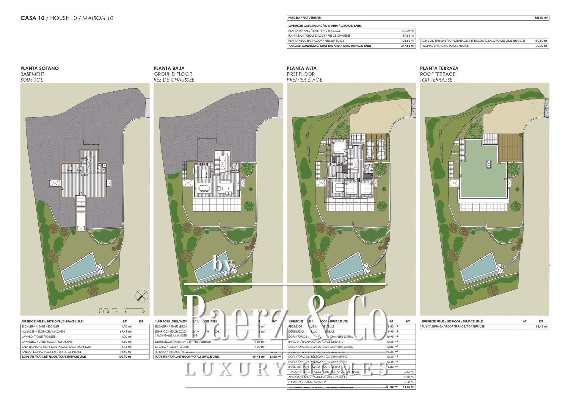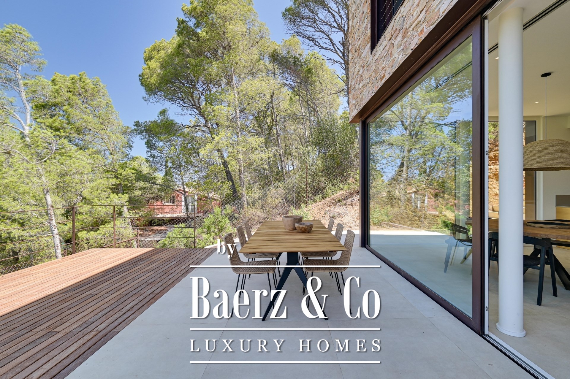 La villa ofrece 347 m² de espacio habitable en una parcela de 925 m², distribuidos en cuatro dormitorios y tres baños. Los interiores acristalados permiten la entrada de la luz mediterránea, diluyendo la frontera entre el interior y el exterior. Materiales de alta gama y acabados a medida imprimen un ritmo sereno en toda la vivienda, mientras que las terrazas, la piscina, el aparcamiento cubierto y el jardín paisajístico permiten disfrutar de la vida al aire libre en total privacidad. La seguridad está garantizada mediante un sistema de alarma y acceso vigilado. La climatización y la calefacción aseguran el máximo confort durante todo el año.