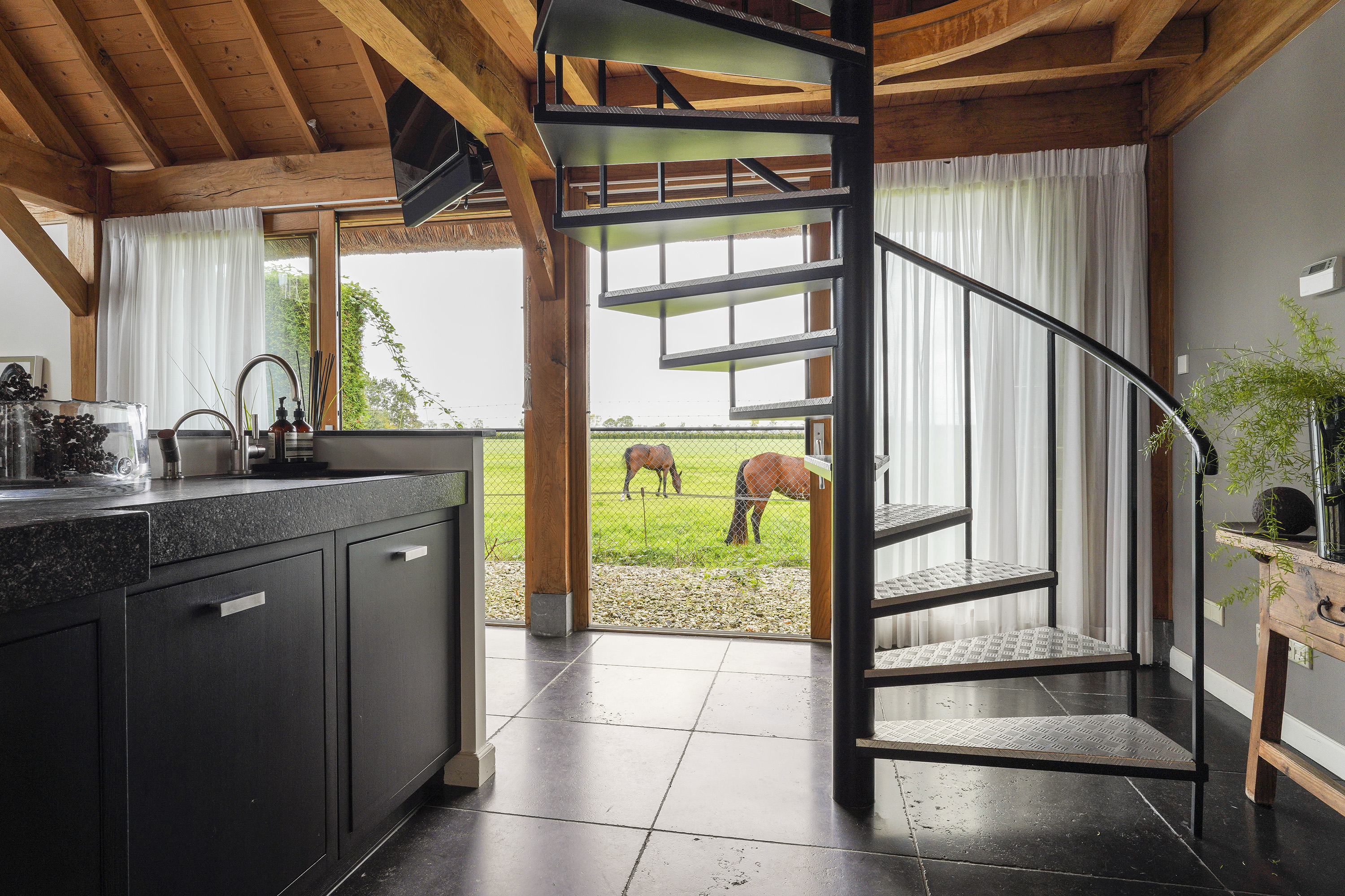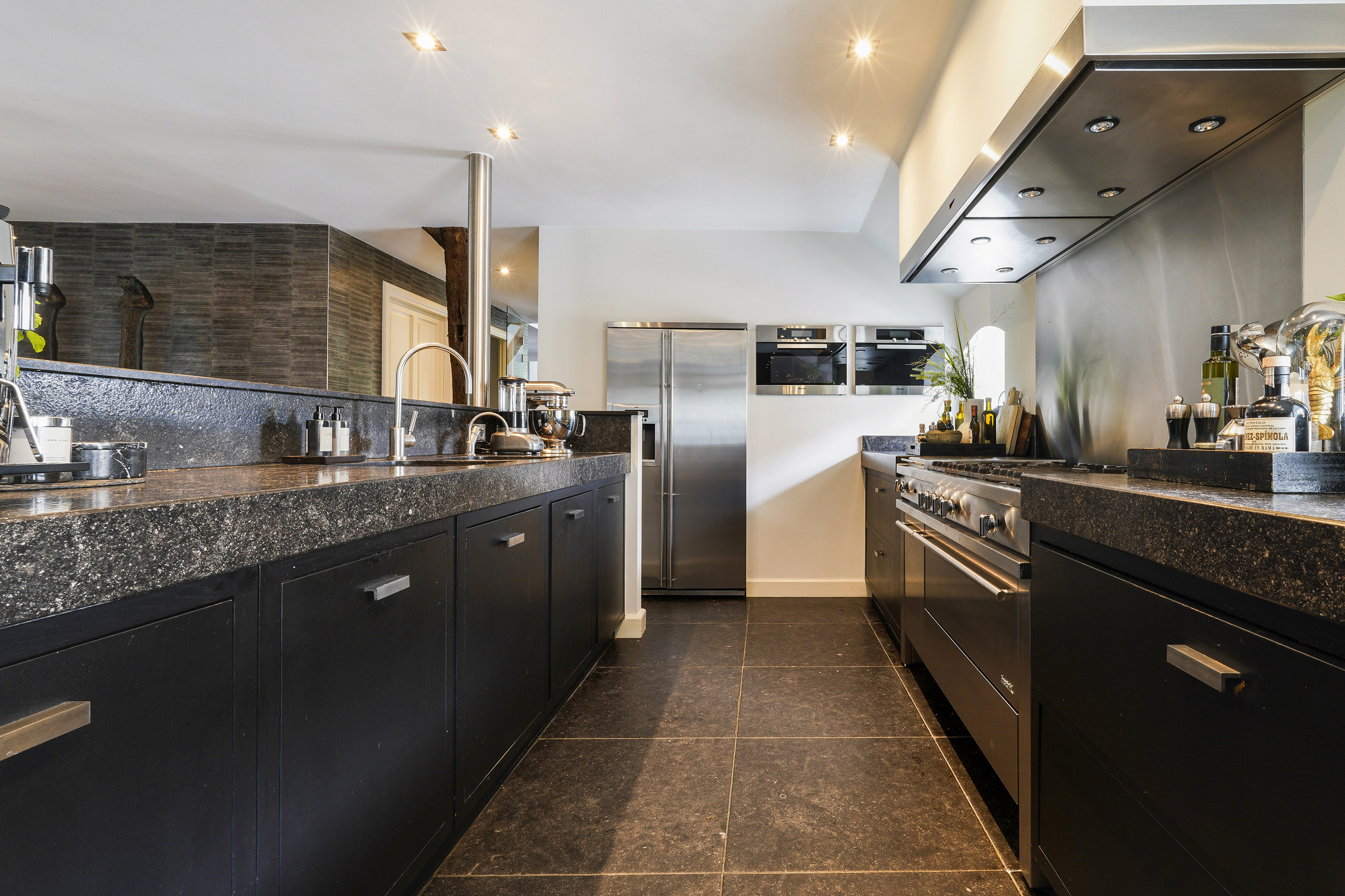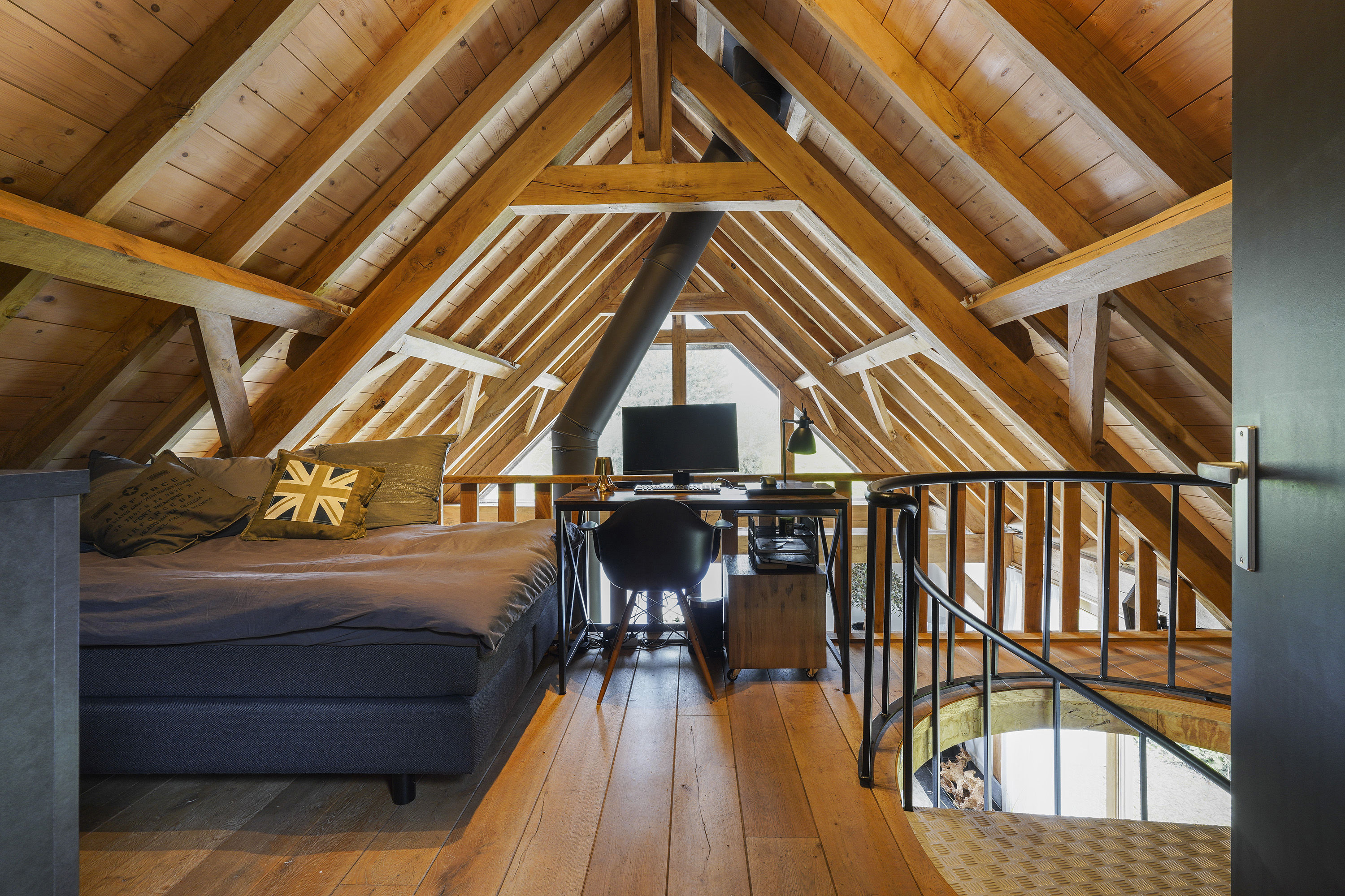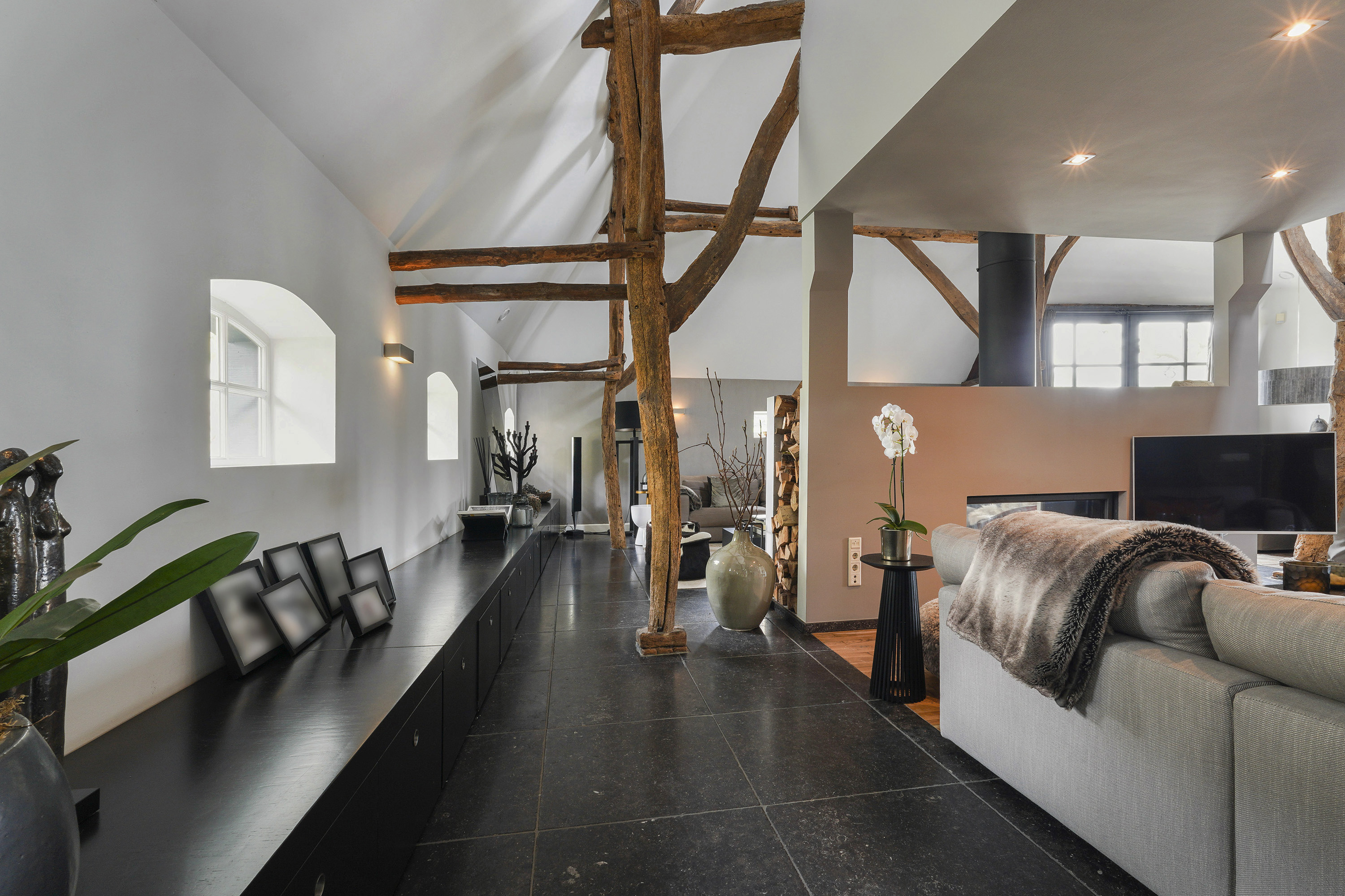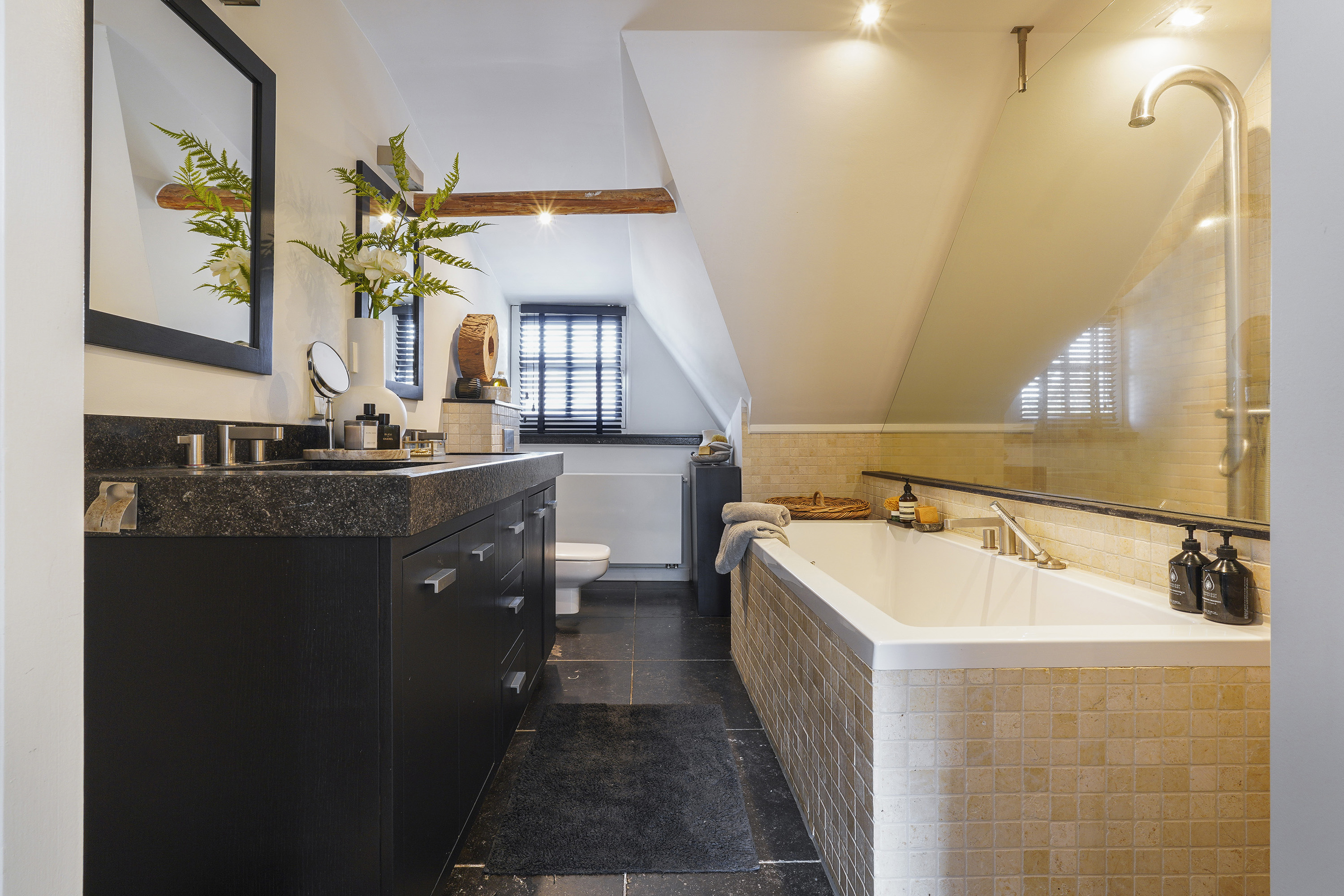 La residencia principal, de 323 m², ofrece seis dormitorios y dos baños, incluyendo una suite principal con bañera independiente y ducha a ras de suelo. Los espacios sociales se inundan de luz, realzados por suelos de roble restaurados, vigas originales y una chimenea de doble cara. La cocina, con suelo de piedra azul belga y electrodomésticos modernos, es el corazón del hogar, mientras que la sala de billar con suelo de roble y la oficina en entreplanta refuerzan el equilibrio entre relajación y productividad que ofrece la villa.