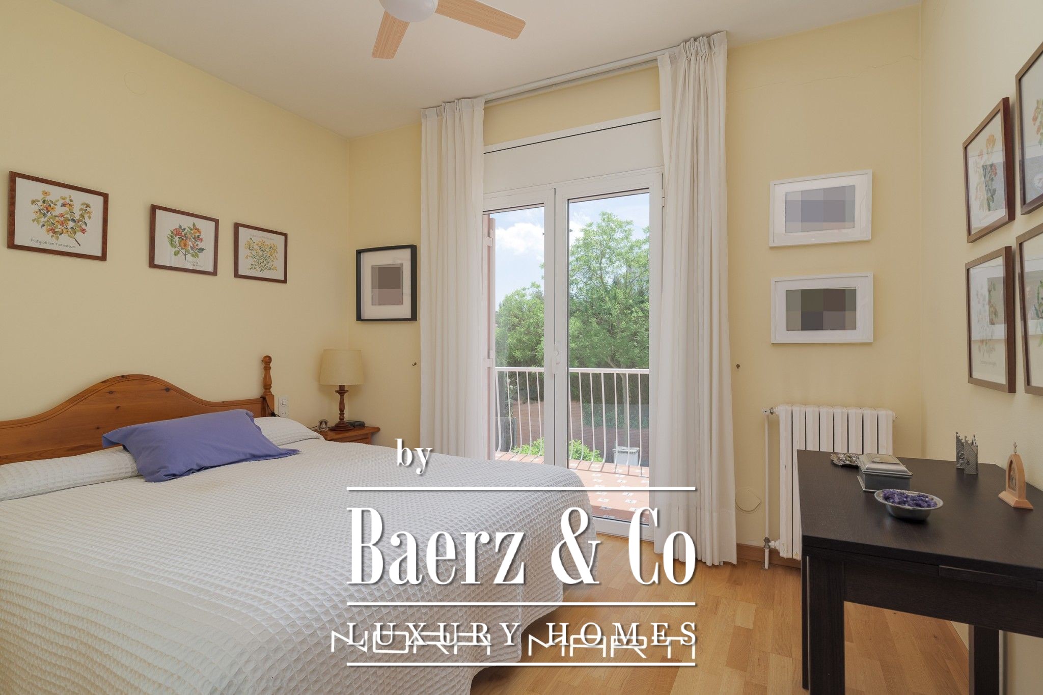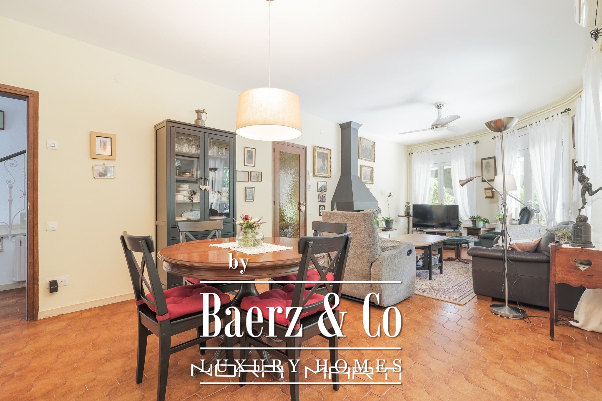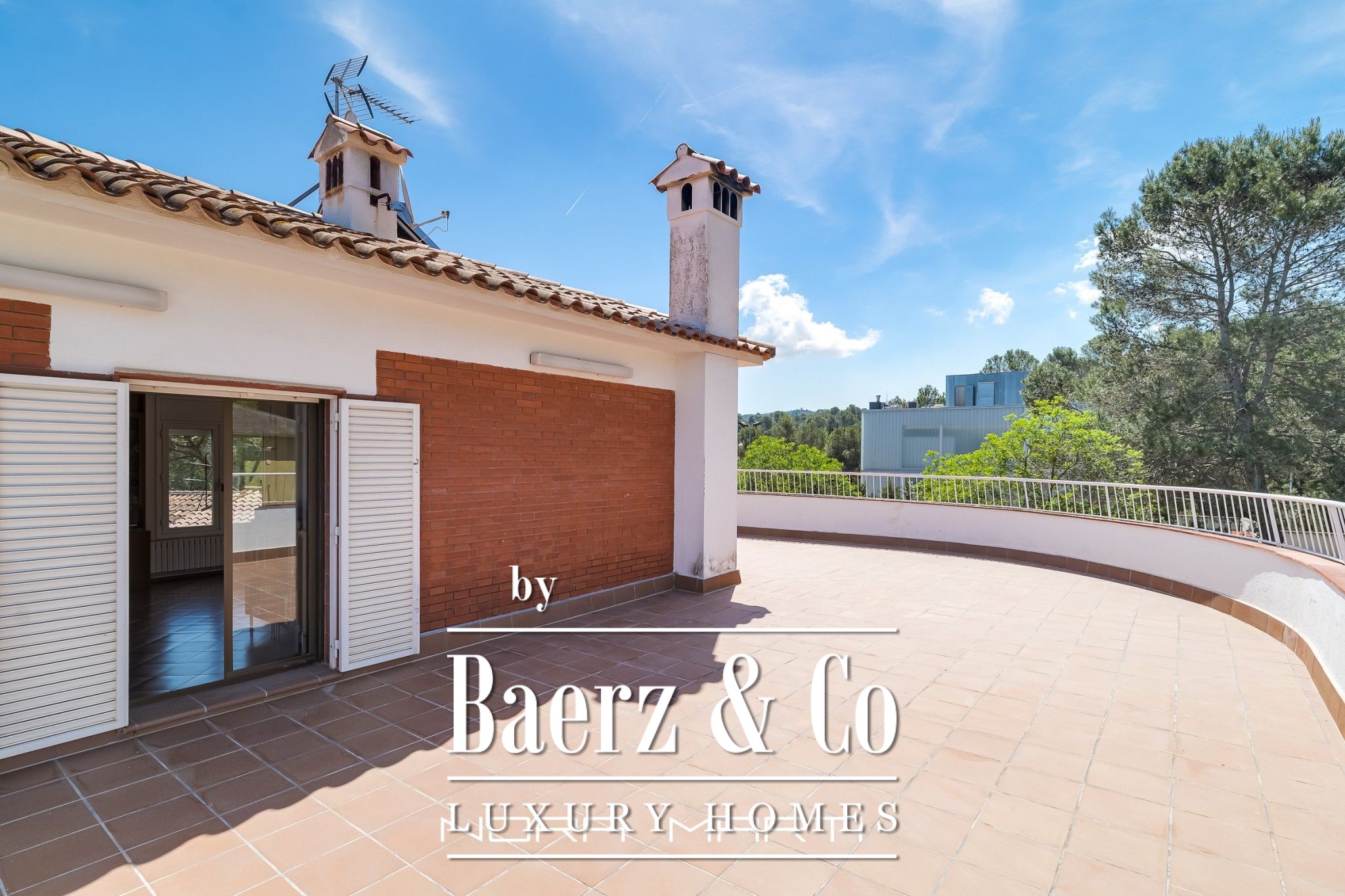 Comedor exterior, terraza que rodea la vivienda y dos accesos independientes de estacionamiento completan la comodidad y privacidad. Situada en una zona tranquila y bien comunicada, esta casa en Sant Cugat ofrece un entorno sereno para la vida familiar y social.