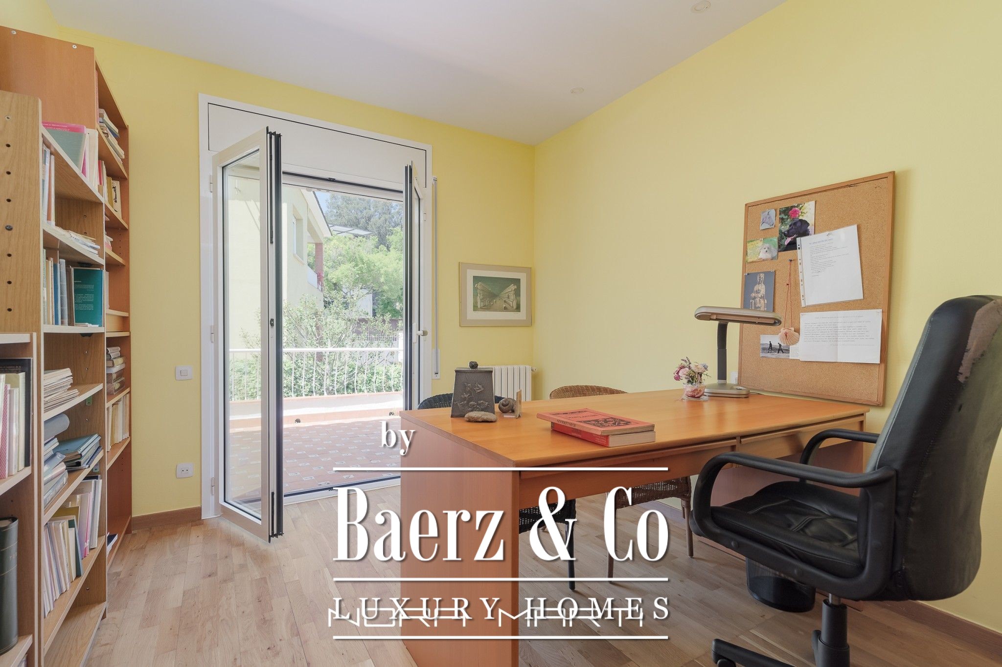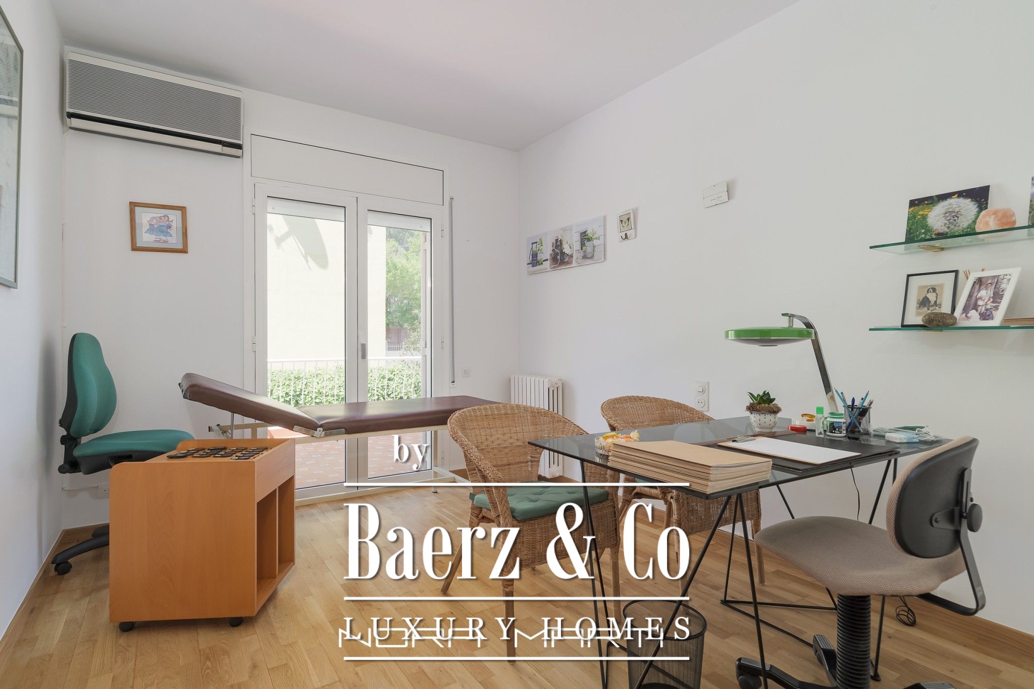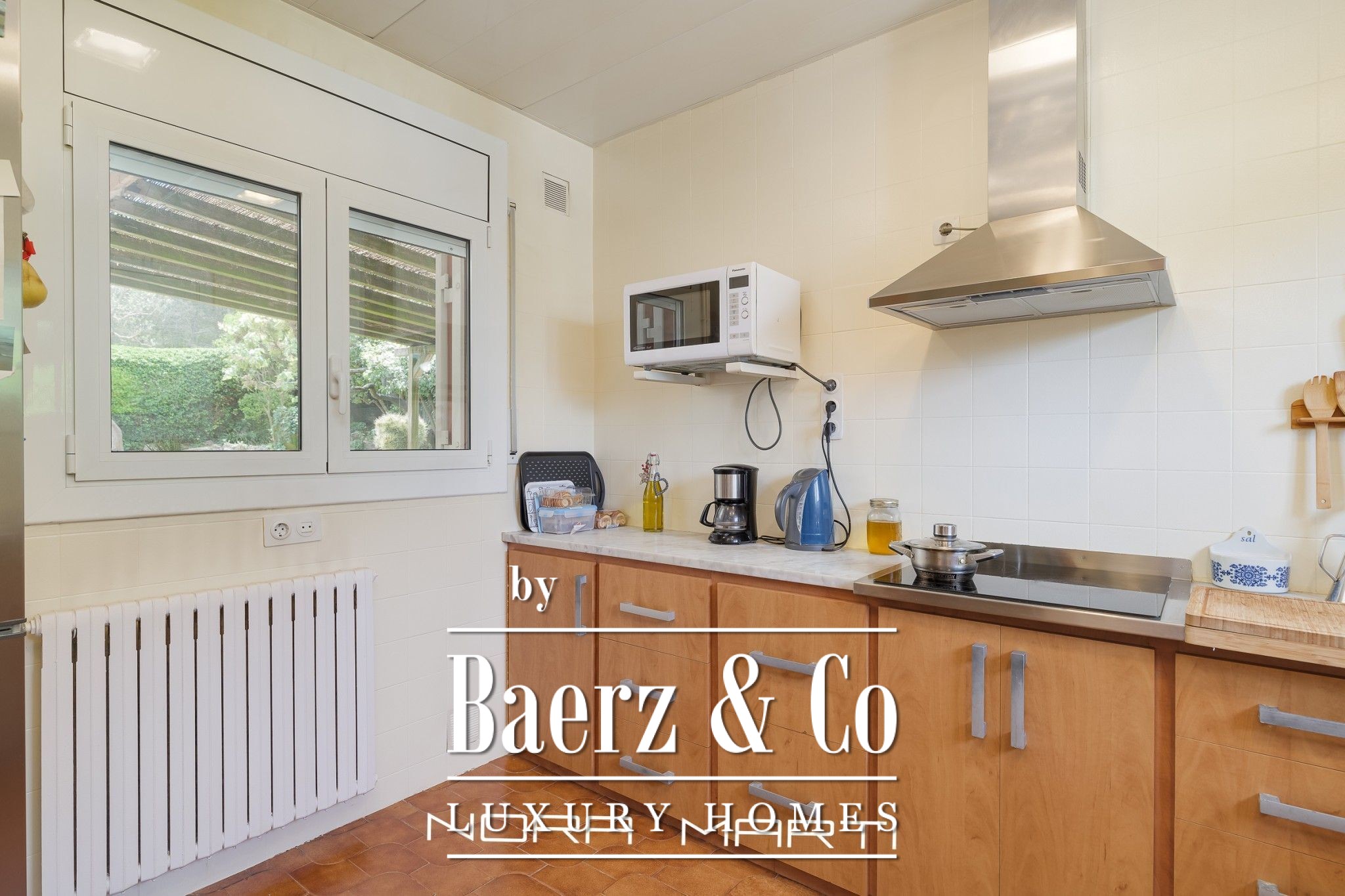 Esta casa en Sant Cugat ofrece 375 m² de espacio cuidadosamente distribuido en una parcela de 620 m², ubicada a pocos minutos a pie de la estación de Valldoreix. La propiedad equilibra un diseño refinado con privacidad, presentando una fachada en forma de vela que se abre al sol y al jardín ajardinado con piscina. La planta baja de 120 m² incluye un garaje de 40 m² con acceso directo al recibidor, que conduce a un generoso salón-comedor, una cocina pensada para el día a día, una práctica zona de lavandería y planchado, un despacho independiente y un baño completo.