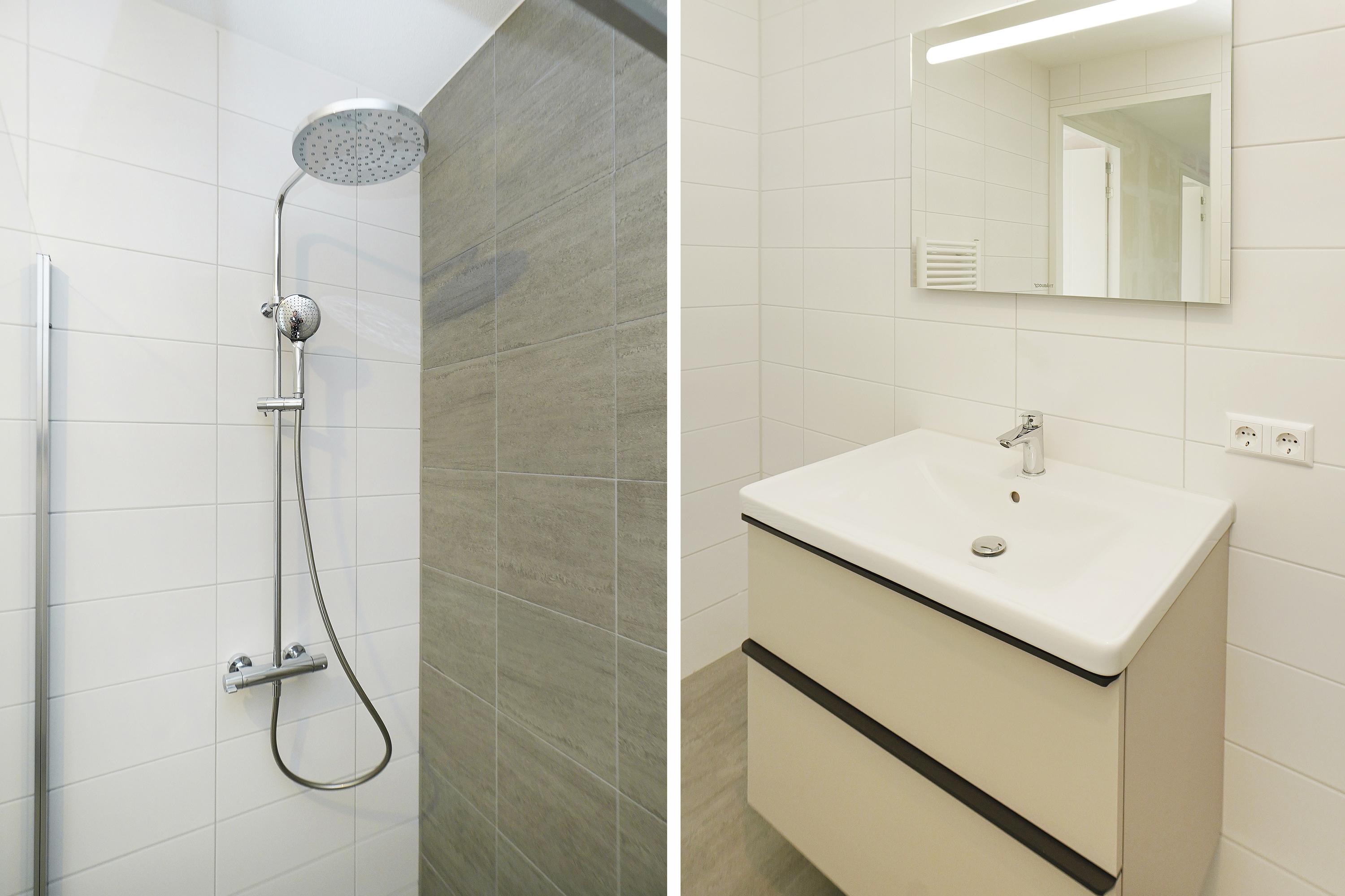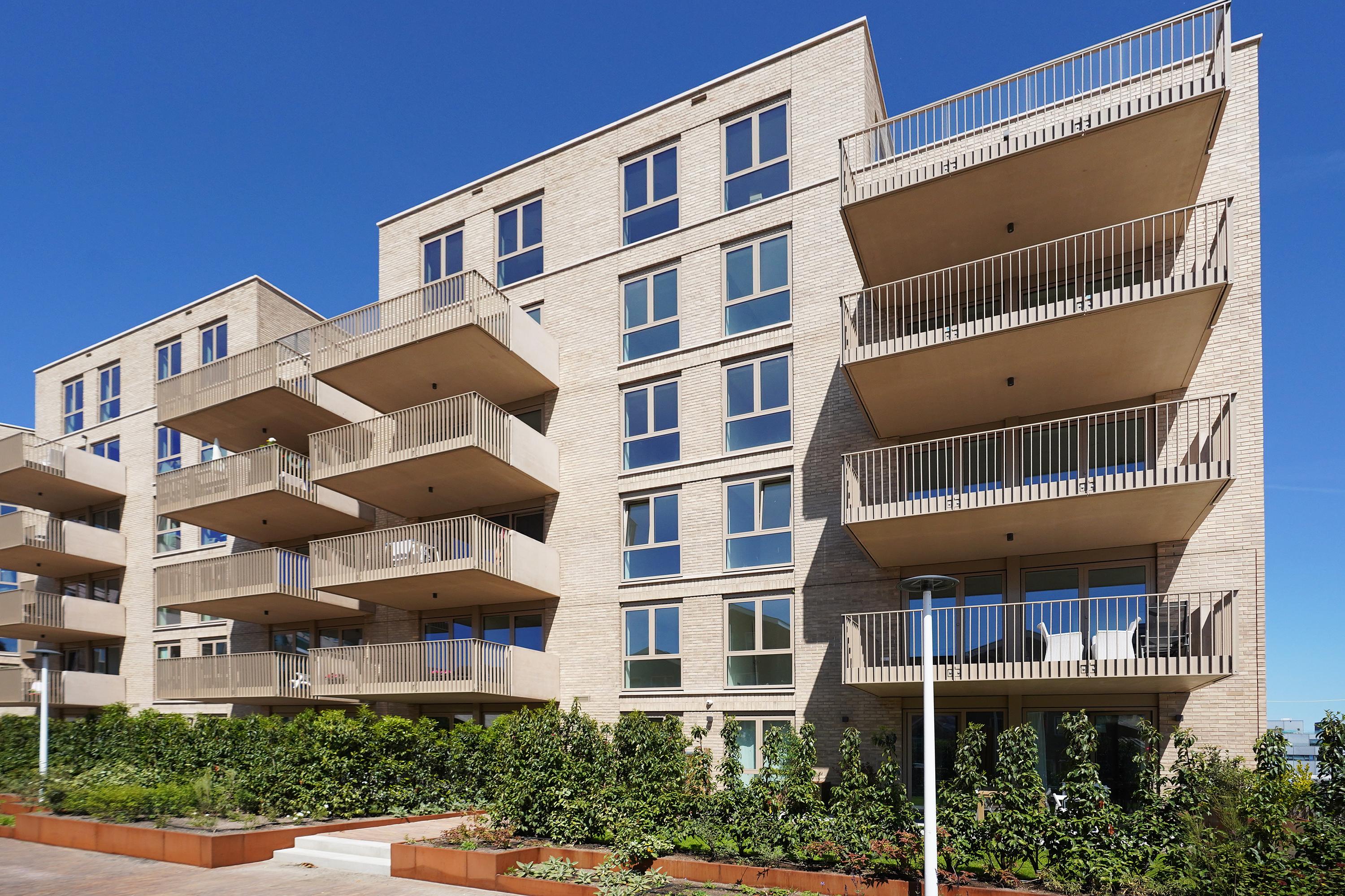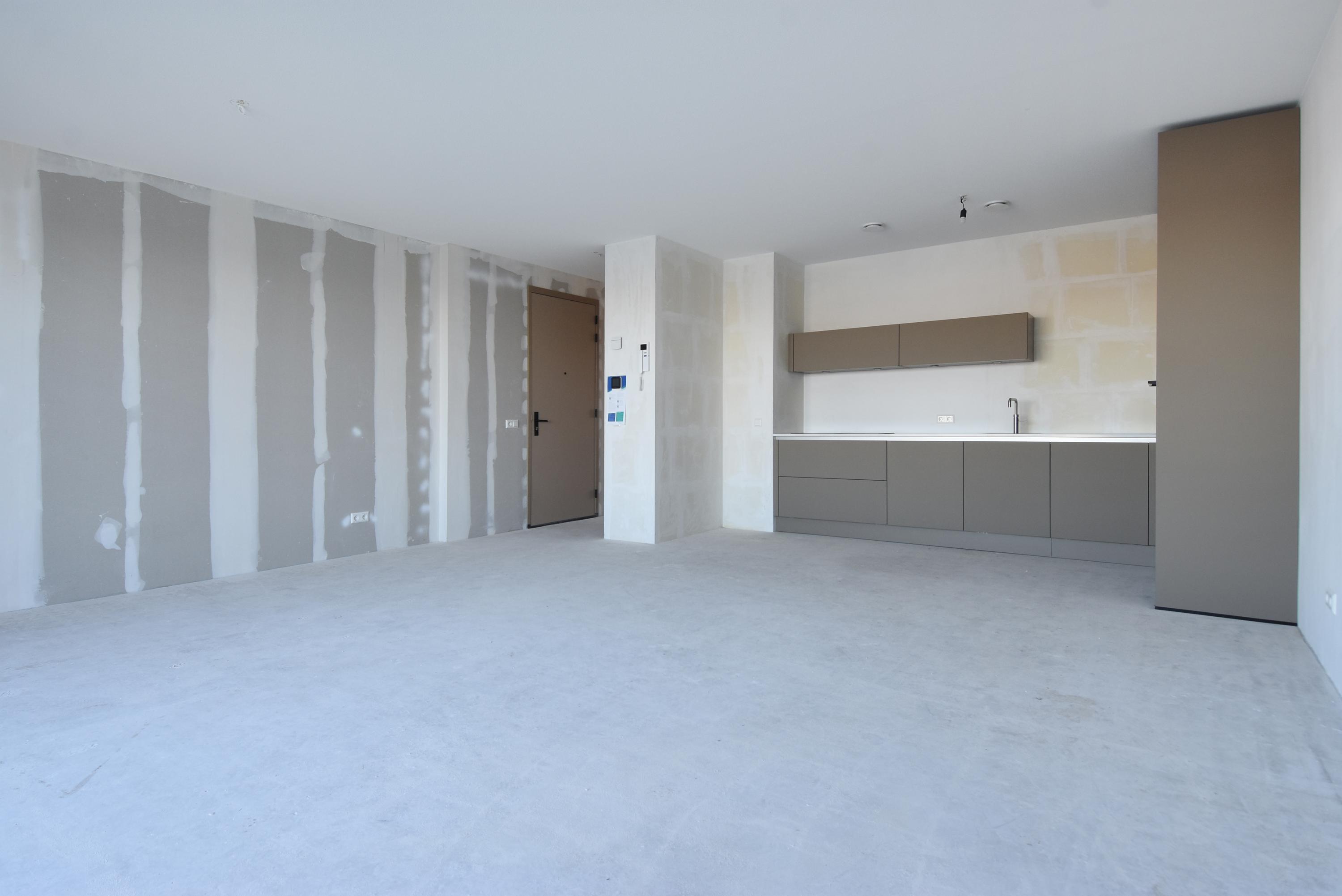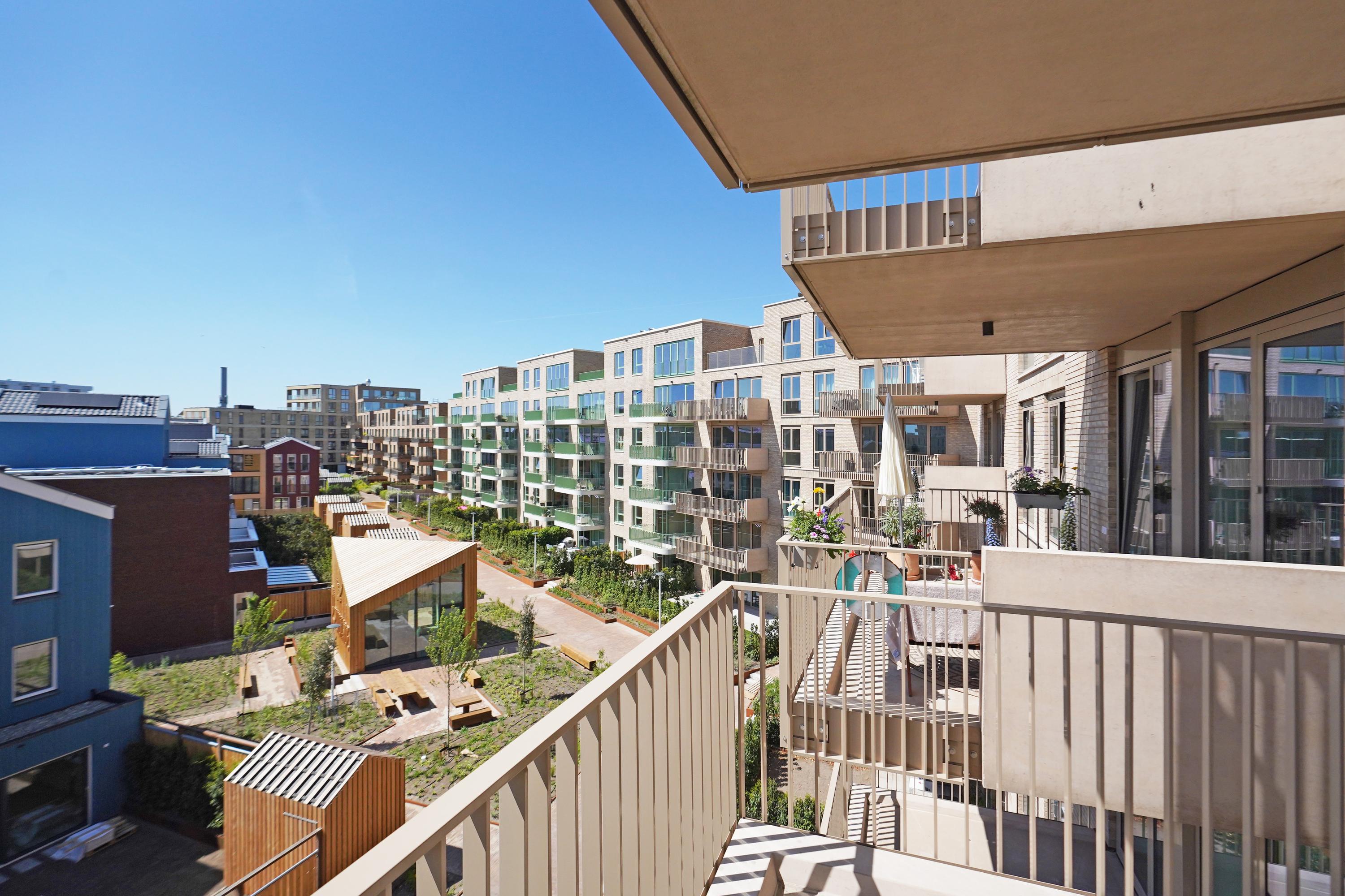 Le séjour ouvert s’articule autour d’une cuisine NEXT-125 avec plan de travail en composite et électroménager intégré, comprenant un robinet Quooker, une plaque à induction avec ventilation intégrée et un four combiné. Un système de chauffage et de rafraîchissement par le sol s’étend dans tout l’appartement, atteignant l’efficacité du label énergétique A+++. Toutes les pièces, à l’exception de l’espace technique, baignent dans le confort. À l’arrière, le balcon exposé plein sud offre des moments de calme avec vue sur une cour commune, accessible depuis les deux chambres.
