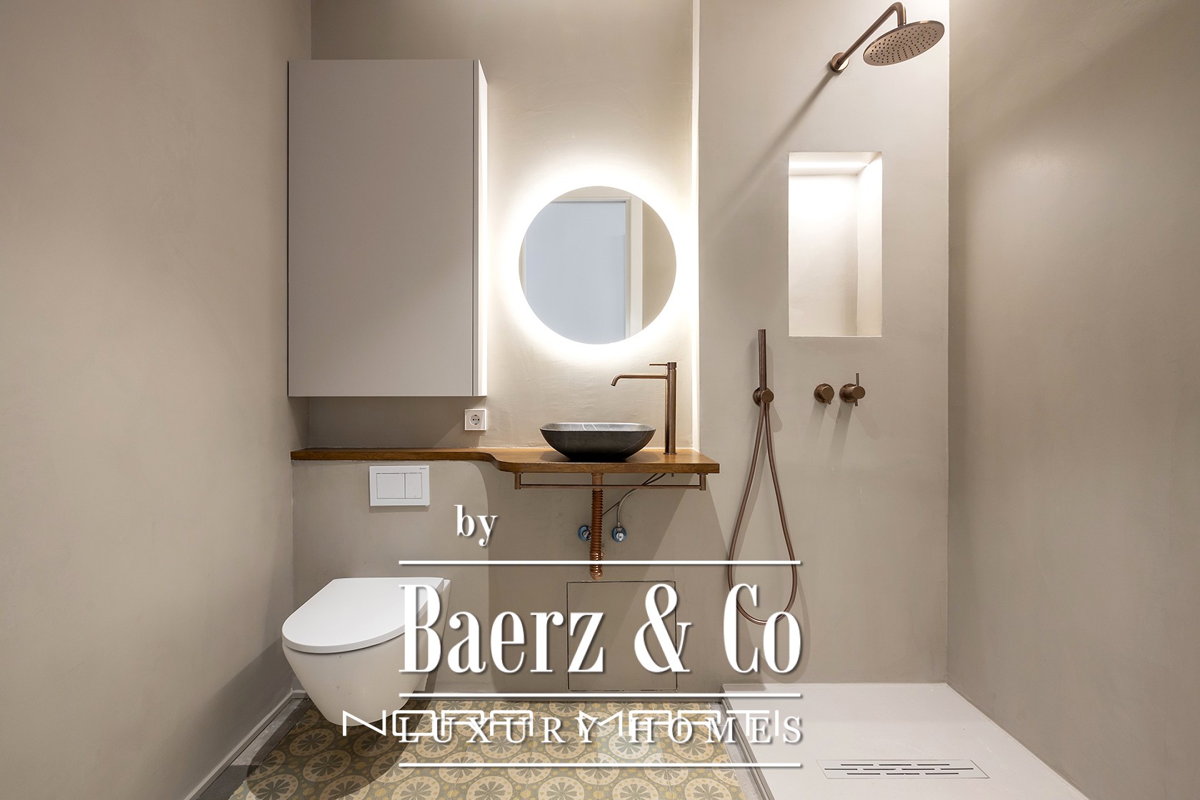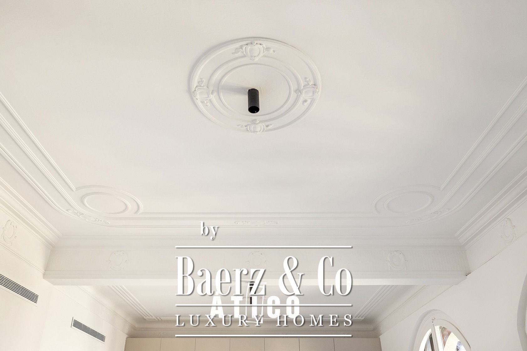 L’appartement propose deux chambres généreusement dimensionnées et deux salles de bains, avec une organisation intérieure inspirant ouverture et clarté. Les galeries et fenêtres restaurées rythment la vie au quotidien, laissant pénétrer la lumière naturelle et enveloppant chaque espace de chaleur du matin au soir. Chaque élément d’éclairage a été choisi à la suite d’une étude architecturale affinée, cultivant une ambiance discrètement sophistiquée à toute heure de la journée.