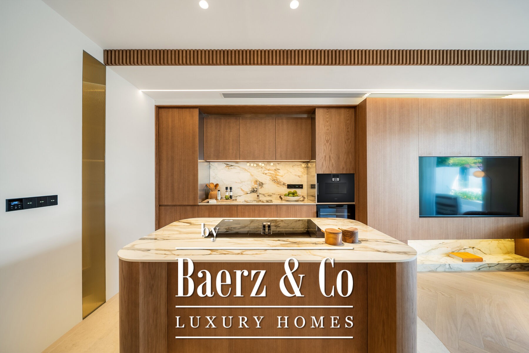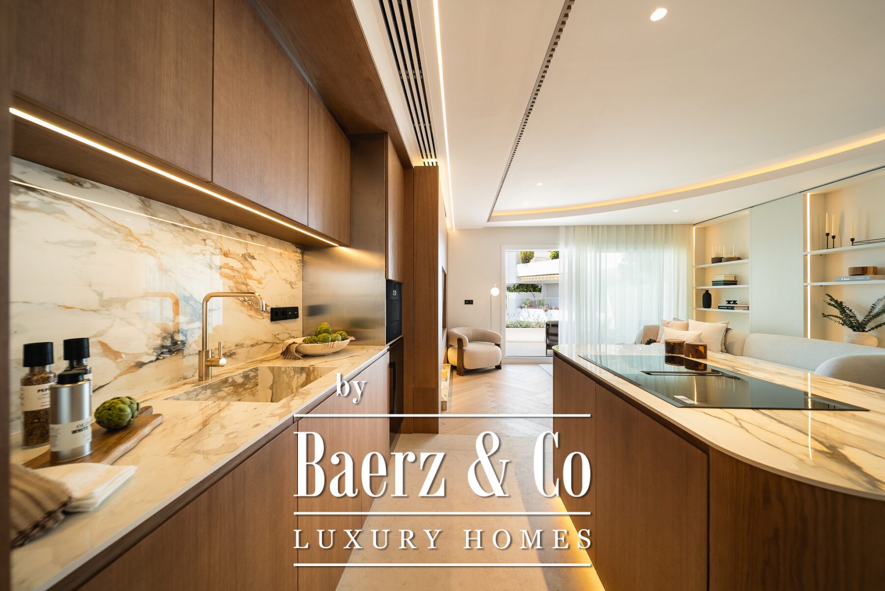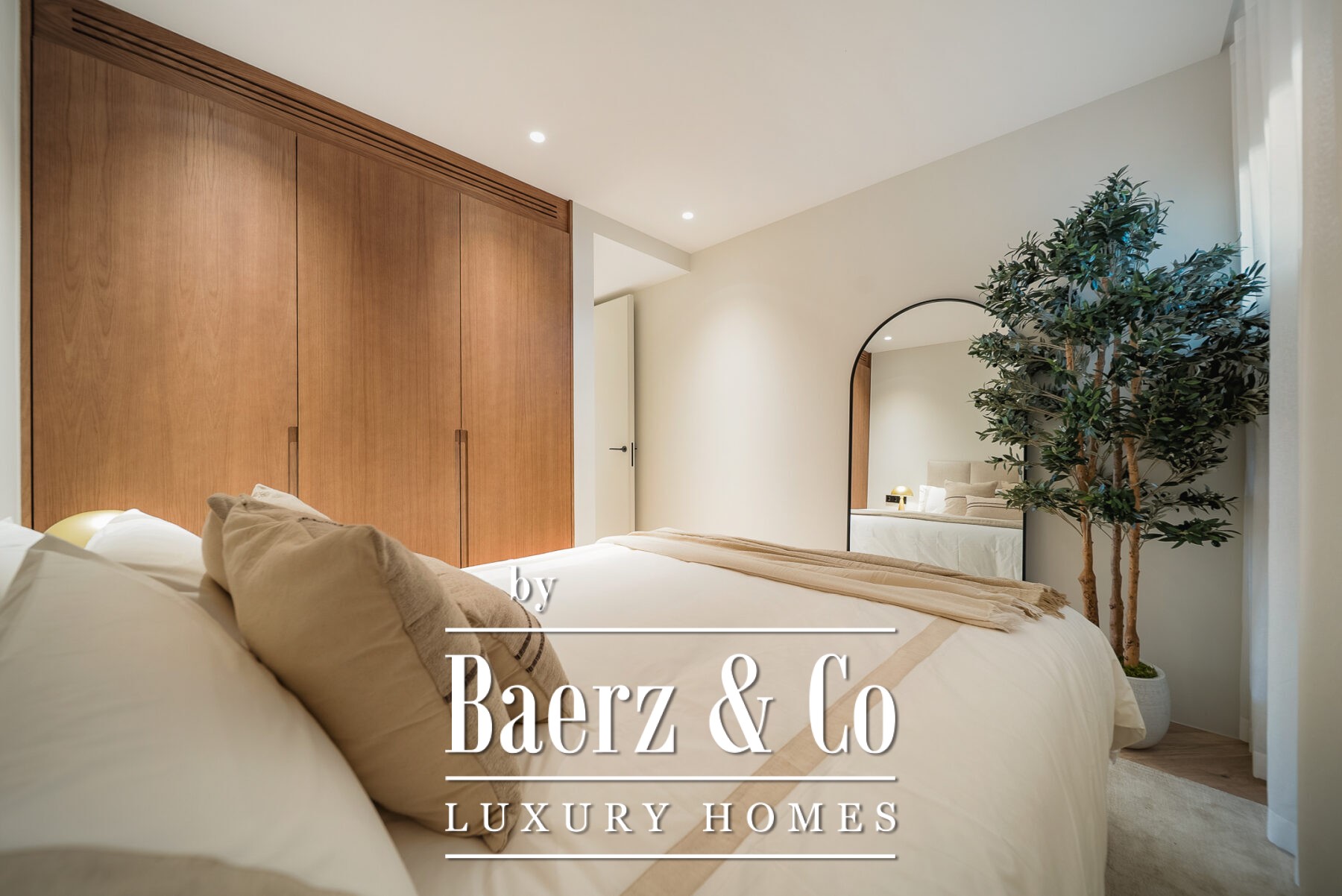 Appartement Marbella Golden Mile avec vue panoramique sur la mer, une adresse choisie par ceux qui accordent de la valeur à l’emplacement, au design et à la simplicité de vie. Ce trois-pièces offre 110 m² d’intérieurs soigneusement rénovés et une terrasse de 20 m² ouvrant sur des panoramas marins. Les espaces de vie principaux privilégient la sérénité et le confort, sublimés par un parquet à bâtons rompus BOEN, des équipements Gaggenau et Siemens, ainsi qu’une domotique de pointe. Les salles de bains sont équipées de robinetterie Dornbracht, signe d’un engagement constant pour la qualité.