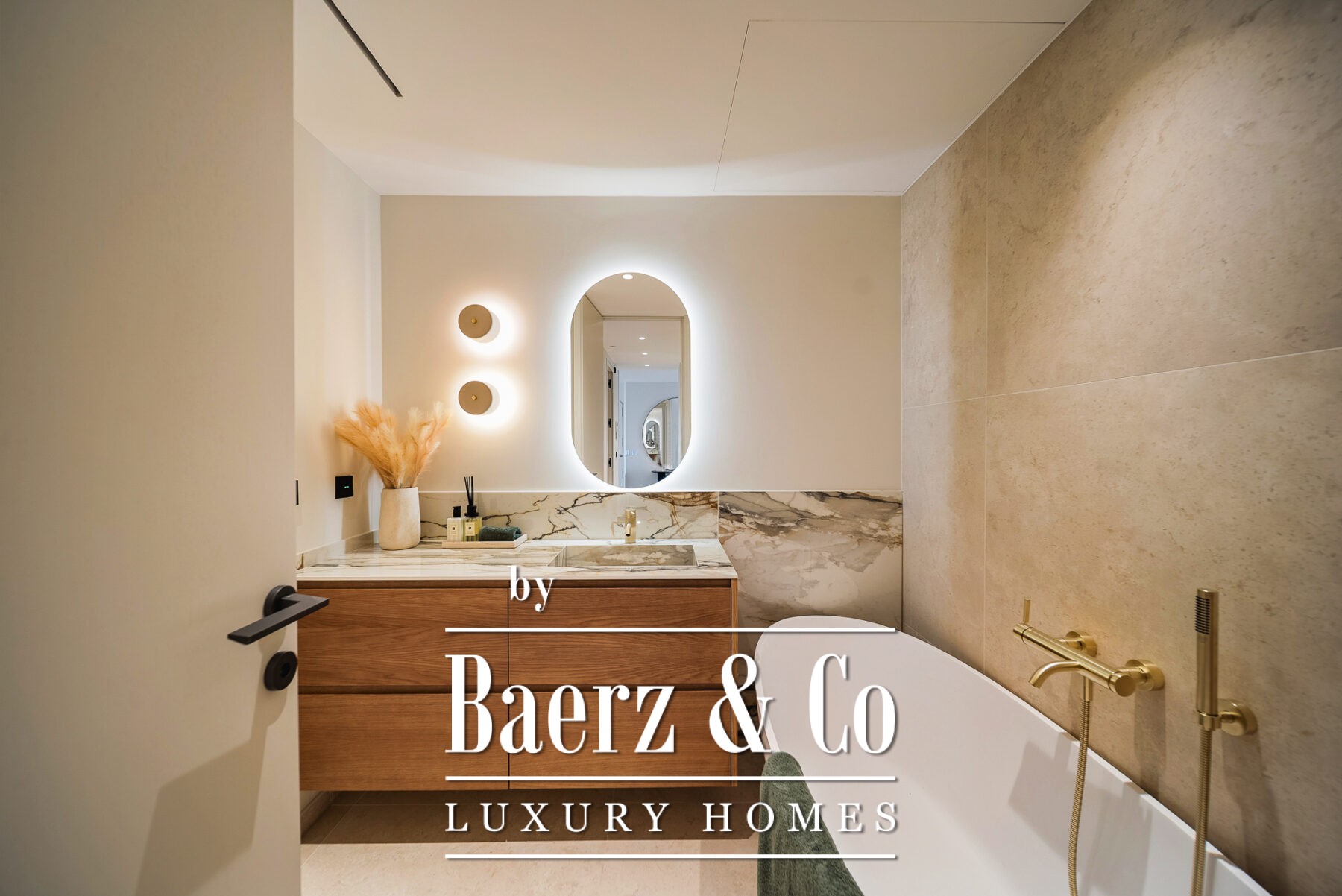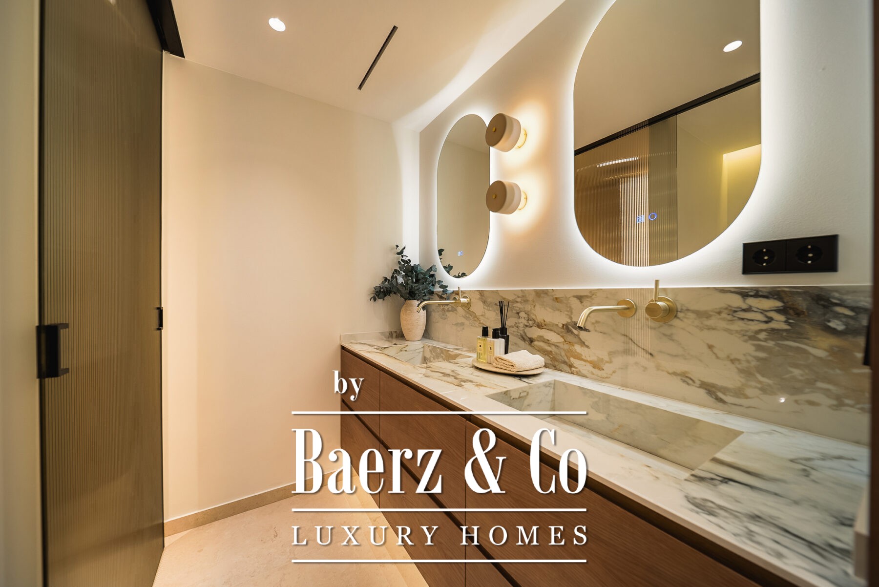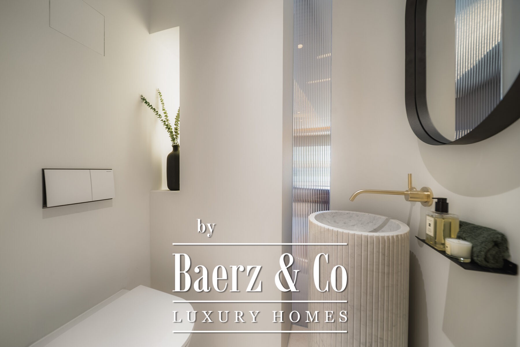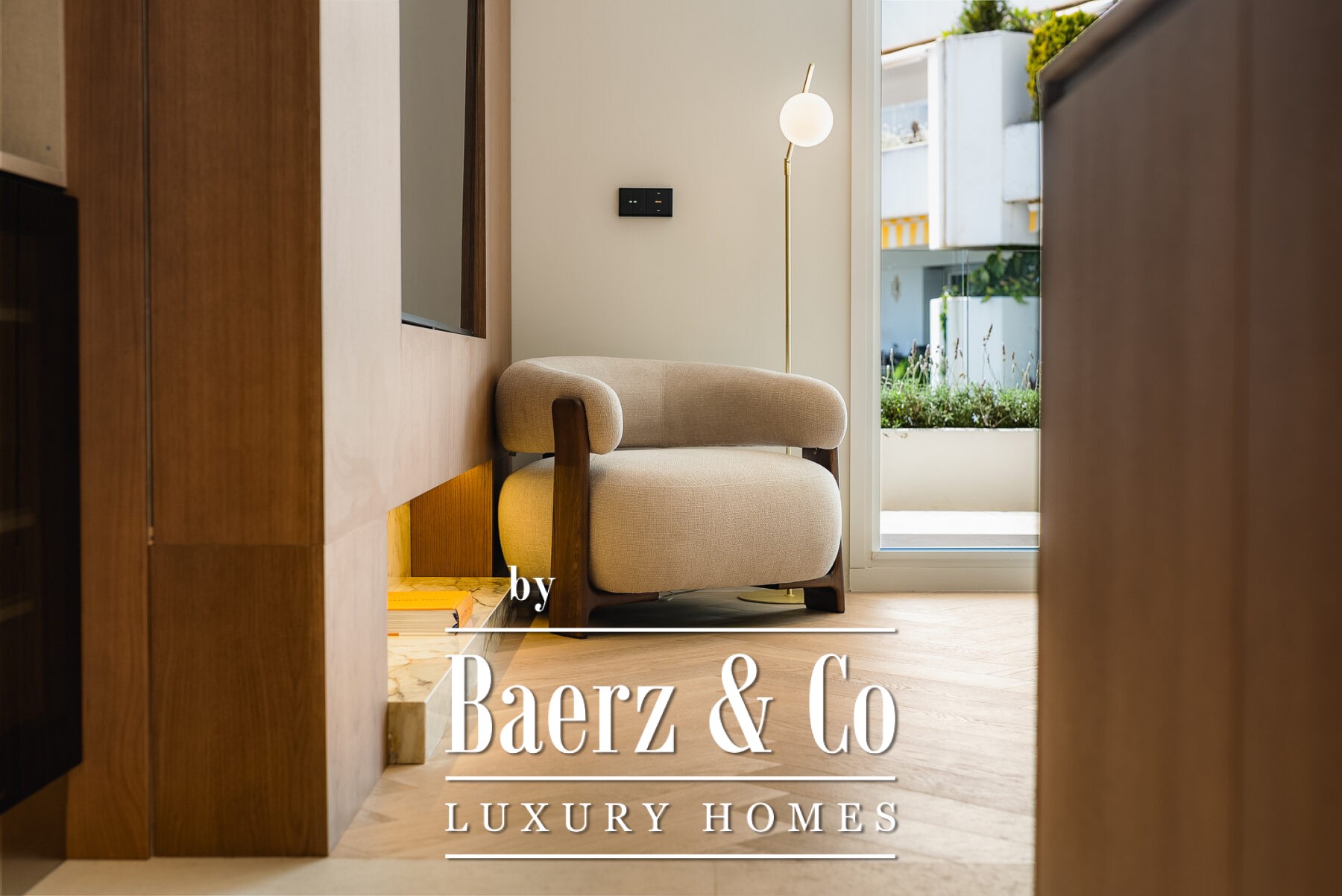 Appartement Marbella Golden Mile avec vue panoramique sur la mer, une adresse choisie par ceux qui accordent de la valeur à l’emplacement, au design et à la simplicité de vie. Ce trois-pièces offre 110 m² d’intérieurs soigneusement rénovés et une terrasse de 20 m² ouvrant sur des panoramas marins. Les espaces de vie principaux privilégient la sérénité et le confort, sublimés par un parquet à bâtons rompus BOEN, des équipements Gaggenau et Siemens, ainsi qu’une domotique de pointe. Les salles de bains sont équipées de robinetterie Dornbracht, signe d’un engagement constant pour la qualité.