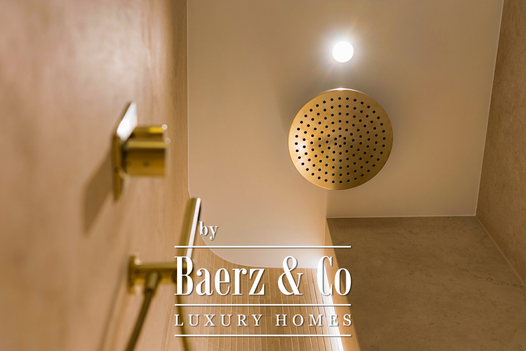 La rythmique architecturale rend hommage, en toute subtilité, aux lignes arrondies emblématiques de la résidence, conciliant identité méditerranéenne et clarté du design contemporain. Chaque détail, du chauffage au sol à l’éclairage sur mesure, invite à un sentiment d’aisance raffinée.