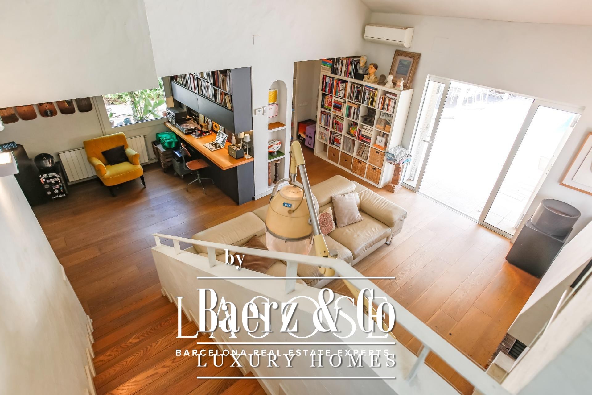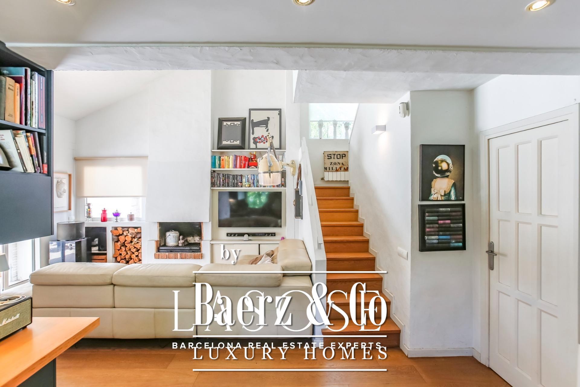 À l’intérieur, l’organisation des espaces offre un rythme harmonieux. Le séjour élégant avec cheminée s’ouvre directement sur le jardin, tandis que la cuisine entièrement équipée avec plan de travail central donne accès à un patio privé et à la zone de stationnement. Au rez-de-chaussée, une suite d’amis ou un bureau complète la flexibilité de vie, alors que l’étage accueille trois lumineuses chambres doubles, chacune profitant de vues sur le jardin et de plafonds à double hauteur. Partout, les finitions soignées et les tons neutres soulignent l’élégance naturelle de l’architecture.
