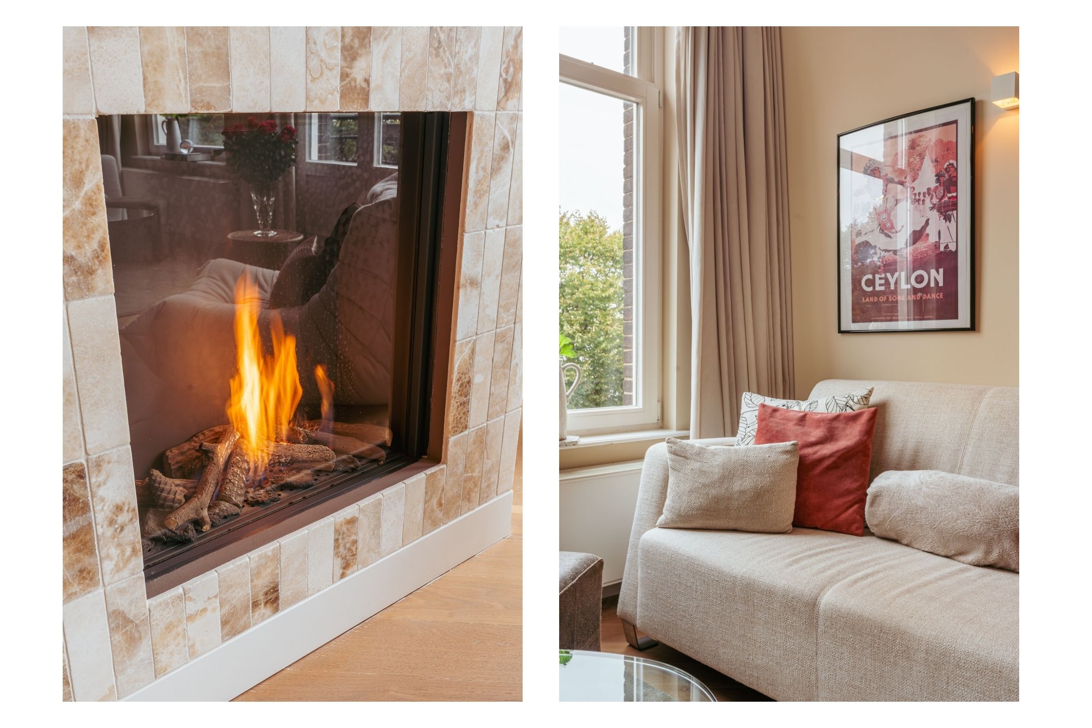 De woonkamer strekt zich uit over de gehele breedte en beschikt over grote raampartijen en dubbele openslaande deuren naar het balkon aan de voorzijde, waar u de avondzon treft. Dankzij de twee ruime zitgedeeltes is er volop plek om te ontspannen en gasten te ontvangen. Een sfeervolle gashaard, originele inbouwkasten, hoge plafonds en de fraaie visgraat houten vloer geven de ruimte karakter en warmte.