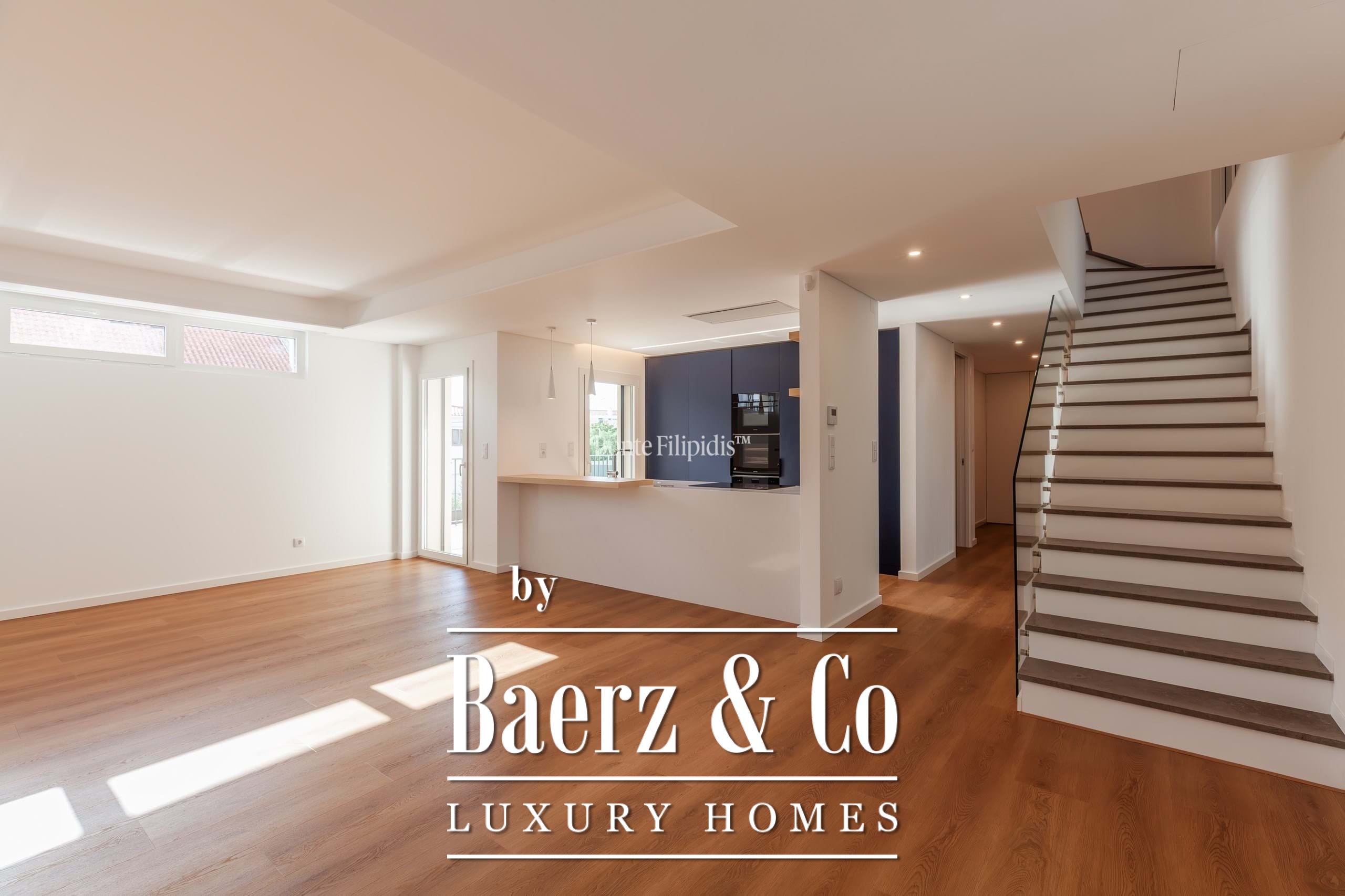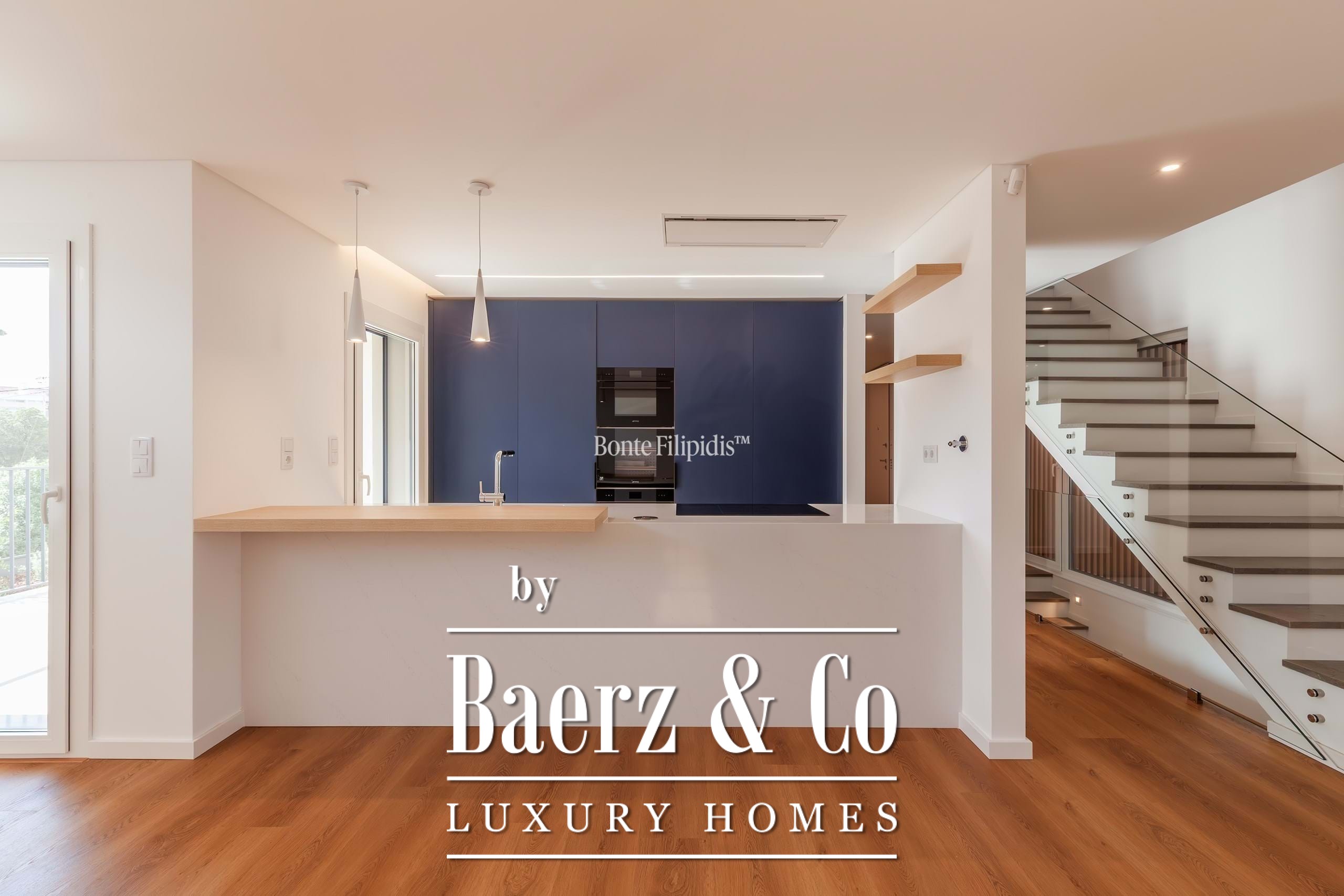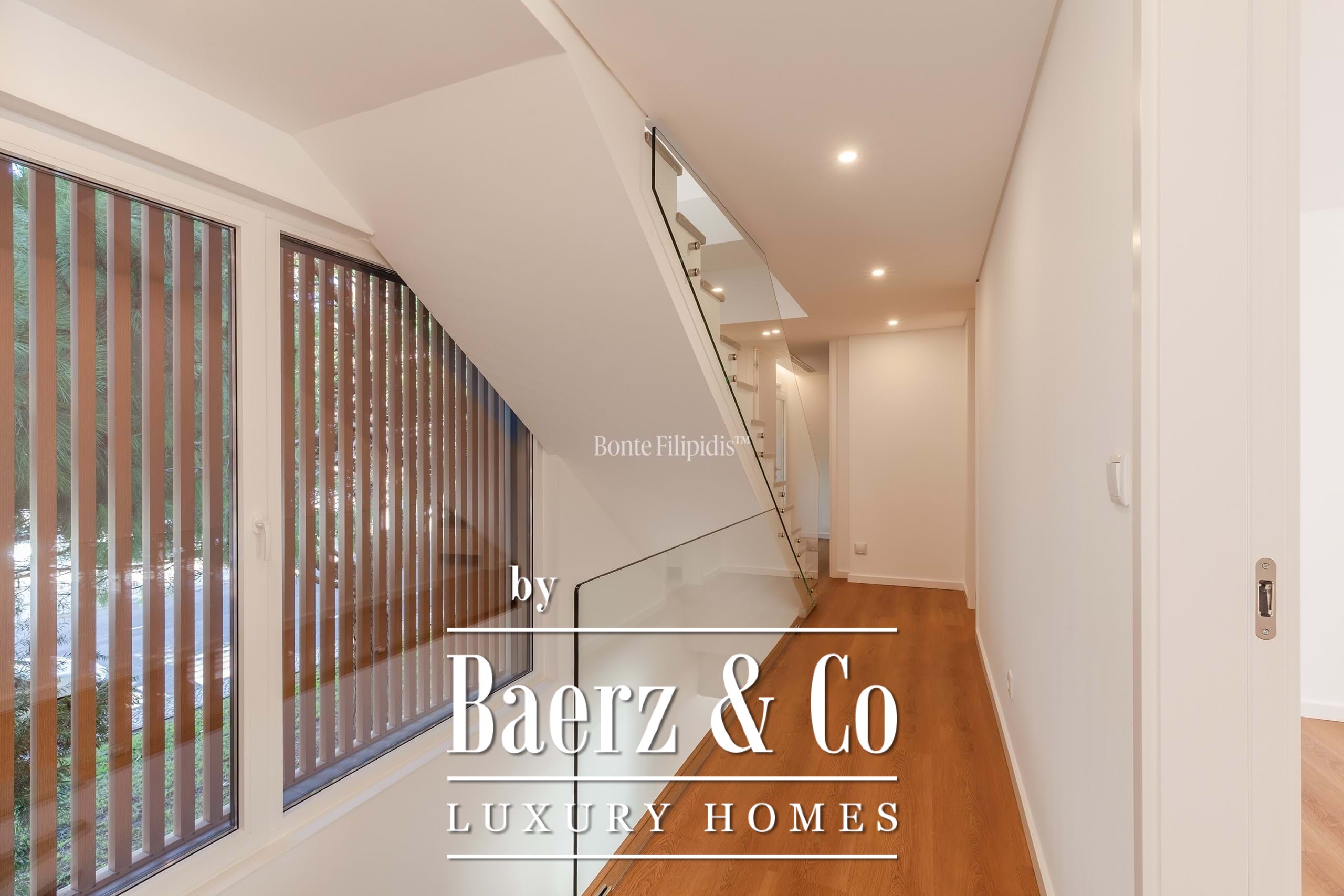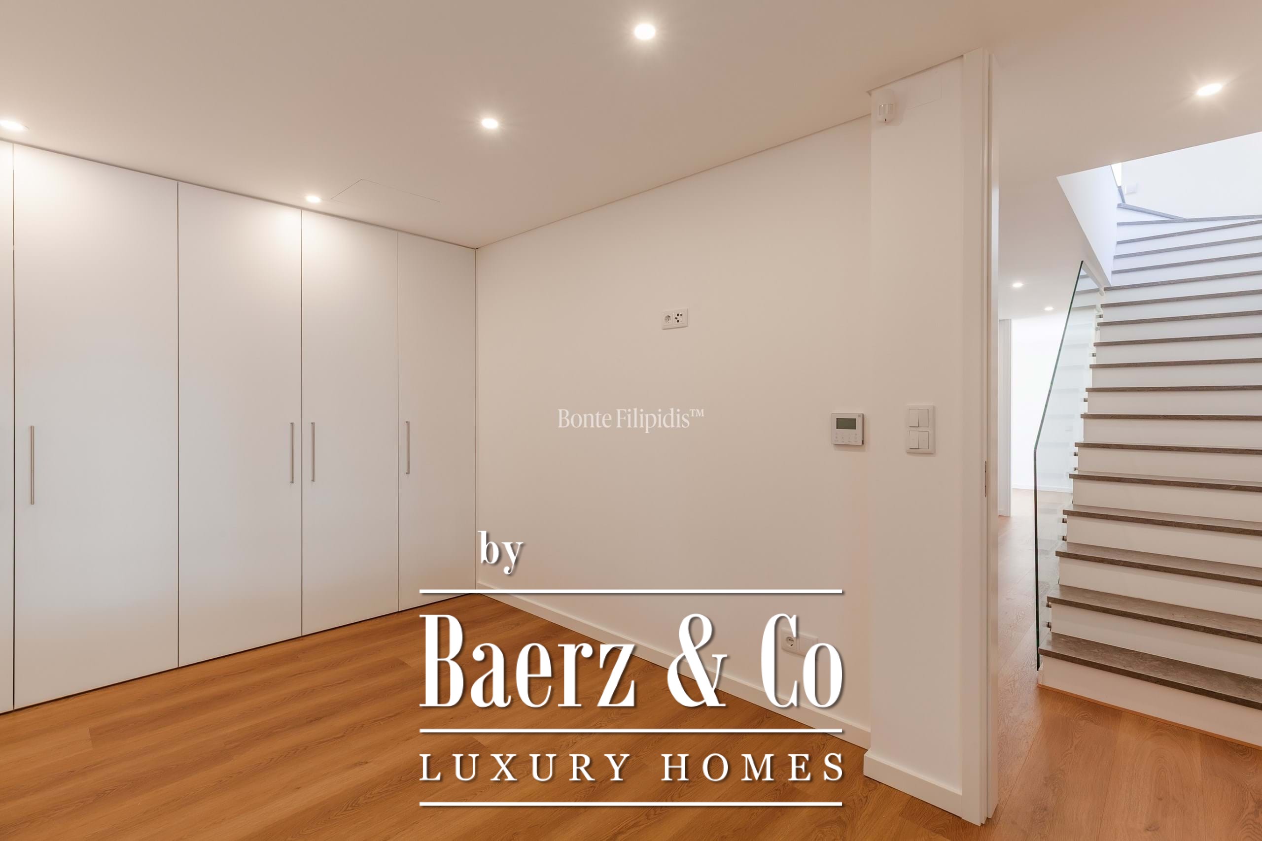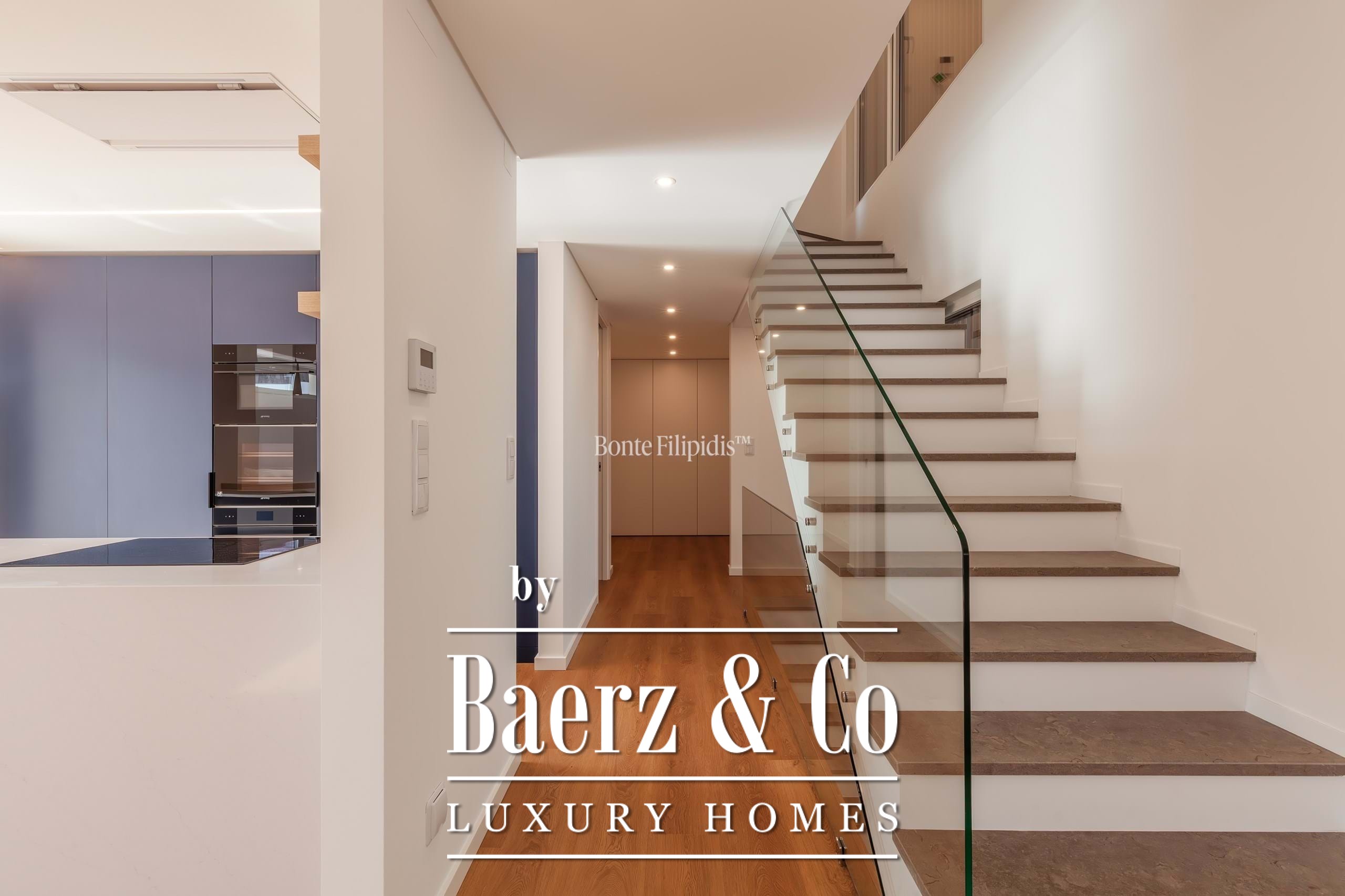 Deze townhouse in Carcavelos e Parede is geïnspireerd op hedendaagse architectuur en biedt een ingetogen luxueuze woonomgeving, verdeeld over 217 m² en drie doordachte verdiepingen. De open keuken, uitgerust met hoogwaardige apparatuur, sluit naadloos aan op de woonkamer en trekt volop daglicht naar binnen, waardoor het interieur in verbinding staat met buitenruimtes en het aangelegde terras. Een extra suite op de begane grond biedt flexibiliteit en privacy, geschikt voor gasten of als multifunctionele leefruimte.