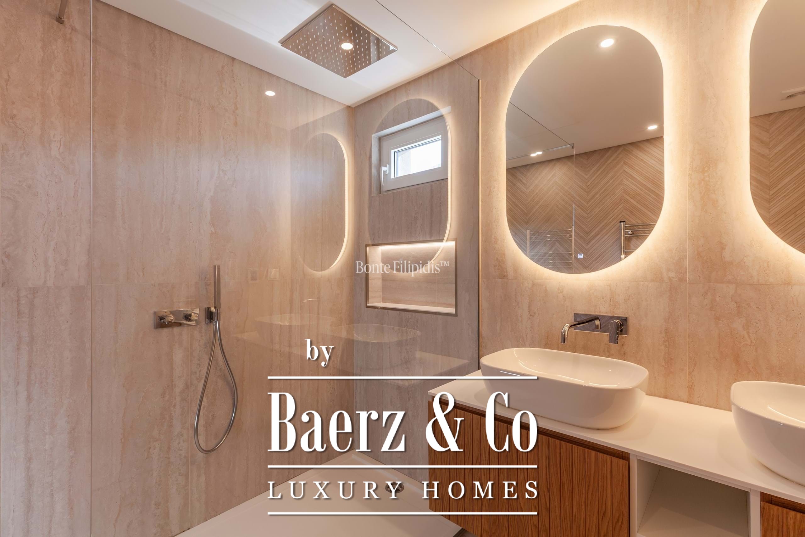Op de eerste verdieping beschikt de hoofdsuite over een inloopkast; twee extra slaapkamers en een gedeelde badkamer ondersteunen het gezinsleven. De multifunctionele ruimte op de bovenverdieping, met eigen complete badkamer en toegang tot een ruim terras, vormt de ideale plek voor zonsondergangen, ontspanning en reflectie onder de kusthemel. Elke badkamer is voorzien van elektrische vloerverwarming en duurzaamheid is geïntegreerd met zonnepanelen en een voorbereide voorziening voor het opladen van elektrische voertuigen.