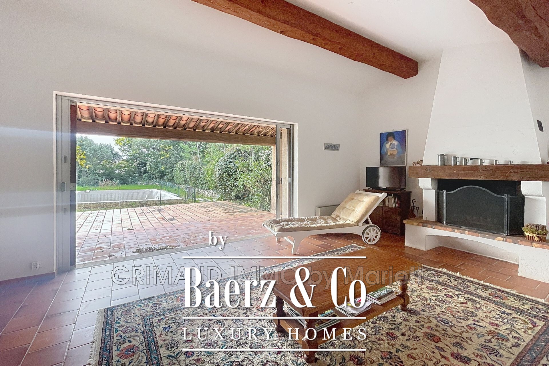 Huis Grimaud vormt het centrale trefwoord van deze woning, die een uitzonderlijke ligging heeft met uitzicht over het landschap van Grimaud. De woning beslaat 125 m² en is rustig gelegen op een verhoogd perceel, waardoor er volop uitzicht is en een gevoel van geborgenheid binnen een beveiligde woonwijk. De woonkamer, voorzien van een sfeervolle open haard, loopt naadloos over in de open keuken en creëert zo een sociaal middelpunt waar gastvrijheid en privacy samenkomen. Er zijn vier slaapkamers, zorgvuldig verdeeld over het huis en ontworpen om rust en ontspanning te laten samensmelten met het ritme van de Provence.