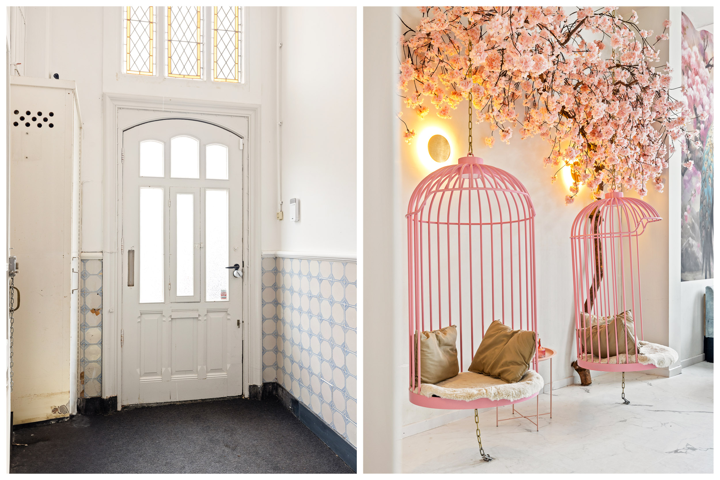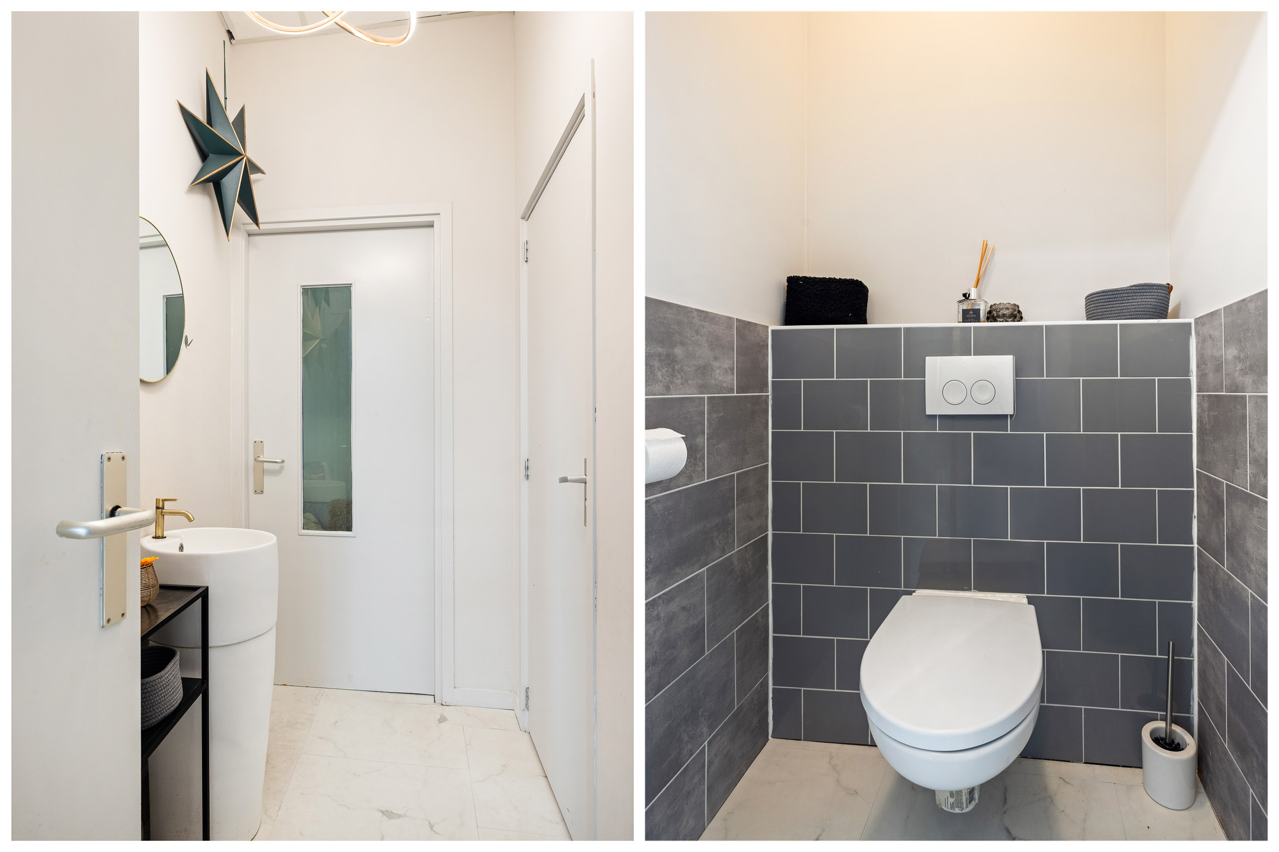 Via de linker voordeur – of intern via de centrale hal – bereikt men een multifunctionele ruimte van 77 m², voorzien van een professionele keuken met bijkeuken en berging, tuingerichte kamer en moderne dubbele toiletgroep annex badkamer. Dankzij de bestaande indeling, de dubbele huisnummers en de gemengde bestemming biedt dit pand talloze mogelijkheden voor wonen, werken en ondernemen.