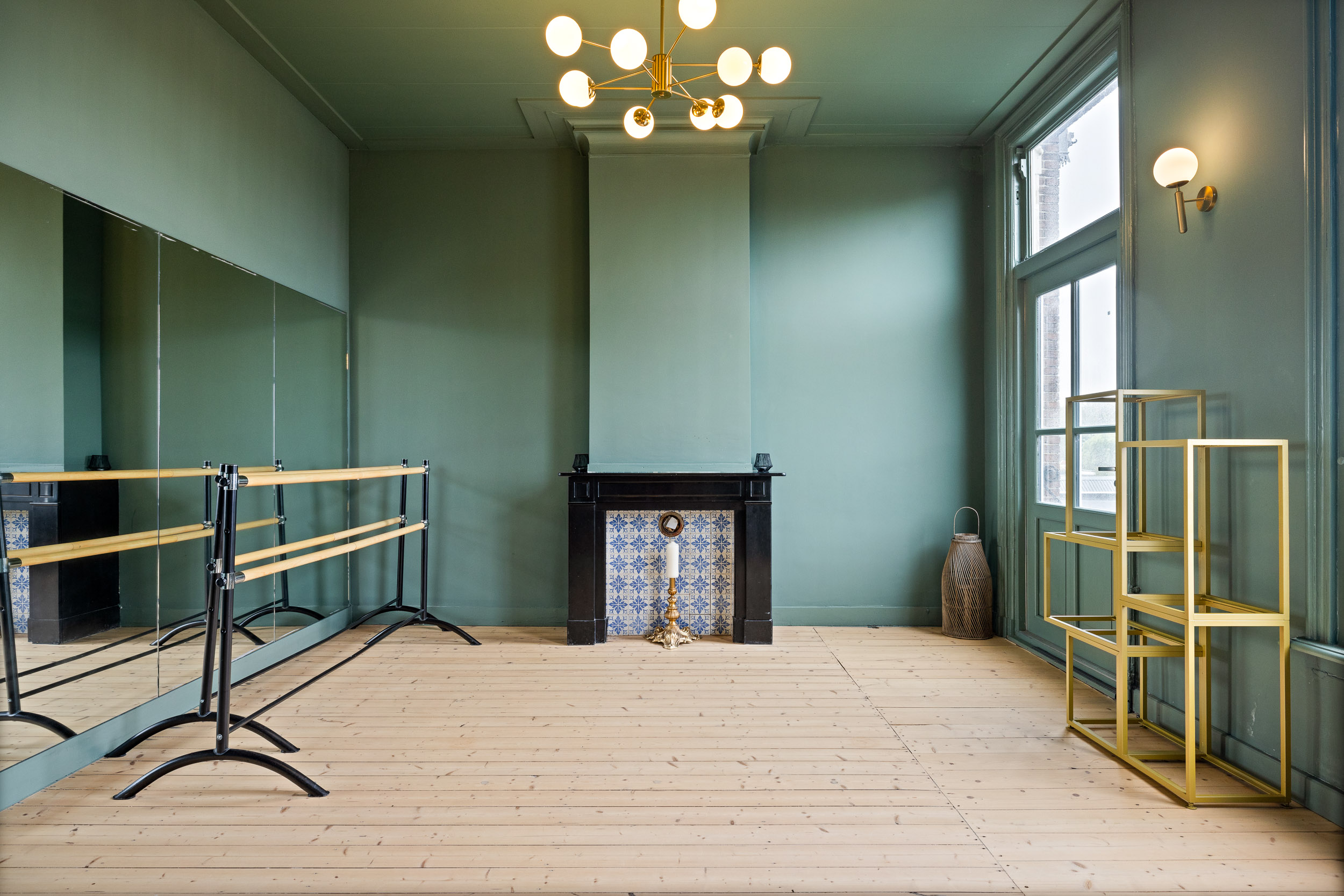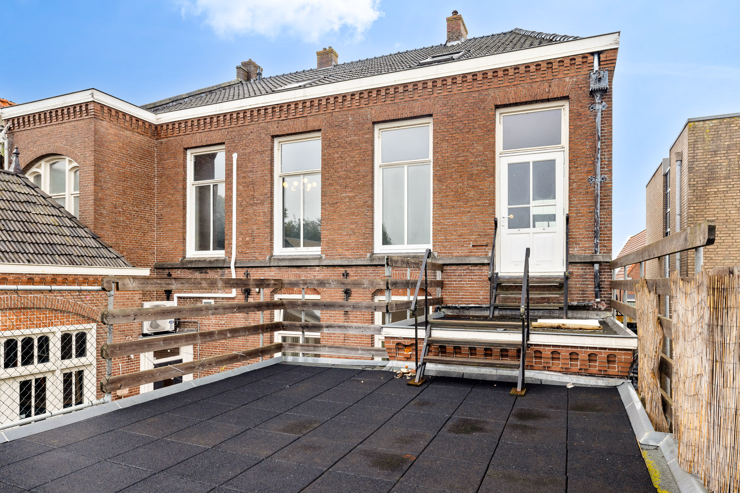 De monumentale bordestrap van natuursteen met gietijzeren balusters leidt naar de eerste verdieping, die grotendeels de originele indeling heeft behouden. Op de overloop geeft een rijk gedecoreerde houten deur toegang tot de betegelde gang. Aan de rechterzijde bevinden zich de kamers en suite, met schuifdeuren voorzien van koperen sluitwerk uit de geelgieterij van Joure. Originele details als plafonds met geometrisch lijstwerk, rozetten, parketvloeren en de zwarte marmeren schouw zijn hier prachtig bewaard gebleven. Het aan de woonkamer gelegen dakterras aan de tuinkant biedt gezien de omvang (45m2) volop mogelijkheden (zie artist impressie).