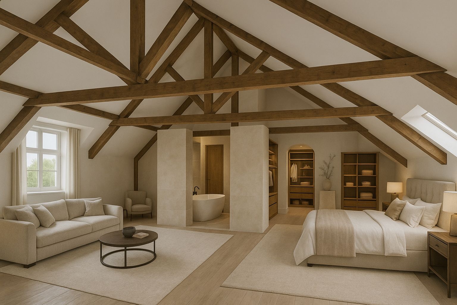 De royale zolderverdieping van 85 m², volledig geïsoleerd en met imposante houten spanten, verkeert in originele staat en heeft volledige stahoogte. Via een vaste trap bereikbaar, biedt deze verdieping ruimte voor de creatie van een stijlvol loftappartement (zie artist impressie).