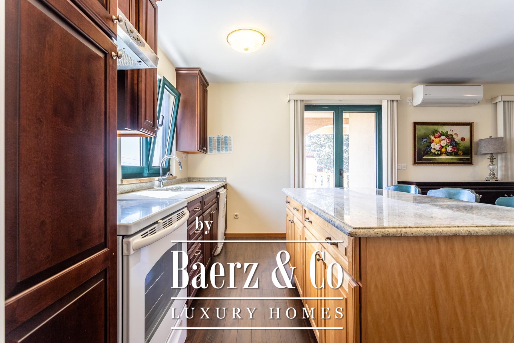 De begane grond beschikt over een ruime woonkamer met aangrenzende keuken en eetkamer, twee slaapkamers met elk een eigen badkamer en een uitnodigend buitenterras. Zowel de eerste als de tweede verdieping volgen dit concept, met ruime woonvertrekken die uitkomen op balkons met uitzicht op zee, twee extra slaapkamers met en suite badkamers en inloopkasten, plus een afzonderlijk gastentoilet. Elke verdieping is opgezet als een zelfstandig appartement met een eigen entree, wat flexibiliteit biedt voor privégebruik of discrete verhuur.