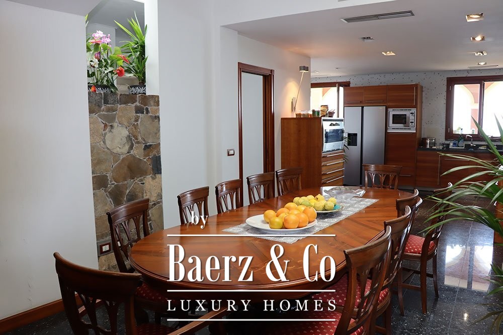 De begane grond draait om een royale woonkamer, waar de open, professionele keuken naadloos aansluit op de eetkamer. Hiernaast bevindt zich een wintertuin met een tweede keuken en barbecue, omsloten maar toch open en uitkijkend op het spectaculaire zeezicht. Praktische voorzieningen zijn onder meer een ruime garage voor meerdere auto's, een aparte douche bij het zwembad en een wasruimte. De begane grond sluit direct aan op een portico die toegang geeft tot de terrassen en het verwarmde infinity-zwembad dat in het horizonbeeld opgaat.