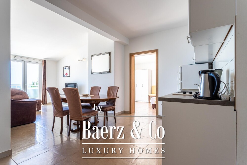 De hoofdstructuur omvat 14 slaapkamers en 14 badkamers, waarbij iedere verdieping zorgvuldig is ingericht voor optimale privacy en comfort. Op de begane grond bevindt zich een luxe vierkamerappartement met twee badkamers en vier terrassen, elk met een open uitzicht op de zee. De eerste en tweede verdieping bestaan elk uit vier appartementen, variërend van studio’s tot tweeslaapkamerwoningen, alle volledig gemeubileerd en voorzien van airconditioning.