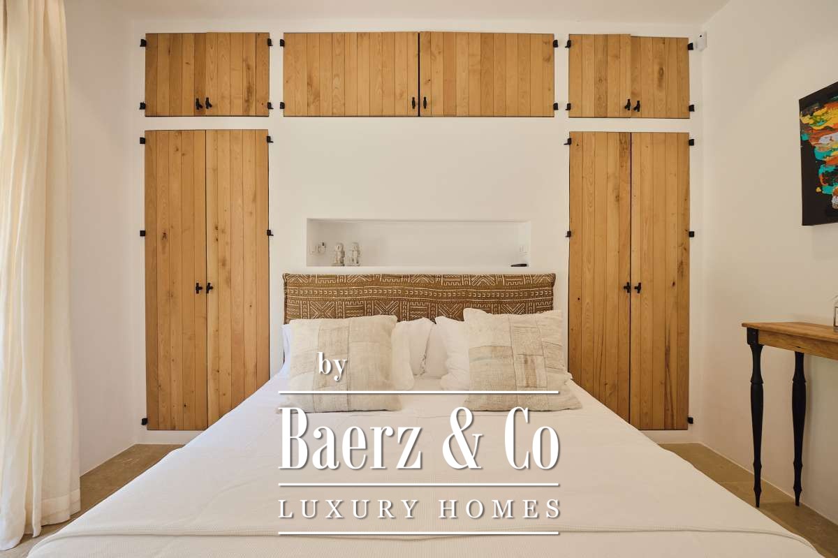 De omgevingDeze onberispelijke, moderne villa in rustieke-stijl staat op een afgelegen perceel in de buurt van San Josep aan de prachtige westkust van het eiland. Dit uitzonderlijke eigendom wordt omringd door weelderige bergen die een perfect privé-onderkomen biedt. Binnen een paar minuten bent u in het hart van het pittoreske San Josep, waar u al uw dagelijkse benodigdheden vindt, zoals supermarkten, lokale bars en restaurants. Binnen een straal van 10 kilometer kunt u enkele van de mooiste stranden van het eiland ontdekken. Ontspan met een adembenemend uitzicht op de glinsterende Middellandse Zee op het rustige strand van Es Torrent, waar ook het befaamde restaurant is gevestigd. Daarnaast kunt u de prachtige baai van Cala Jondal verkennen, bekend om zijn prestigieuze beach clubs zoals Blue Marlin, Jondal en Yemanja. Of ga naar Cala Sa Caleta, beroemd om zijn ongerepte, roestkleurige baai en uitstekende paella's. Op slechts 20 minuten rijden vindt u de levendige Ibiza-Stad met zijn jachthaven, lokale bars, restaurants en winkels. De luchthaven ligt op minder dan 15 minuten rijden, wat reizen gemakkelijk maakt. Ontdek de perfecte mix van een rustig eilandleven en moderne luxe in deze uitzonderlijke en rustieke villa.De villaDeze ruime woning bestaat uit een hoofdwoning en een vrijstaand gastenverblijf met in totaal 6 slaapkamers en 6 badkamers, met een bebouwde oppervlakte van 400m2 op een royaal perceel van 2794m2. Als u de villa nadert, leidt een indrukwekkende entree met een moderne vijver u naar de handgemaakte Balearen houten deuren. Stap binnen en ervaar een prachtig interieurontwerp, dat eigentijdse afwerkingen combineert met de warme, authentieke Balearische sfeer die kenmerkend is voor de beroemde Blakstad-stijl. De open plattegrond beslaat meerdere verdiepingen, te beginnen met een gezellige woonkamer compleet met een moderne open haard, uitzicht op de tuin, en een aparte loungehoek om televisie te kijken. De moderne, volledig uitgeruste keuken is de droom van een culinaire liefhebber, met luxe geïntegreerde branders op een grote marmeren keuken bar, ideaal om aan uw ochtendkoffie te nippen of om gezellig met vrienden te koken. De open eetkamer grenst aan de keuken, biedt plaats aan een grote eettafel en wordt gecompleteerd door een tweede moderne open haard, die het decor vormt voor gezellige familiemaaltijden, elegante diners of leuke spelletjesavonden. Verder op de begane grond vindt u 2 slaapkamers, een met een tweepersoonsbed en een met twee eenpersoonsbedden. Op de eerste verdieping vindt u de master slaapkamer, met een ruime en-suite badkamer en toegang tot een adembenemend dakterras. Op de begane grond bevinden zich twee slaapkamers, elk met een eigen badkamer en toegang tot het terras, waarbij de derde slaapkamer op de eerste verdieping een en-suite badkamer bezit. Het vrijstaande gastenverblijf garandeert volledige privacy en comfort voor bezoekers, en biedt drie extra slaapkamers. Extra voorzieningen zijn onder andere een Sonos audiosysteem, WiFi, een alarmsysteem, airconditioning en verwarming.De buitenruimtesDit prachtige huis is perfect voor buitenvermaak in volledige privacy. Zo beschikt het over een groot, spa-achtig zwembad, meerdere patio's en eetgedeeltes in de buitenlucht, een buitenkeuken, een barbecueplaats en een geweldig dakterras. Wanneer u vanuit de woonkamer naar buiten stapt, ontdekt u een prachtig overdekt terras, compleet met eettafel, buitenkeuken, barbecue en een ruime geïntegreerde U-vormige loungebank. Deze uitnodigende ruimte is perfect voor grote sociale bijeenkomsten en het creëren van onvergetelijke herinneringen. De grote en zorgvuldig onderhouden tuin beslaat een indrukwekkende 2794m2, compleet met tropische palmbomen, natuurstenen paden en een ontspannend zwembad omringd door 12 ligbedden. Daarnaast is er een tweede buitenkeuken en een eethoek in de buitenlucht die plaats biedt aan maximaal 12 gasten, ideaal voor diners in de buitenlucht en zomerse barbecues. Bovendien heeft het huis een geweldig dakterras met spectaculair uitzicht over de weelderige omgeving, en vormt het een serene achtergrond voor elke gelegenheid tijdens een zonsondergang of onder een sterrenhemel. Er is voldoende parkeergelegenheid op het terrein. Ervaar de ultieme luxe binnen- en buiten leefervaring in dit uitzonderlijke huis, waar elk detail is ontworpen voor comfort, luxe en entertainment in een bohemian chique levensstijl.