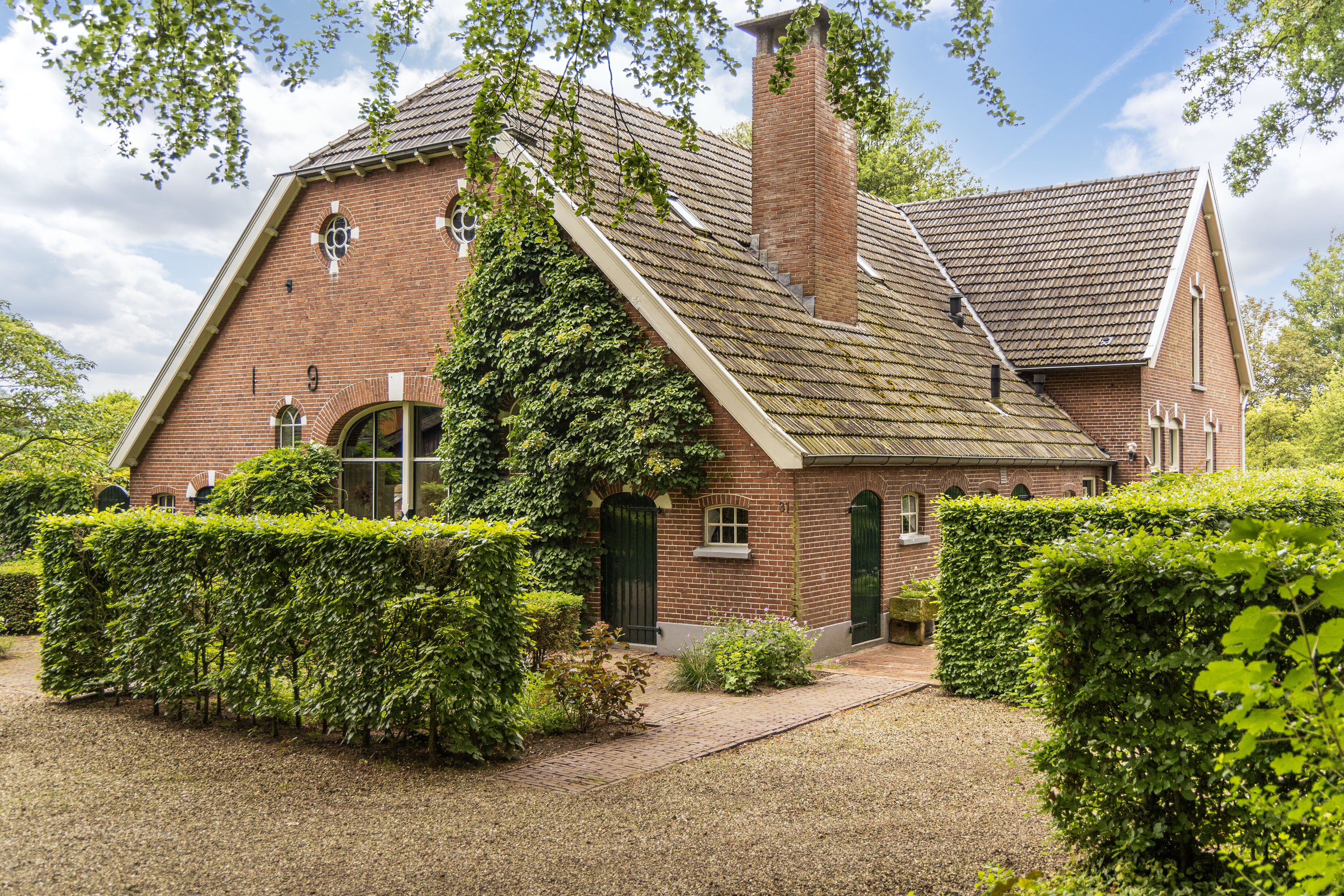 Жилая ферма Woonboerderij Haaksbergen расположена на окраине поселка Honesch, открывая широкие виды на сельский пейзаж и окружённая зрелой зеленью. Этот капитально отреставрированный дом площадью 428 м² с участком 10 000 м² гармонично соединяет аутентичные детали 1915 года с тщательно продуманными современными решениями. Наполненная светом гостиная, ранее служившая амбаром, украшена восстановленными балками и высокими потолками, а современная кухня выполнена в белом глянцевом исполнении. Ритм камня, стекла и сохранённого дерева создаёт баланс уюта и исторической самобытности, позволяя наслаждаться как тишиной, так и общением.