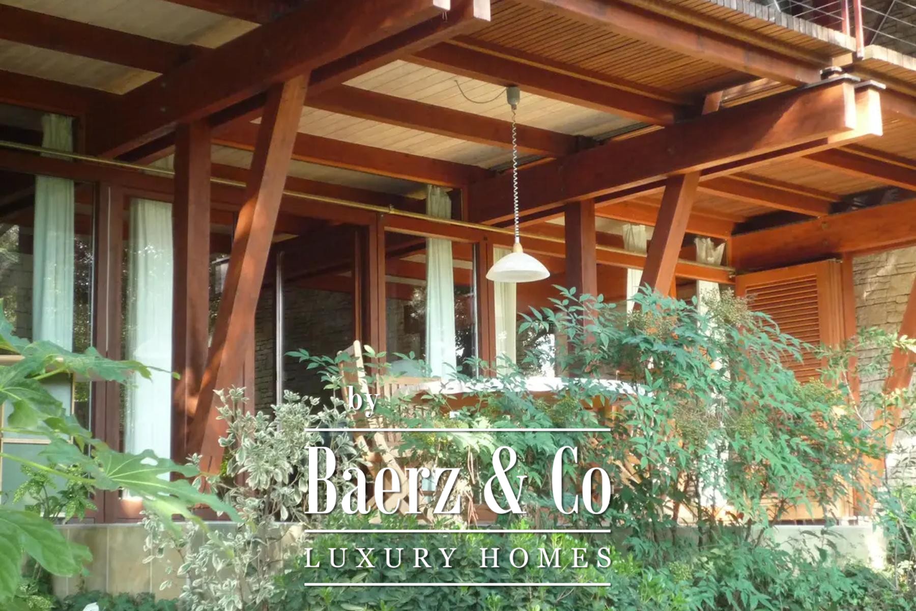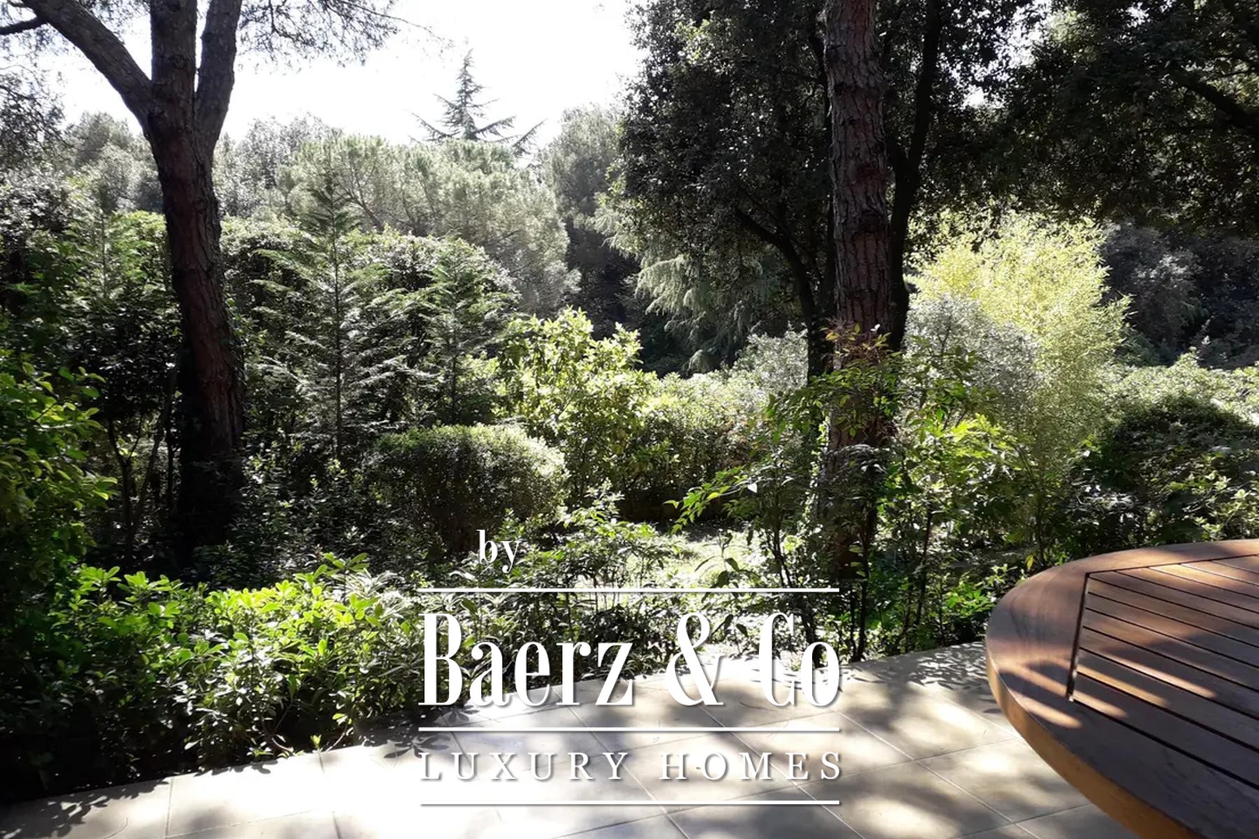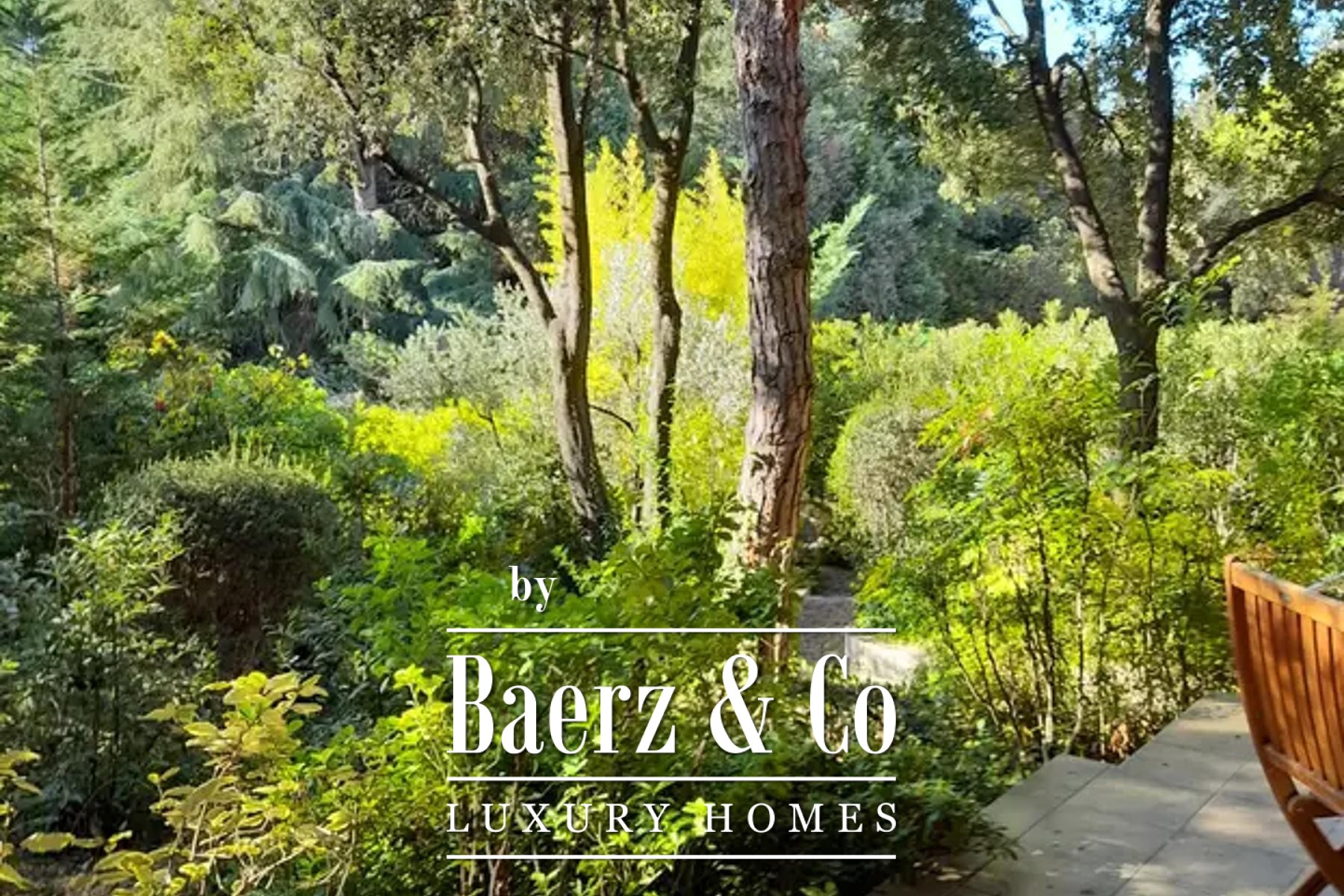 На верхнем уровне четыре спокойные спальни выходят на балконы, а галерея и тенистая терраса ведут к уединенному пространству на крыше для созерцательных моментов над садом. На нижнем этаже размещены летняя кухня с панорамным остеклением и оздоровительная зона с сауной, бассейнами и благоустроенной террасой, а в подвале предусмотрены помещения для хранения, инженерные системы и прачечная.