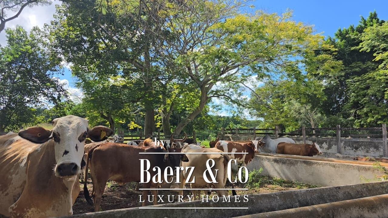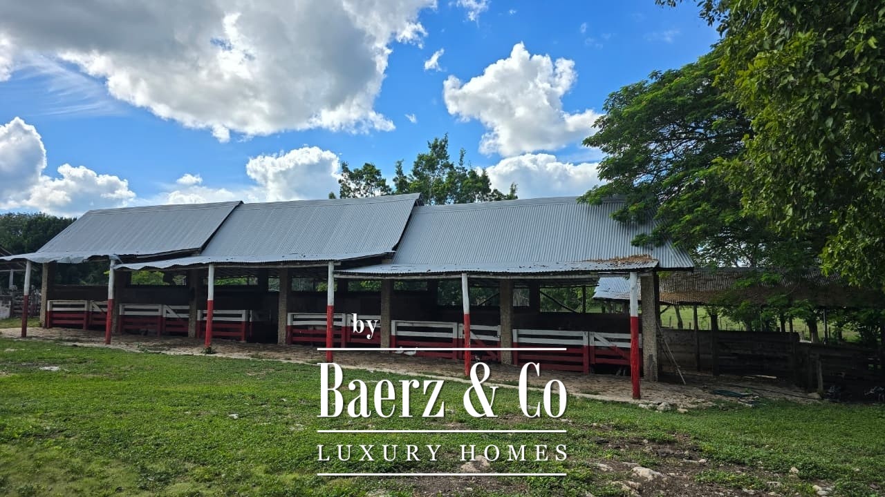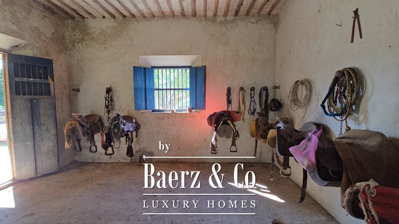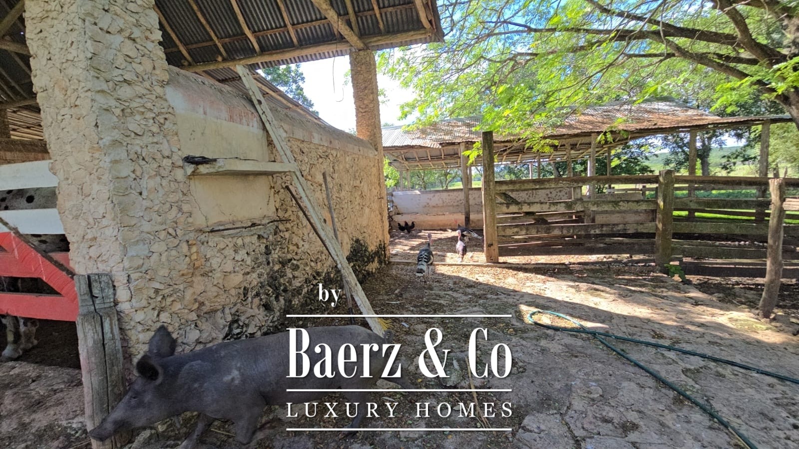 Прямой доступ обеспечен широкой дорогой, находящейся на государственном содержании, что облегчает перемещение между основными и второстепенными частями ранчо. Главный комплекс помещичий усадьбы занимает около 650 квадратных метров и включает резиденцию с просторными гостиными и столовой зоной, традиционной кухней, пятью спальнями и тремя ванными комнатами. В число дополнительных построек входят второй рабочий дом, сервисные помещения, несколько складов и навесов для техники—все для долгосрочной эксплуатации и организации жизни сообщества.