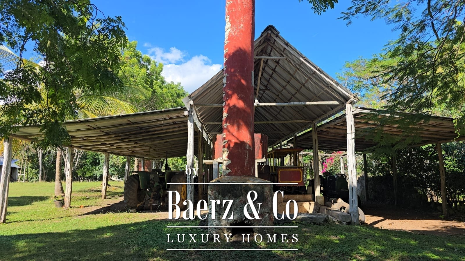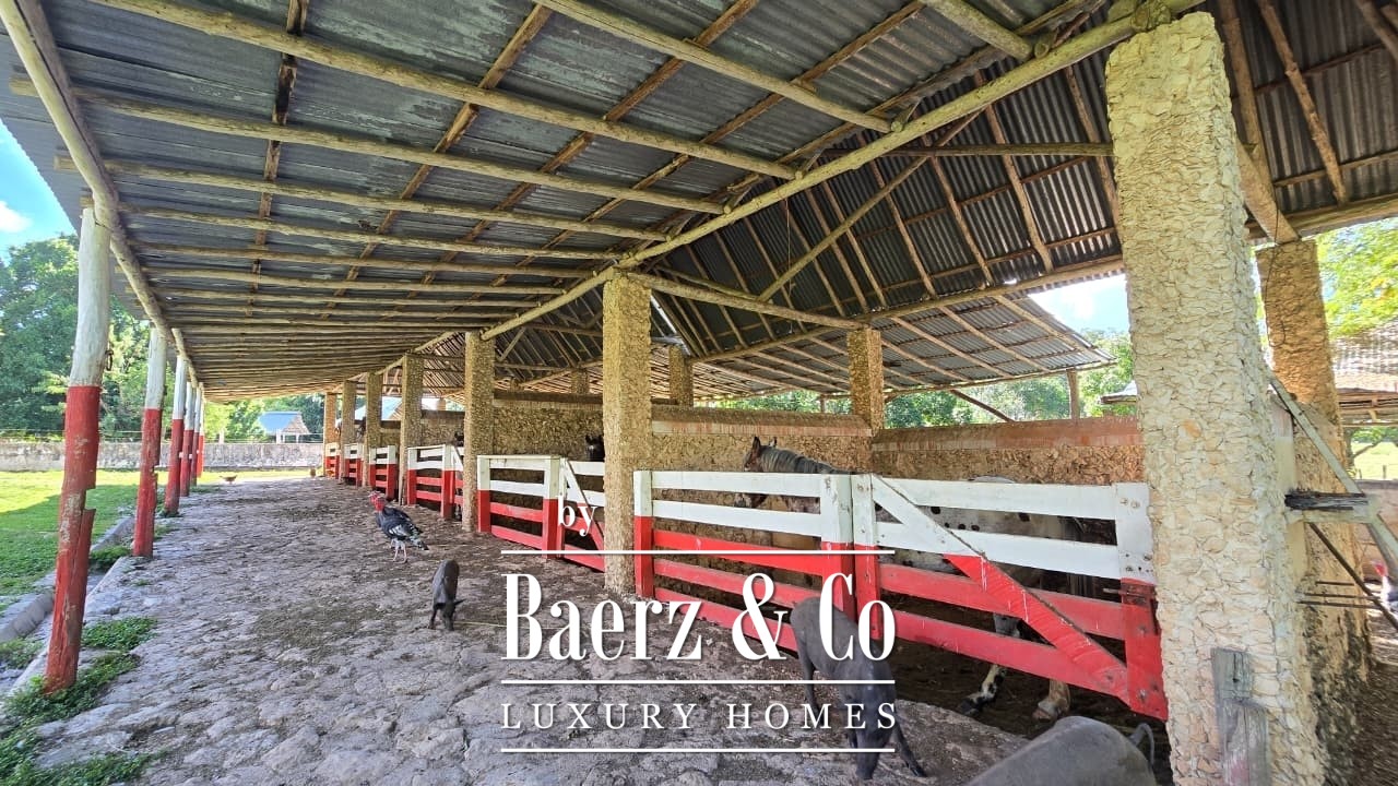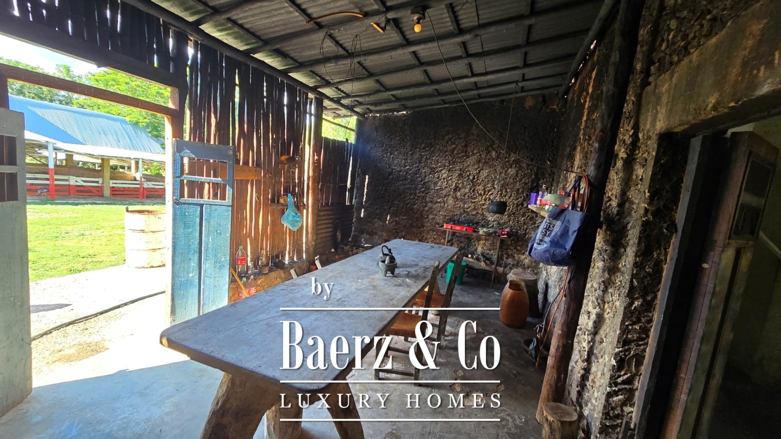 Прямой доступ обеспечен широкой дорогой, находящейся на государственном содержании, что облегчает перемещение между основными и второстепенными частями ранчо. Главный комплекс помещичий усадьбы занимает около 650 квадратных метров и включает резиденцию с просторными гостиными и столовой зоной, традиционной кухней, пятью спальнями и тремя ванными комнатами. В число дополнительных построек входят второй рабочий дом, сервисные помещения, несколько складов и навесов для техники—все для долгосрочной эксплуатации и организации жизни сообщества.