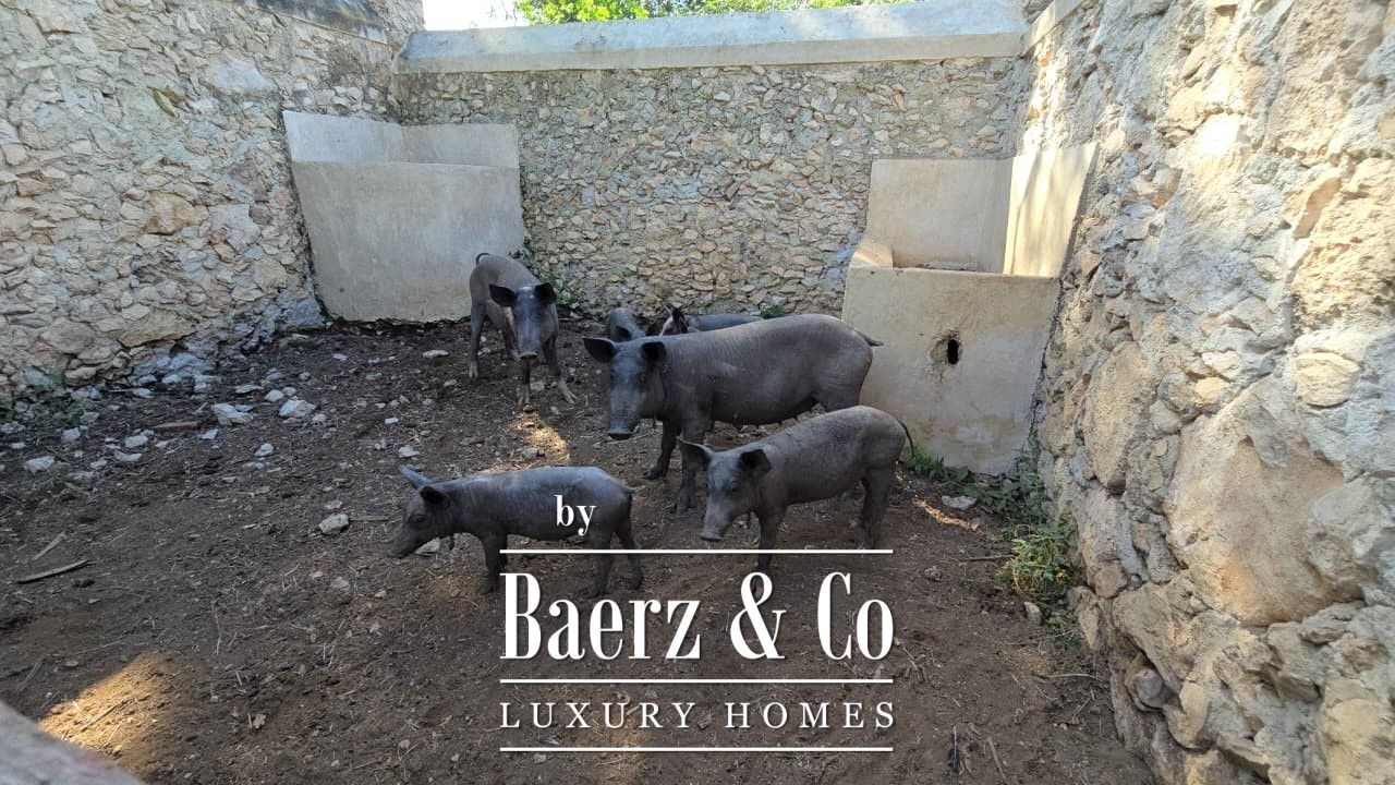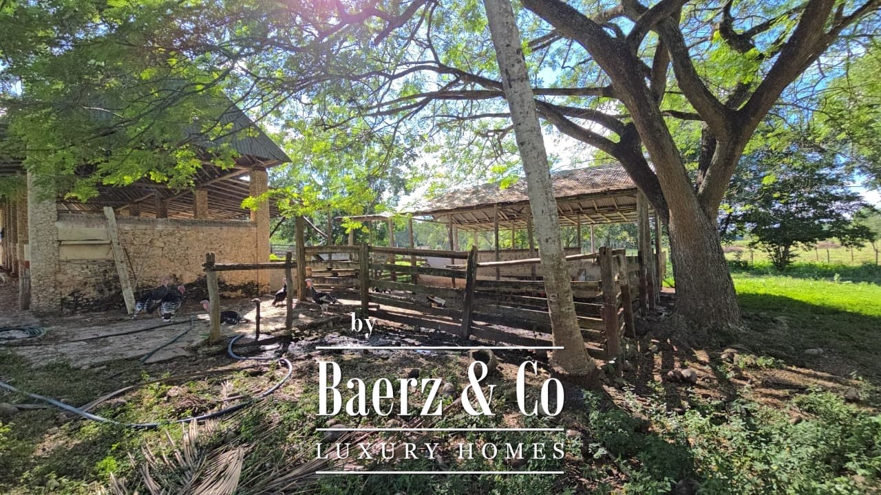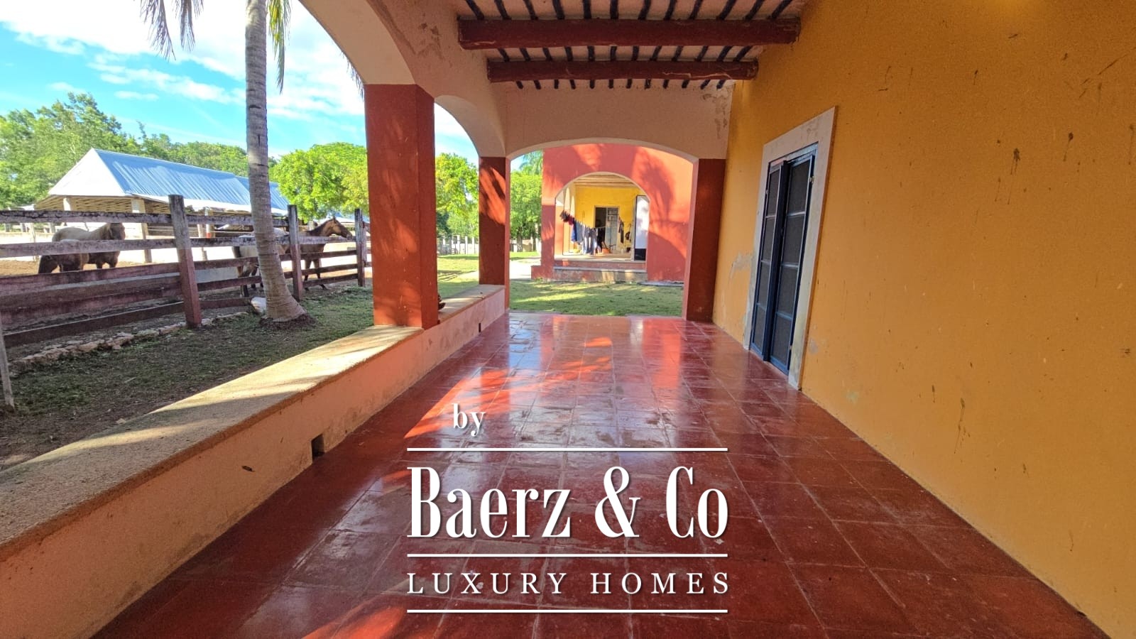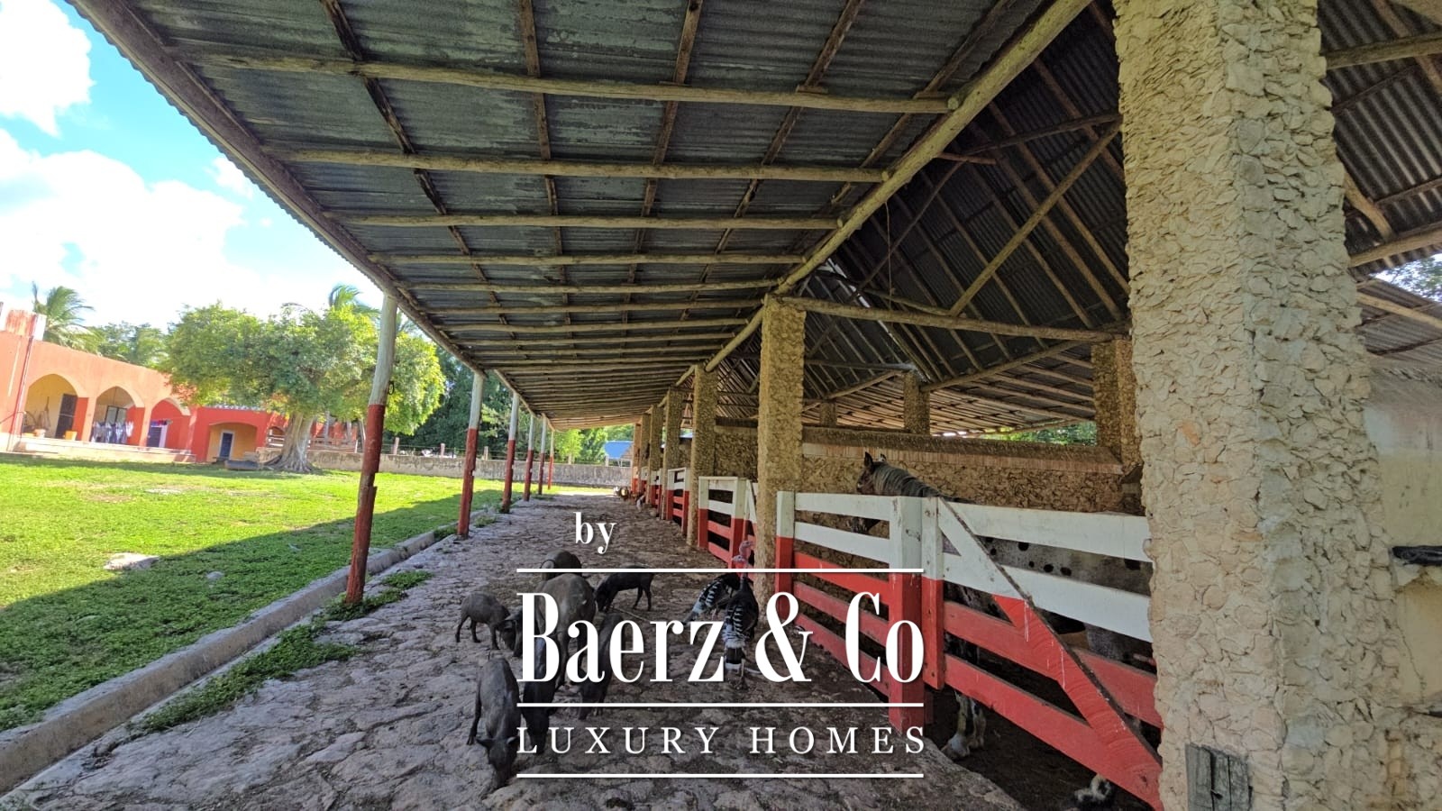 Водоснабжение обеспечивается глубоким колодцем глубиной 120–160 метров, новой насосной станцией и солнечной энергосистемой с резервным генератором. Шесть загонов, двенадцать паддоков, конюшни, кормушки и поилки—большинство обновлено за последние три года—поддерживают текущее стадо: тридцать голов крупного рогатого скота и восемь лошадей, историческая емкость превышала тысячу голов. Предметы старины и оригинальная техника напоминают о сельскохозяйственном прошлом поместья, а девственные почвы—Kancab, Calché и Cacalum—по-прежнему высоко ценятся для различных видов земледелия.