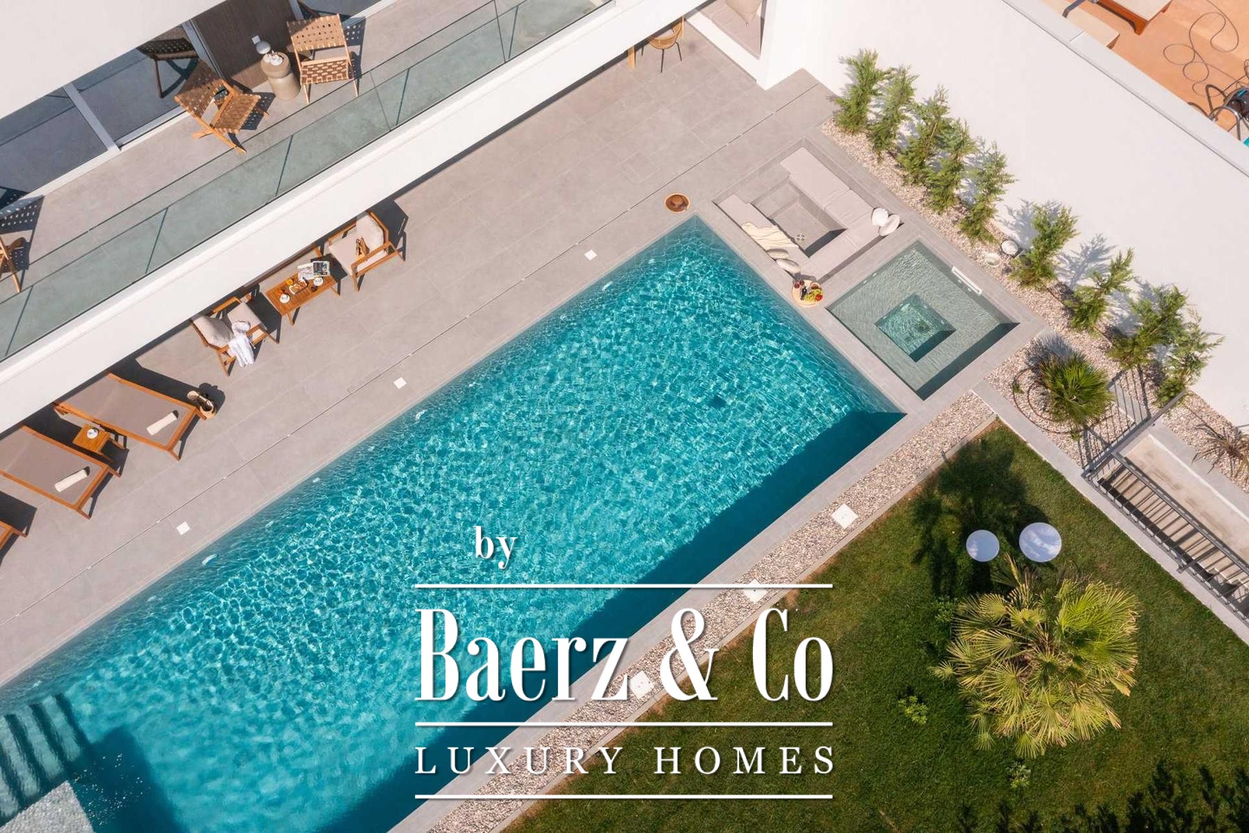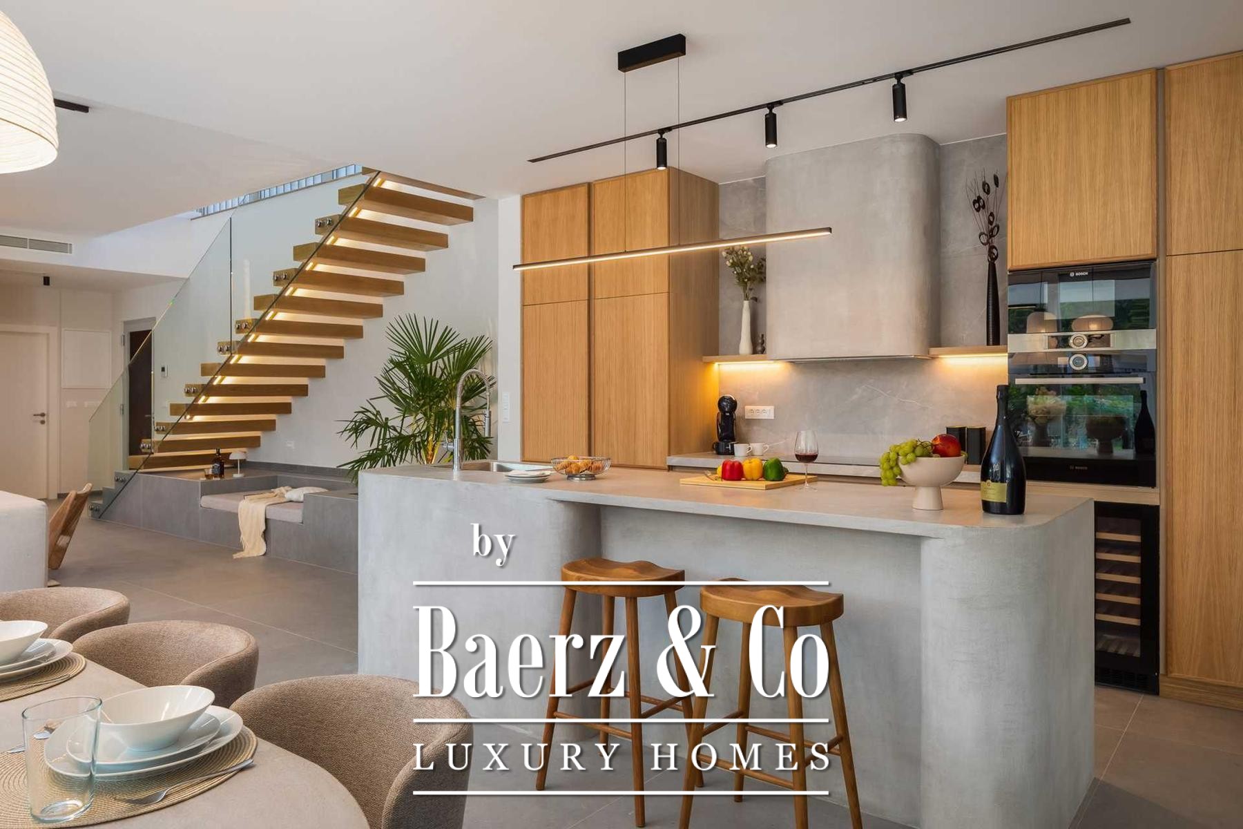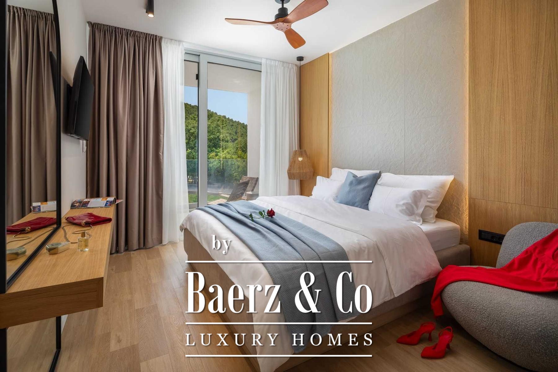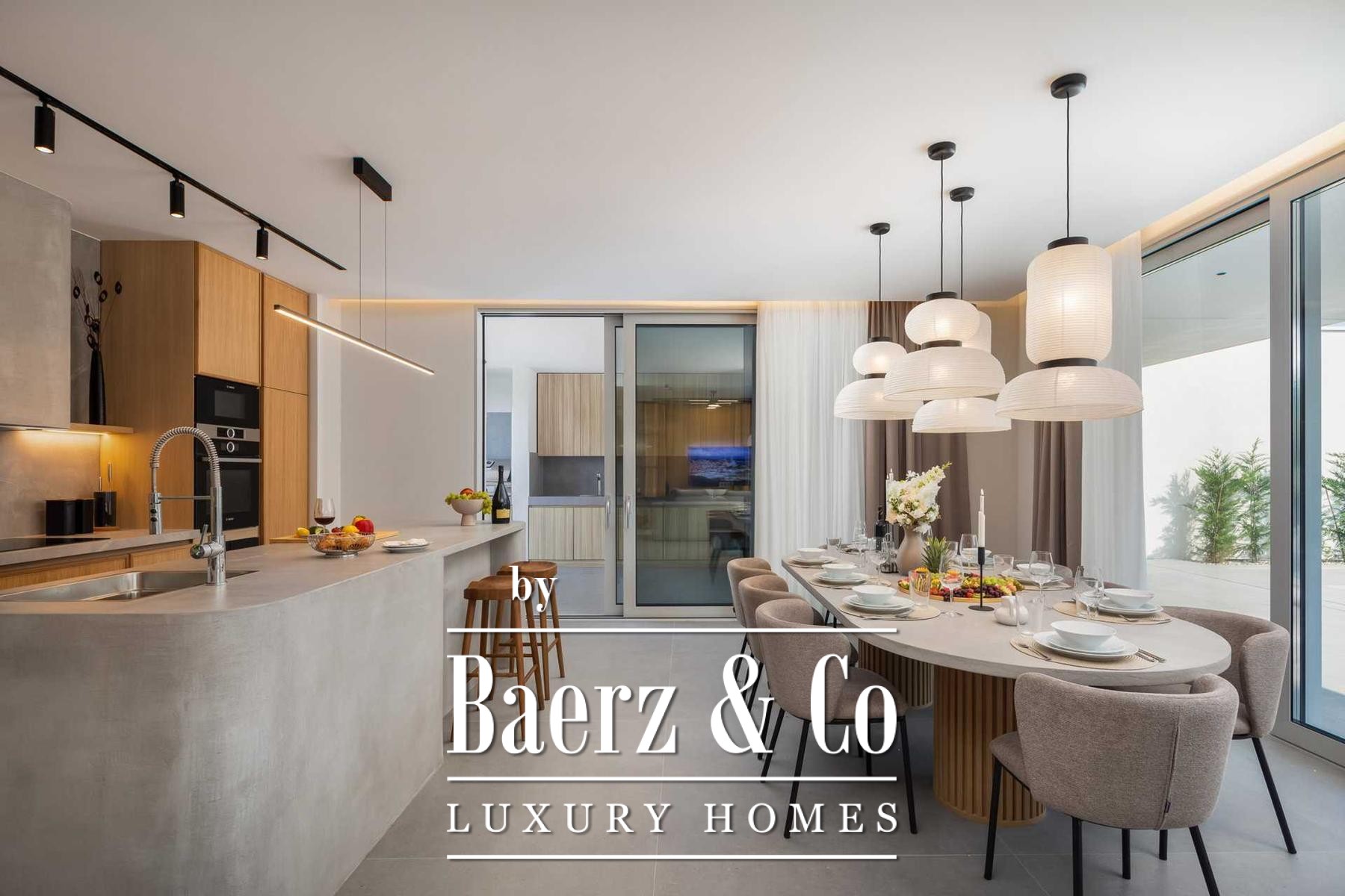 Located in a quiet area in the surroundings of Split, on a spacious plot of 2,090 m², this modern and luxuriously appointed villa with a heated swimming pool offers exceptional comfort, privacy, and functionality. The property is arranged over two floors and is ideal for both private living and high-end rental purposes.The ground floor consists of an entrance hall, a fitness room with sauna, a bathroom, a separate toilet, and a spacious open-plan living area comprising a fully equipped kitchen, dining area, and living room. Large glass walls allow abundant natural light and create a seamless connection between the interior and exterior spaces. From the kitchen, there is access to a covered terrace with an outdoor kitchen and barbecue, while the dining and living areas open onto an additional covered terrace leading to the sun deck and heated swimming pool.The upper floor is dedicated to the sleeping area and features four bedrooms, each with its own en-suite bathroom, as well as a shared storage room.The villa has been designed with great attention to detail, harmoniously combining contemporary design, high-quality materials, and functionality.In addition to the swimming pool and sunbathing area, the fully fenced and landscaped garden offers a children’s playground (football and basketball), a bocce court, and ample parking space for several vehicles.The property enjoys an excellent location, providing peace and privacy while remaining within easy reach of all amenities and infrastructure offered by the city of Split.For further information or to arrange a viewing, please feel free to contact us.