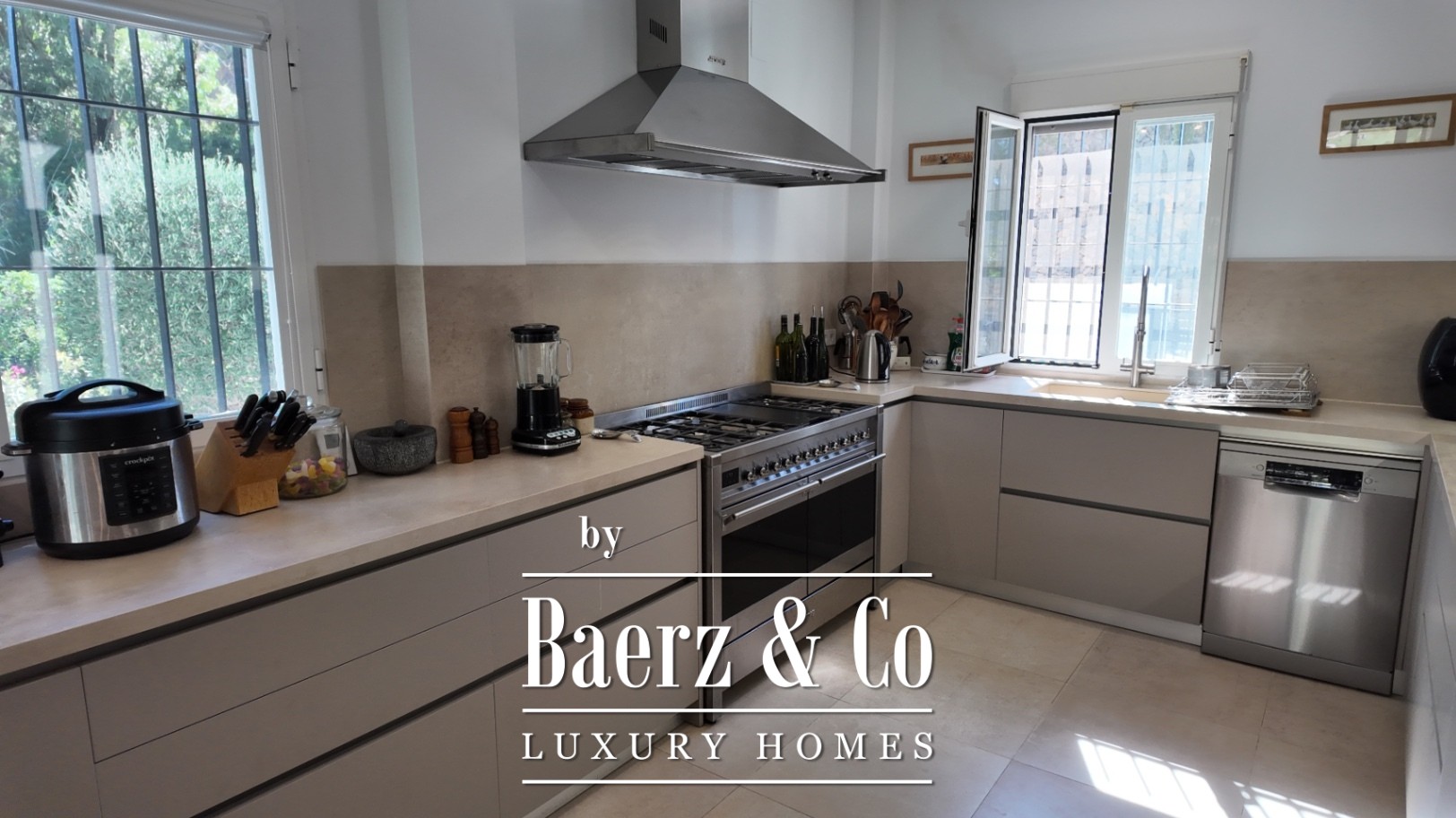 园林为无忧享受而精心打造,设有带预装加热设施的咸水泳池、宽阔的露台和全套夏季厨房。双车库、空调、中央燃气暖气、带电池的太阳能板、北欧橡木地板、安全系统及软水设备,全面提升了舒适度与能效。