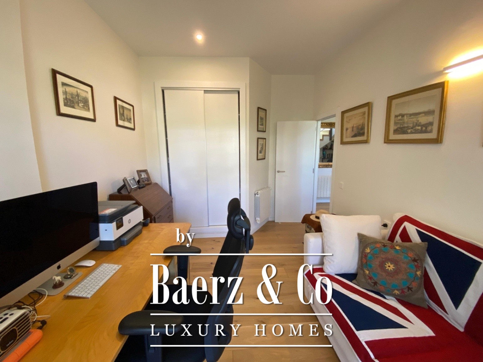 别墅的核心是90平方米的客厅,设有壁炉与大面积落地窗,可通向露台,俯瞰辽阔景致。设计师厨房配备高端家电,与宽敞的餐区融为一体,适合宴请宾客。四间卧室和三间浴室为居住提供充裕空间及私密性,主卧套房连接超大玻璃露台,景观尽收眼底。