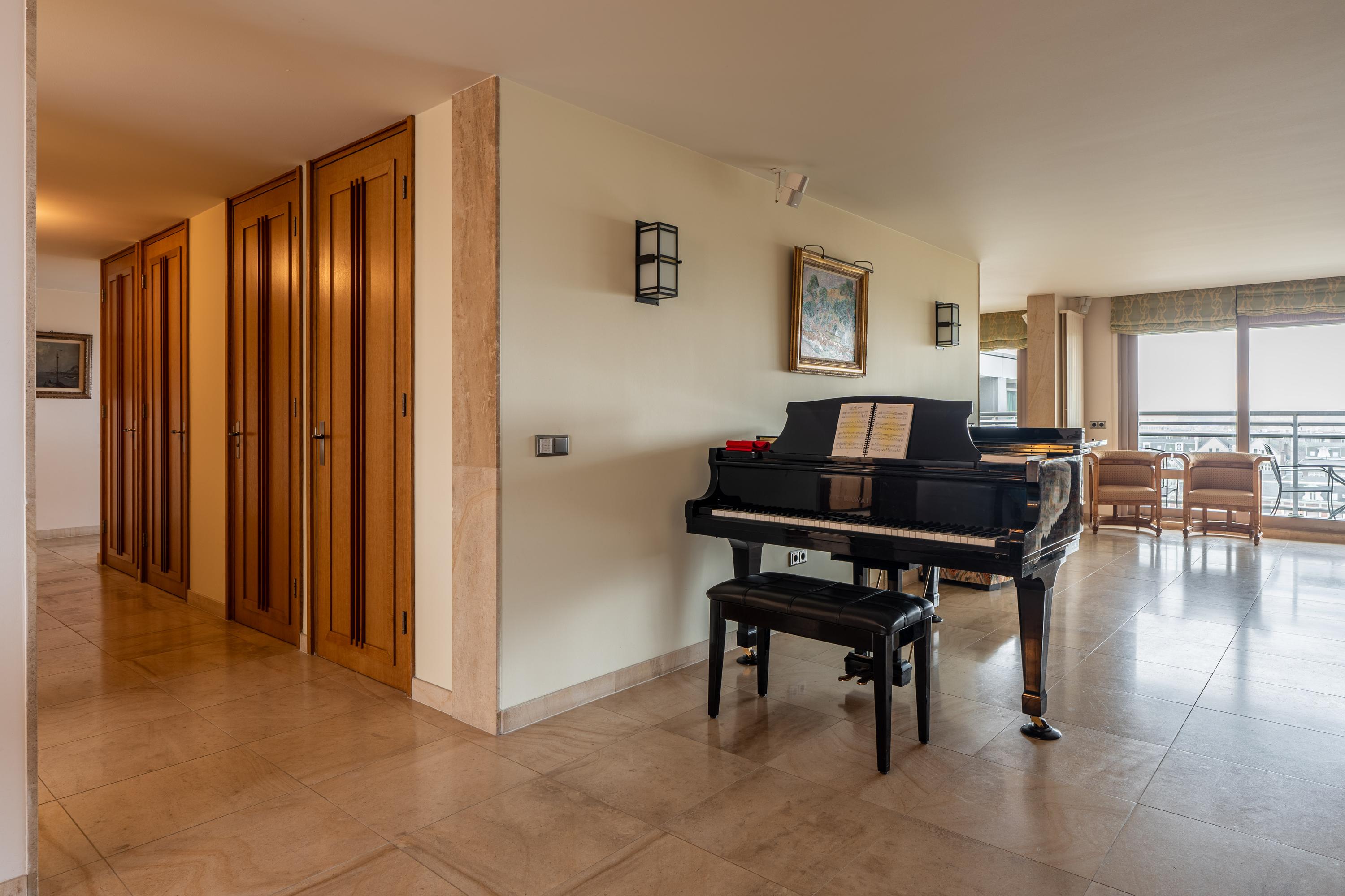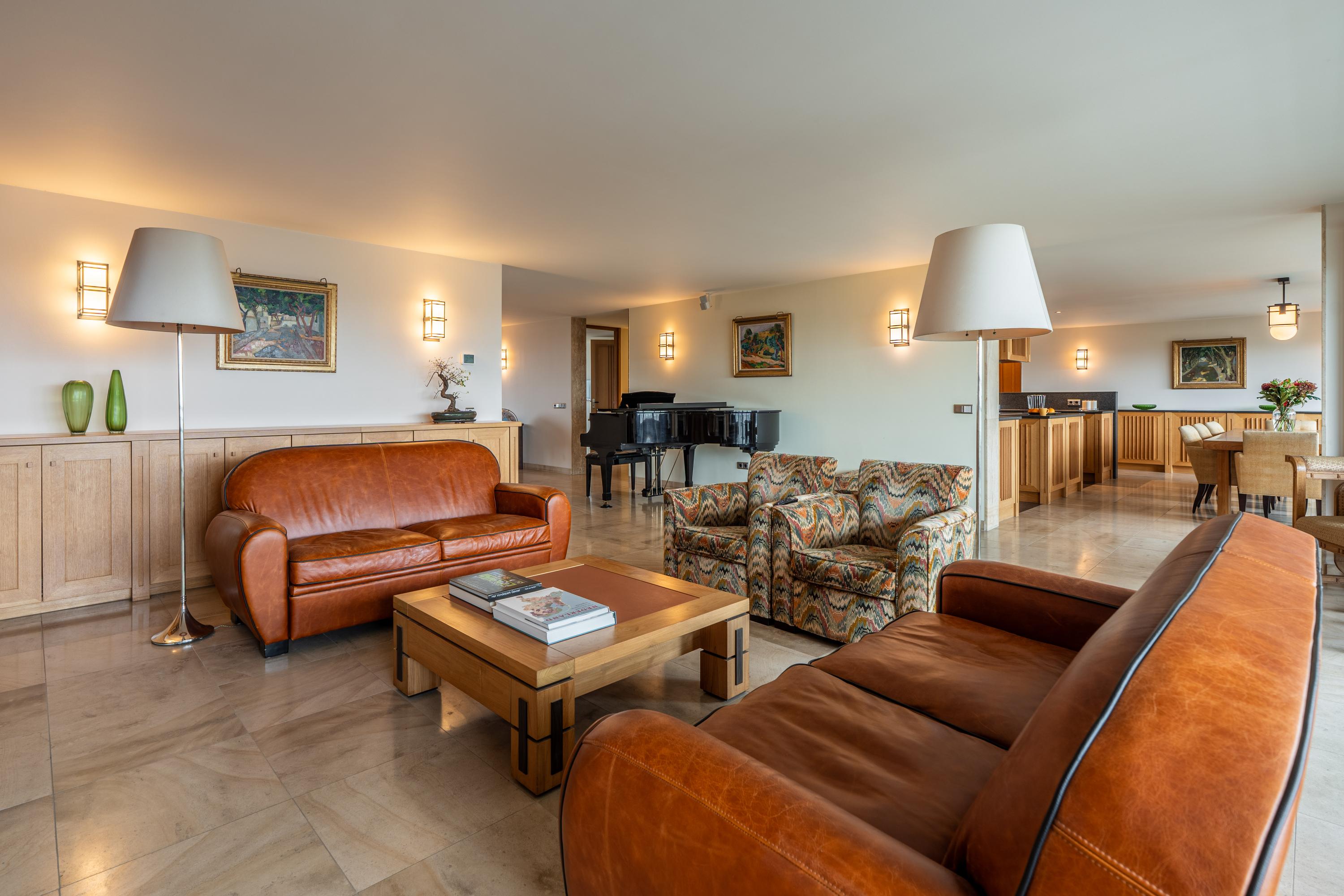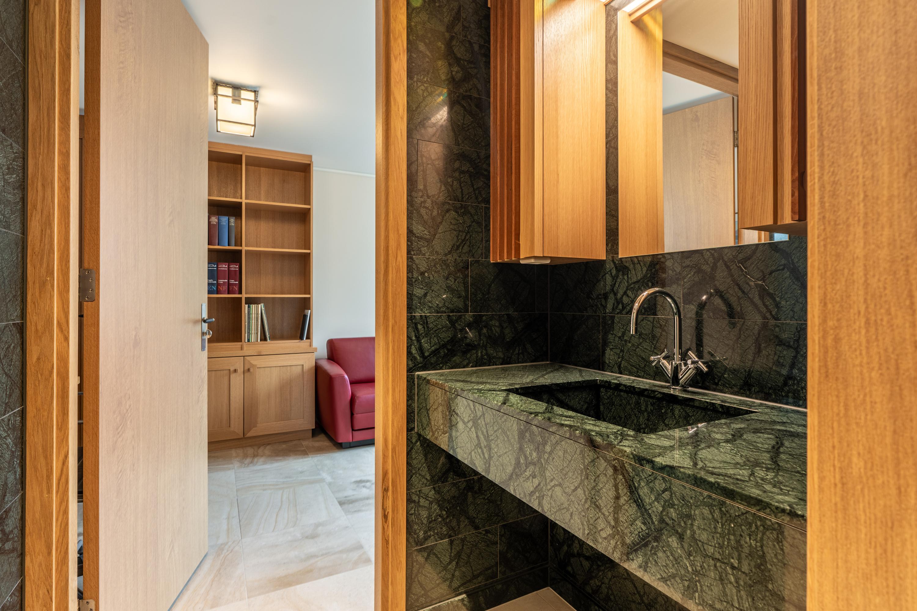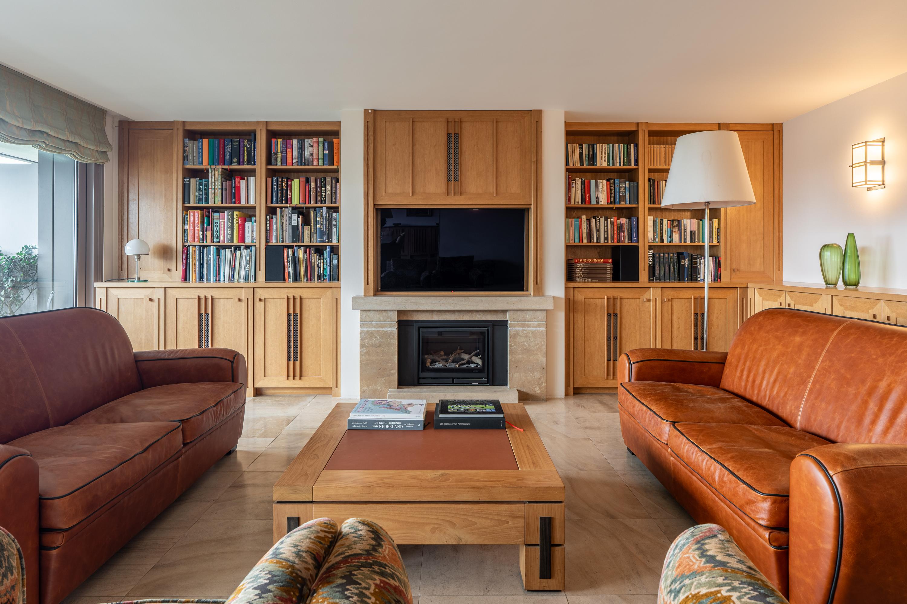 进入顶层公寓,宽阔的玄关引领至开放式起居空间,落地玻璃门将室内与横跨整套公寓宽度的25 m²阳台自然连通。冯德尔公园尽收眼底,无论是起居区还是厨房皆可欣赏,城市中难得的宁静由此注入生活。厨房设施齐全,配备中央操作岛、六头电磁炉和充足储物空间。客厅拥有燃气壁炉与定制柜体,并衔接成一处舒适办公区。三间卧室均配有嵌入式衣柜、定制书桌及空调,主卧套房设有绿色大理石浴室及双洗手台。全屋地暖和高能效系统确保全年舒适,配合双层玻璃与机械通风系统。