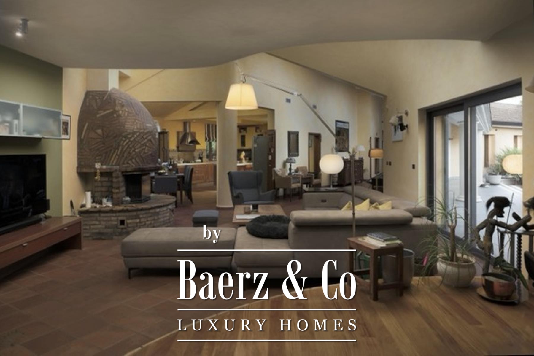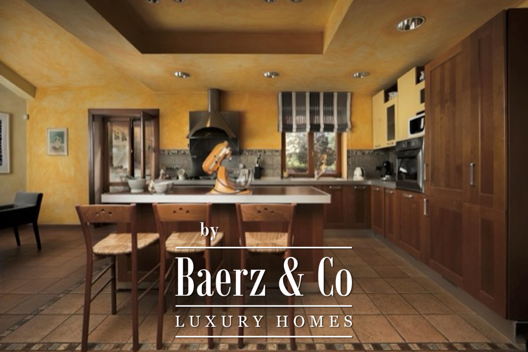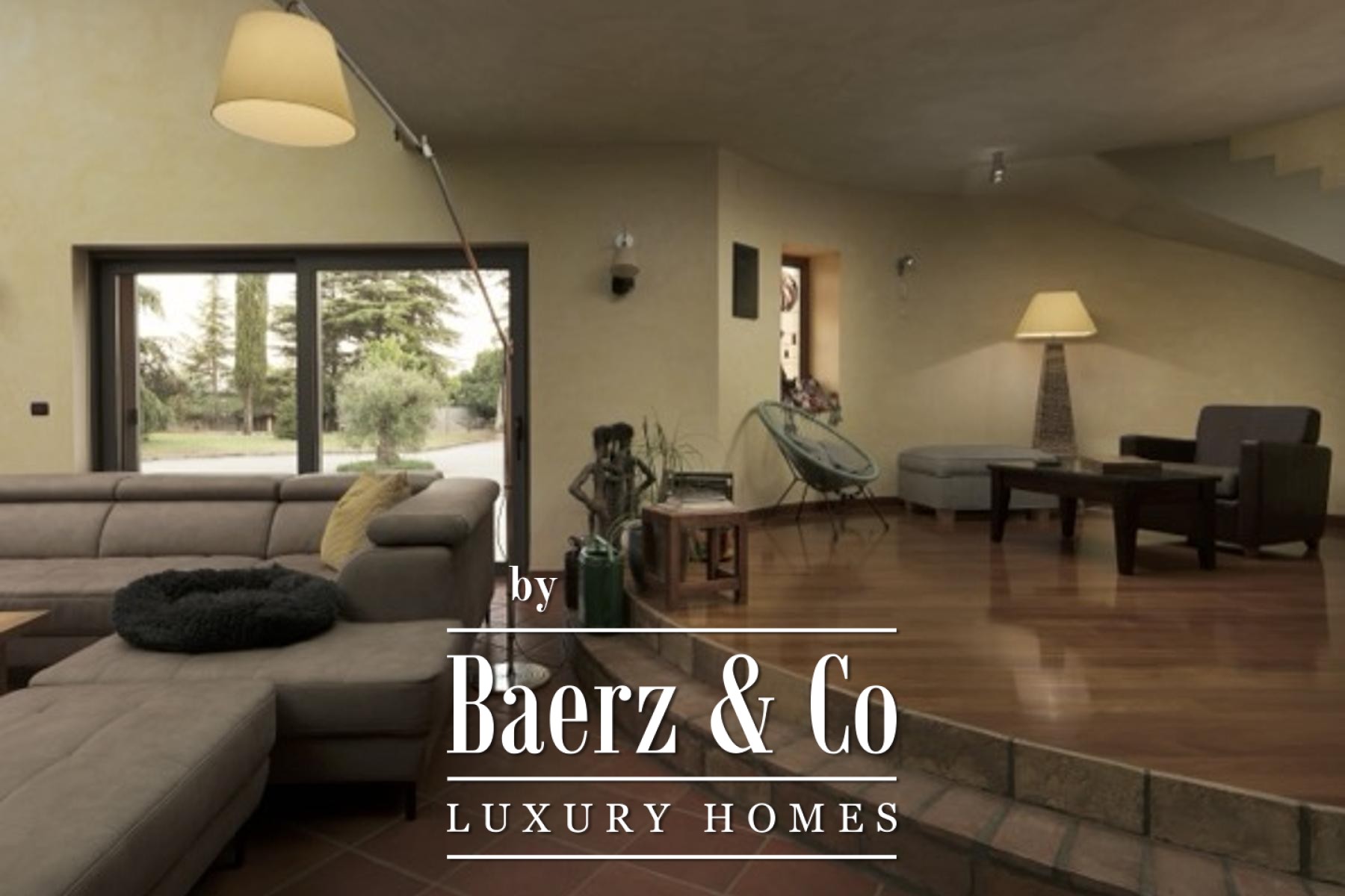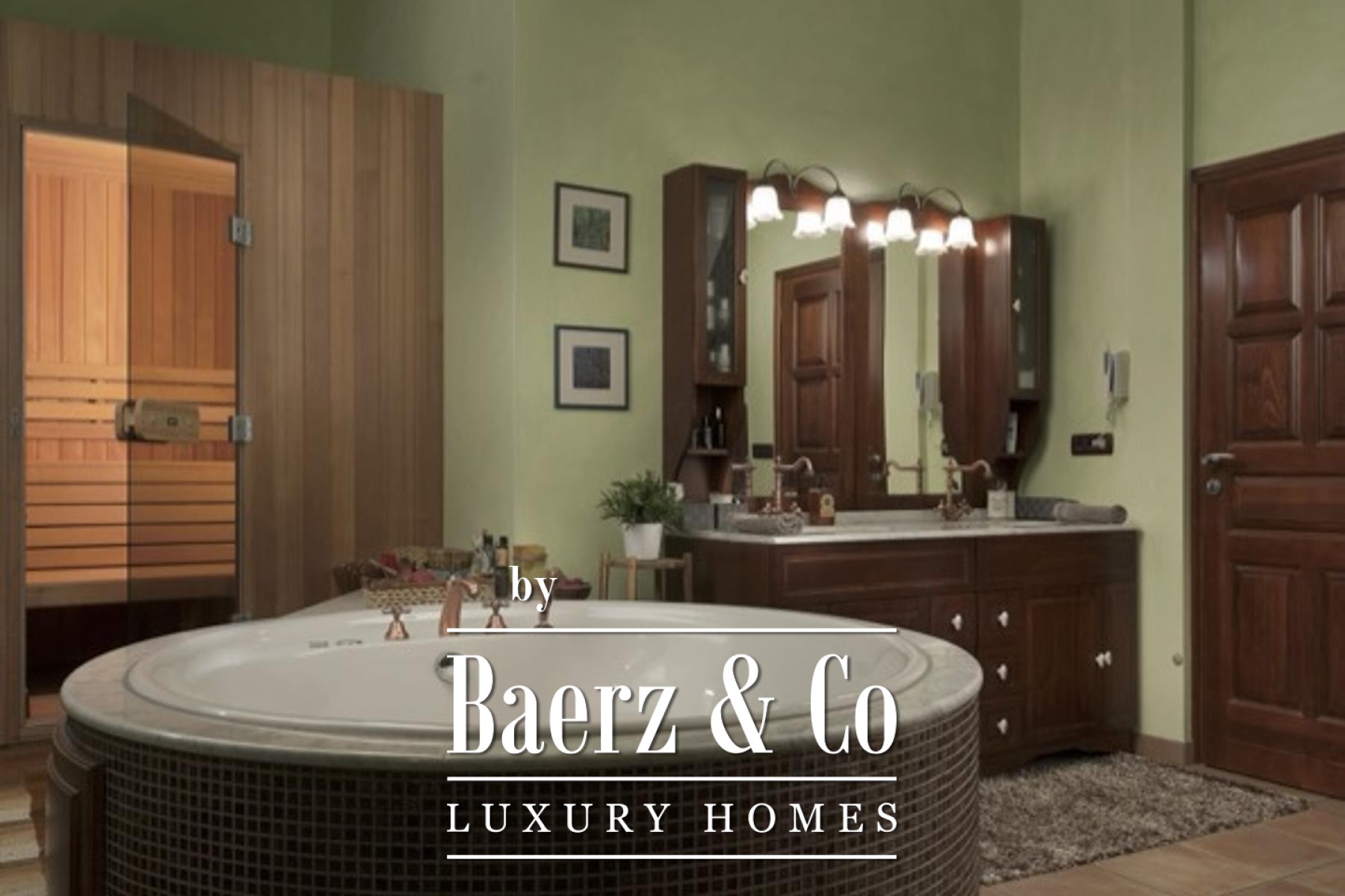 室内面积达350平方米,布局考究,兼顾舒适与静谧的奢华。五间卧室为家庭和宾客带来多元空间选择,主套房配备独立浴室、更衣间和桑拿房。主起居区以壁炉为核心,逐步延展至俯瞰花园的露台。现代设施包括智能家居系统、全套厨房设备,以及装机容量达11千瓦的光伏太阳能板,实现高效能源利用。宽敞的储藏间和五间浴室进一步提升了日常便利。