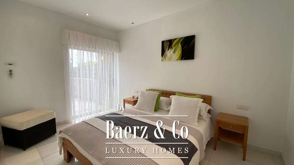 全新翻修的室内部空间,包括明亮宽敞的客厅(设有大面积落地窗)、半开放式厨房(配备高端电器)及低调自然的配色。户外生活围绕恒温泳池展开,泳池被露台、日光浴区及葱郁绿意环绕。其他设施包括全屋空调、配备台球桌的娱乐室、私人洗衣房,以及便捷的停车通道。