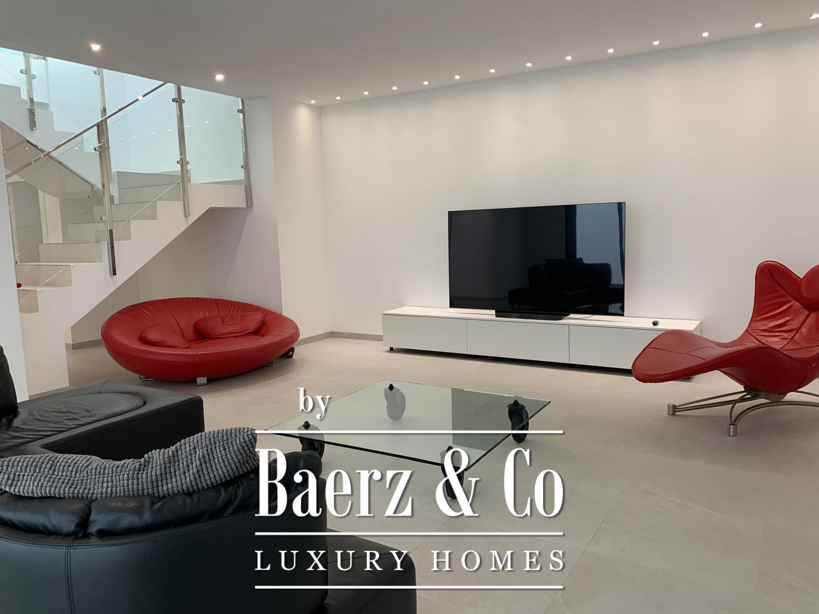 下至半地下层,宽敞的起居区可作为影音室或个人健身房,配备洗衣房、另外两间卧室及带淋浴的浴室。户外,景观花园环抱专属泳池和露台,营造休闲氛围,围栏停车区保障安全与便利。两座各自独立出入的屋顶露台,尽览广阔海景与海湾风光,其中一座配备室外淋浴。此别墅在静谧住区中,将简洁线条、双层玻璃、智能安防系统和谐结合。