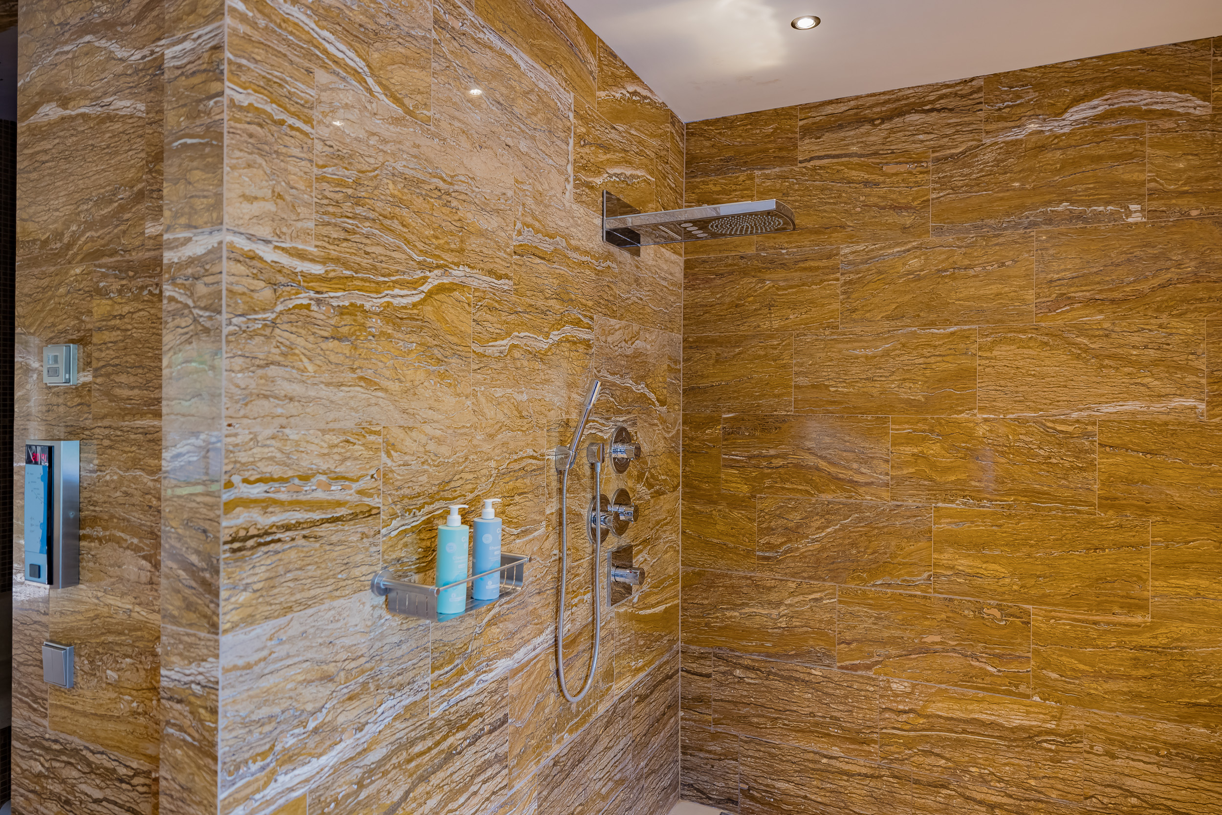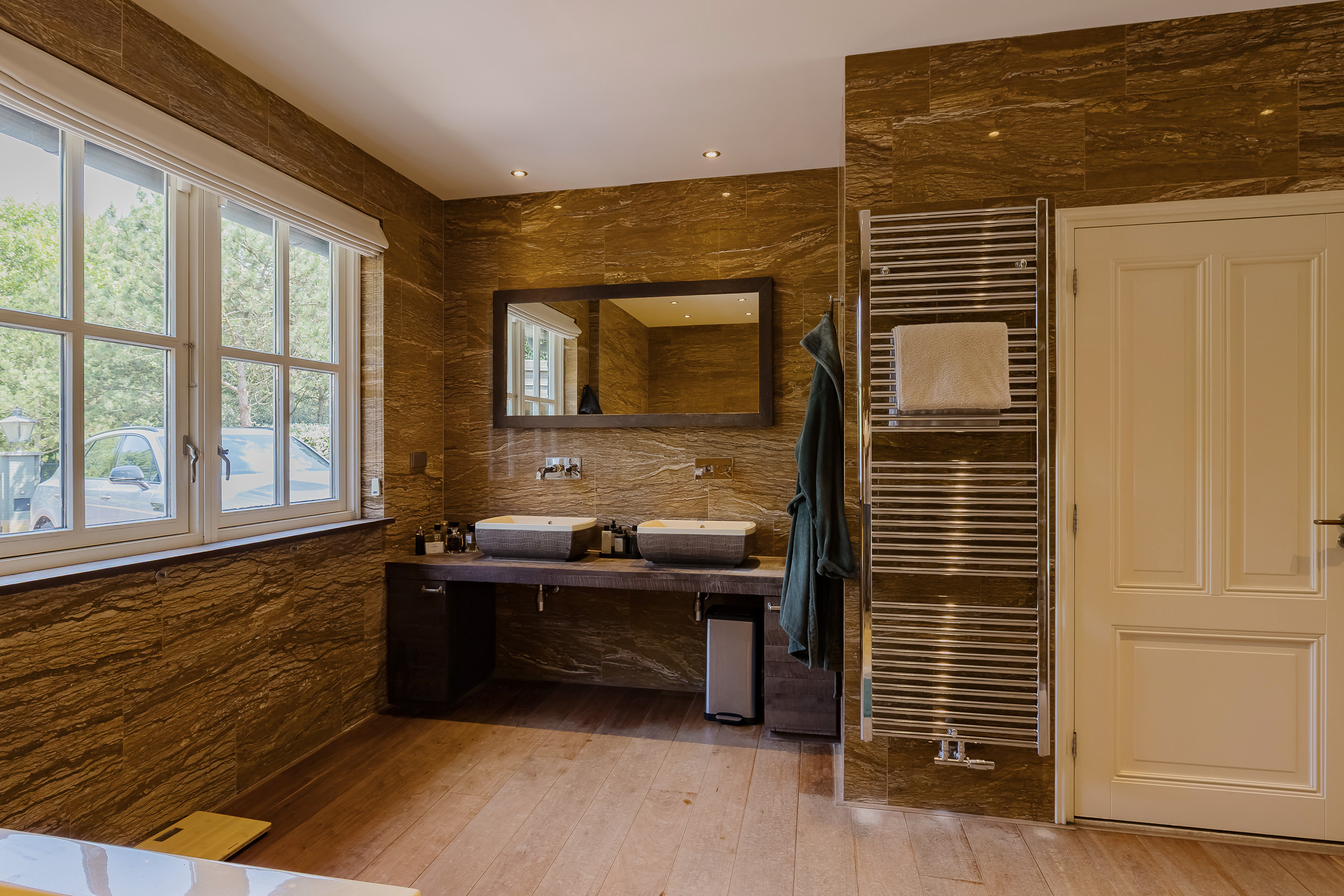 底层铺设核桃木地板,专属玄关引入浅小绿乡村厨房,配有六头AGA灶台和四台烤箱。起居室内设有壁炉及法式落地门,直通花园。私密主人套房独立成翼,配备大理石浴室、步入式淋浴间、蒸汽房及定制皮革洗手盆。从这里可走出14平方米的宽大阳台,通过加热器和氛围照明,自然实现室内外的无缝过渡。