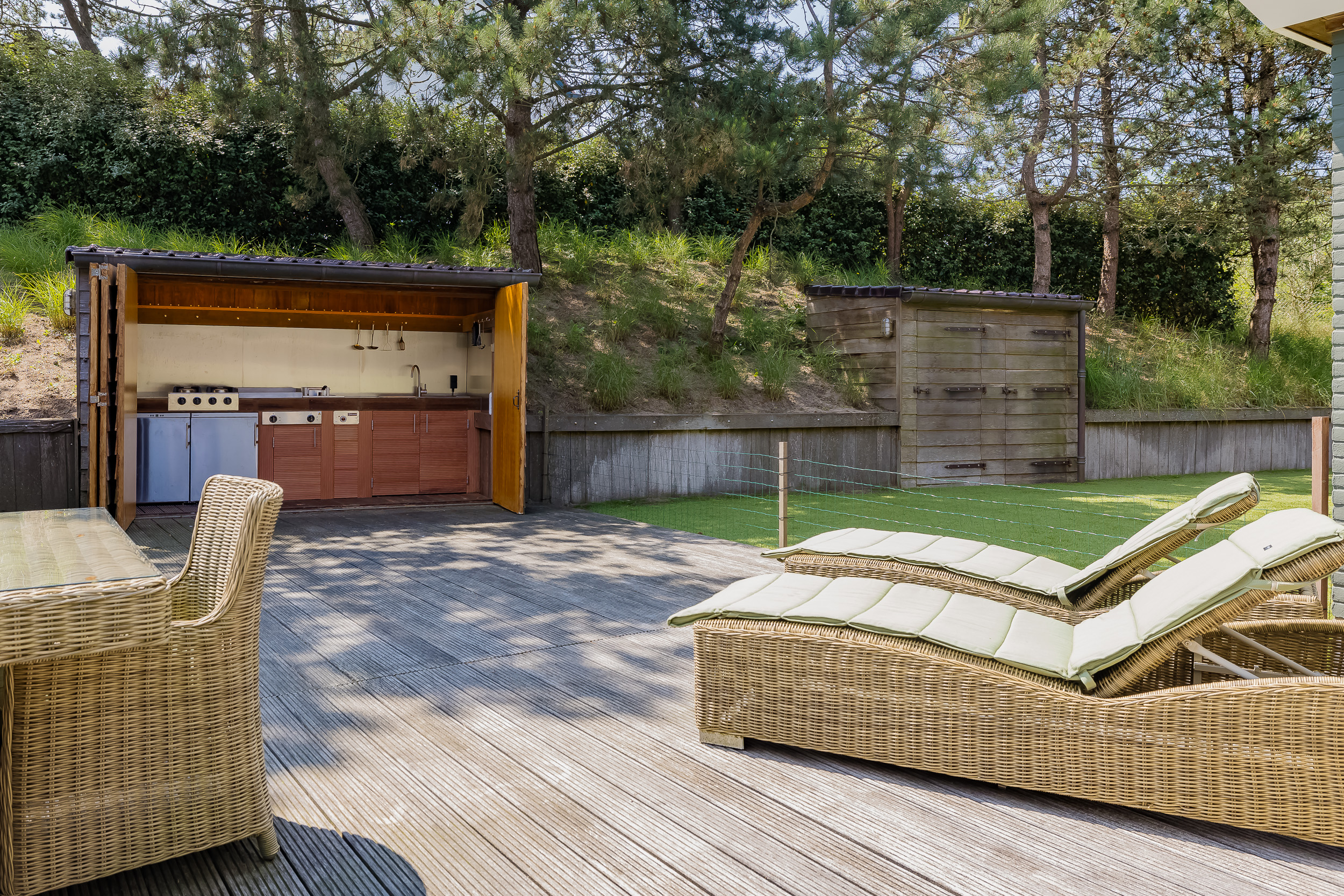 户外空间采用红雪松、硬木和铜等材质,精心打造低维护的花园附属建筑,全套TechnoGym健身设备的健身房及桑拿房。14x5米加热泳池、户外厨房、客用设施,以及专属宠物和自行车区,完善了整体格局。这栋位于Noordwijk Zuidduinen在售的豪华别墅,呈现出罕见的静谧氛围、卓越设计与永续品质的完美融合。