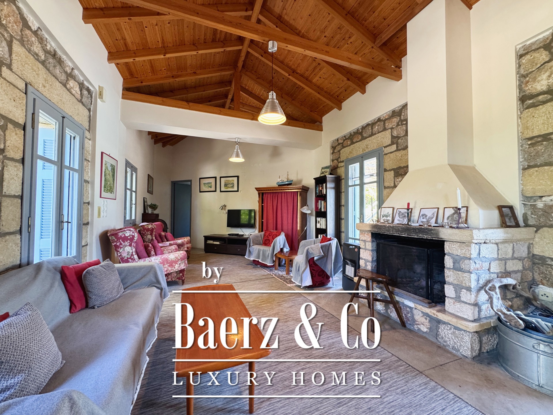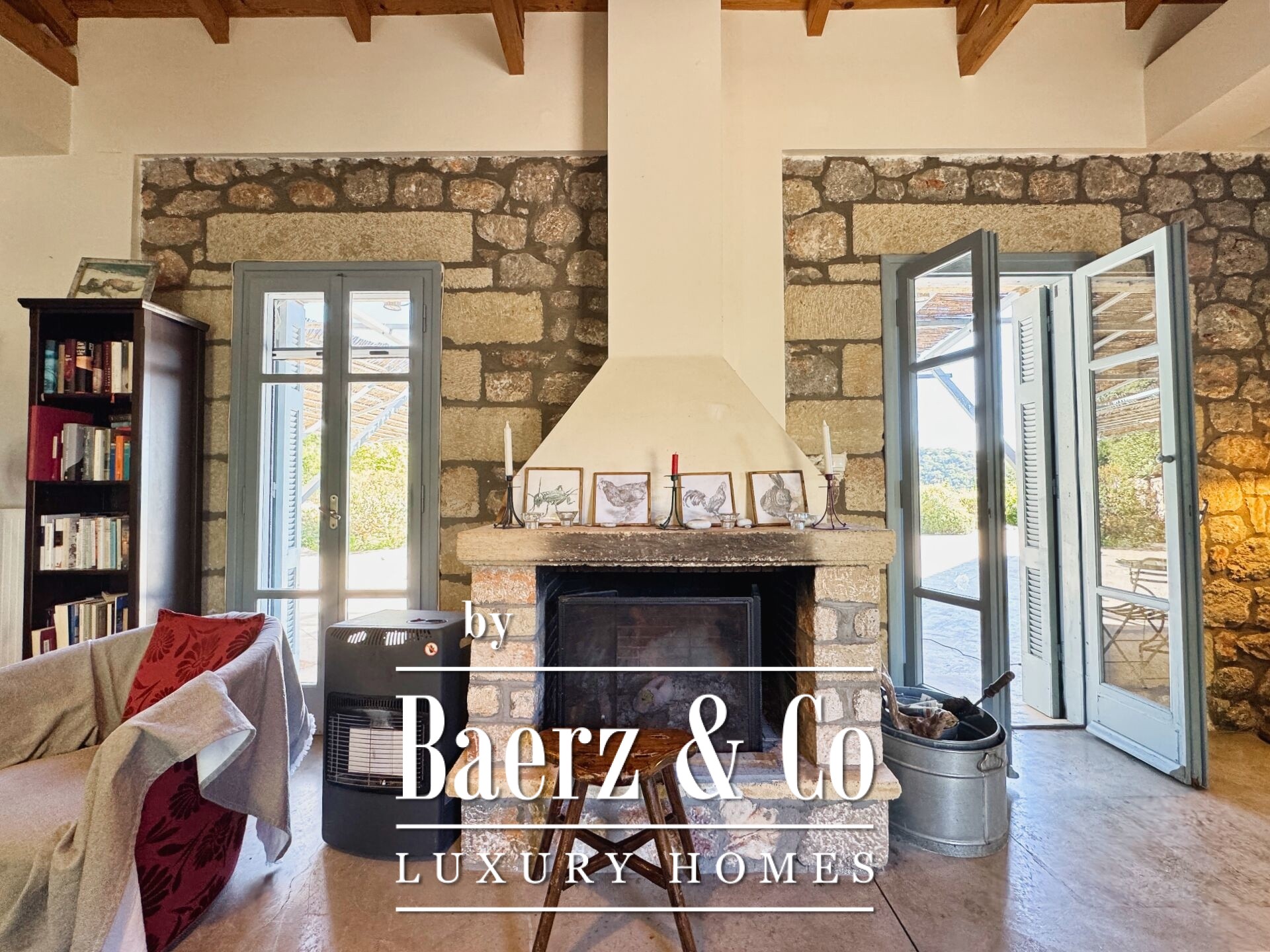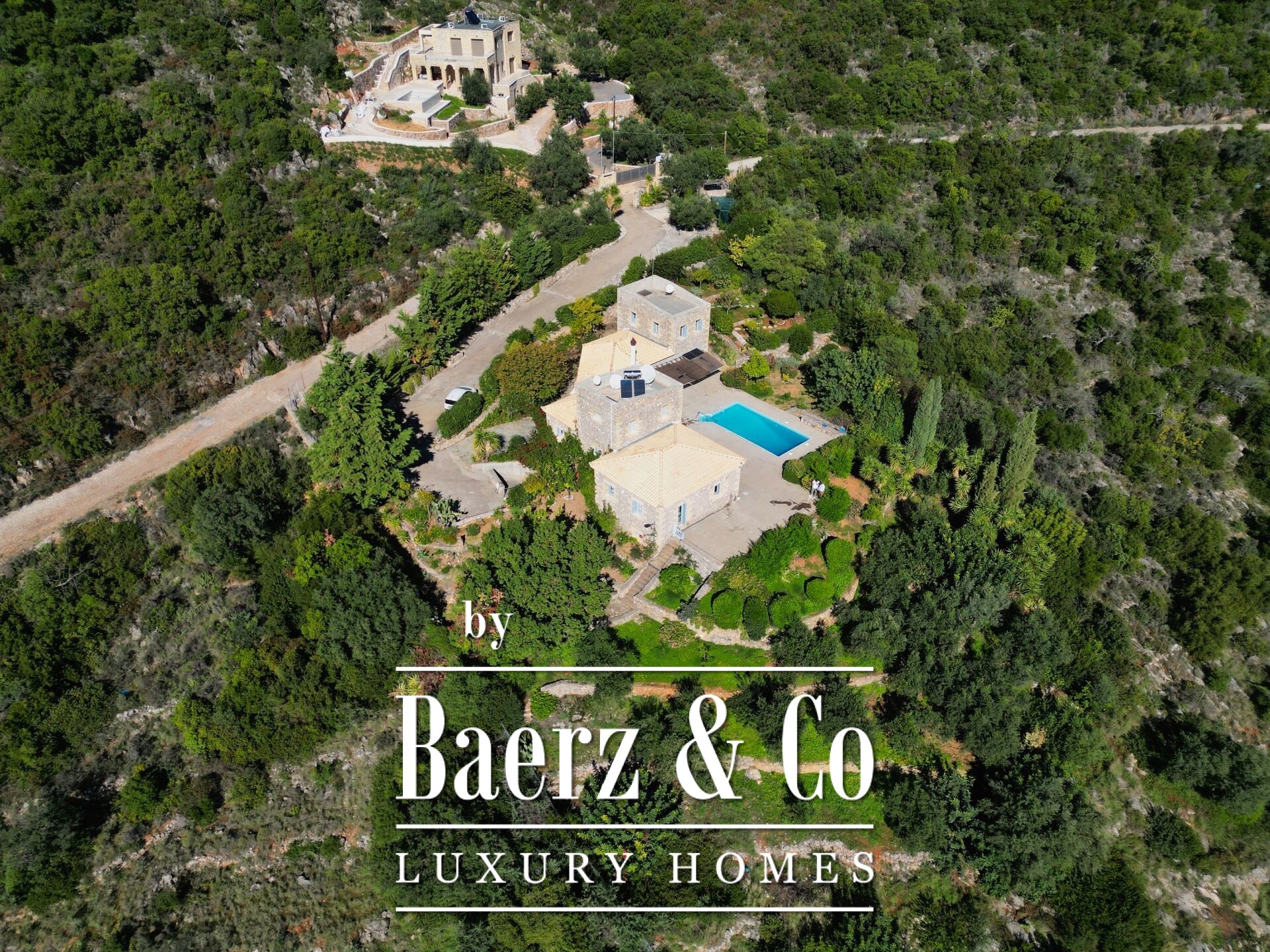 住宅以精湛的石材建造和细致入微的设计为特色。底层设有开阔的起居区与厨房,五间卧室和四间浴室,每一处细节均达到高标准,无论是家人还是宾客皆能享受私密与舒适。室内走廊延展至两座各具特色的石塔,每塔设有一间卧室,区分空间的同时,赋予居所独特的建筑韵律。