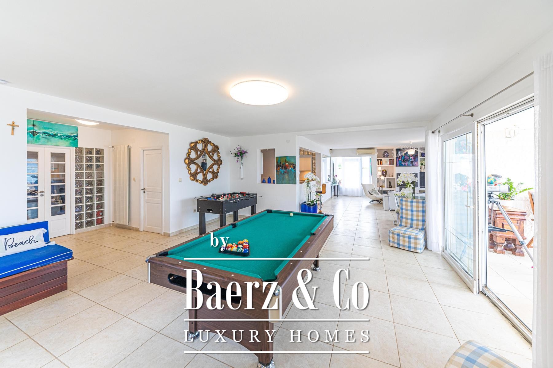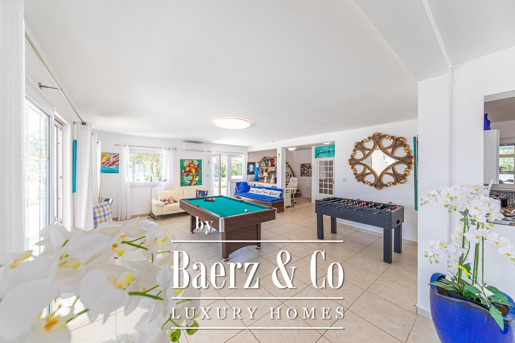 开阔的起居空间与两处露台自然相连,各区域巧妙地框定海景,便于海边用餐、休憩与户外烧烤。泳池环绕独立烧烤与休闲区,流露出低调私密的度假氛围。露台下方设有额外车库及专属储藏室,可直通海滩,为船艇、水上运动器材及日光浴躺椅提供私密收纳空间。